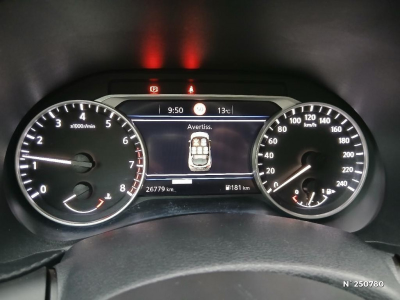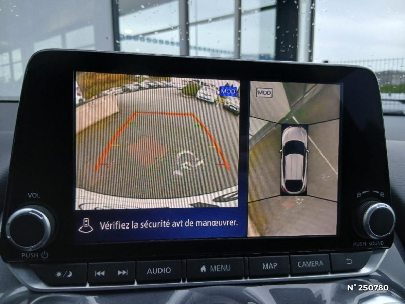 Bacs de rangement dans les contre-portes AV avec porte-bouteilles / Vitres AV/AR électriques avec mode impulsionnel côté conducteur / 6 HP / ABS et EBD / Frein à main électrique avec aide au stationnement/démarrage et fonction Autohold / Contre-portes et tableau de bord en TEP noir / Sièges AV monoform style / Système audio radio avec écran tactile 8" avec interface personnalisable, Apple CarPlay et Android Auto, commandes vocales / Nissan Connect Services / Ceintures de sécurité AV ajustables en hauteur / Alarme périmétrique / Poignées de maintien pour passager AV et AR / Combiné d'instrumentation avec écran LCD-TFT 7'' / Points d'accès Wi-Fi / Repose-genoux en TEP / Plancher de coffre modulable / Caméra de recul avec radars de stationnement AV et AR / Sellerie mixte TEP / Tissu / Sélection du mode de conduite (ECO, STANDARD et SPORT) / Nissan Connect / Spoiler AR / NBAS (amplificateur de freinage d'urgence) / Points d'ancrage pour sièges enfants ISOFIX à l'AR / Direction assistée asservie à la vitesse / Ciel de toit noir / Rétroviseur intérieur électrochromatique / Feux de détresse à déclenchement automatique / Commandes au volant : contrôle de l'ordinateur de bord, audio, téléphone, limiteur / régulateur de de vitesse / Feux de route adaptatifs / Nissan AVM - Vision Intelligente à 360° / Eclairage du coffre / Kit de réparation pneumatique / Système "Chassis Control" : Intelligent Trace Control (contrôle actif de trajectoire) et Intelligent Ride Control (Contrôle actif de l'assiette) / Freinage d'urgence intelligent (AEB) avec détection piéton et cyclistes / Système d'alerte anticollision AR intelligent avec détection des objets en mouvement / Drive Assist:technologie de conduite assistée / Clignotants à trois clignotements / Fonction des feux avant "Follow me Home" / Porte-cartes intégré au pare-soleil côté conducteur / Liseuses AV et AR / Porte-gobelets (2x) / Bluetooth+USB+AUX+12V / Poignées de porte extérieures couleur carrosserie / Antenne aileron de requin Noir / Poignées intérieures d'ouverture de porte chromées / Pommeau de levier de vitesse gainé de cuir / Indicateur de changement de rapport / Pare-soleil côté conducteur et passager avec miroir de courtoisie