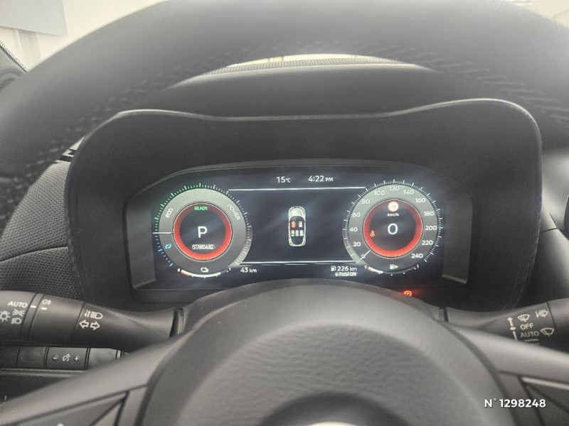 Alarme périmétrique / Antenne aileron de requin Noir / Bacs de rangement dans les contre-portes AV avec porte-bouteilles / Système de navigation NissanConnect avec écran tactile 12,3" : Live Traffic et cartes 3D, Navigation porte-à -porte, Recherche par Points d'Intérêt, Google Street View, Vue Satellite et Météo, Mise à jour des cartes et logiciels, Prix des carburants, Commandes vocales avancées avec Amazon Alexa® / Système audio radio avec écran tactile 12,3" et reconnaissance vocale / Système "Chassis Control" : Intelligent Trace Control (contrôle actif de trajectoire) et Intelligent Ride Control (Contrôle actif de l'assiette) / Spoiler AR / Système d'ouverture et de démarrage sans clé "Intelligent key" avec fonction de verrouillage/ déverrouillage à l'approche du véhicule / Vitres AV/AR électriques avec mode impulsionnel côté conducteur et passager / Volant gainé de cuir synthétique / 6 HP (AV, portes AV et portes AR) / Boîte de vitesses automatique 4 rapports / Bouton d'accès rapide aux réglages des aides à la conduite / Bouton de démarrage Start/Stop / Caméra de recul avec radars de stationnement AV et AR / Ceintures de sécurité AV ajustables en hauteur / Chargeur à induction pour Smartphone / Ciel de toit Noir / Porte-cartes intégré au pare-soleil côté conducteur / Porte-gobelets (x2) / Repose-genoux en TEP noir / Rétroviseur intérieur électrochromatique / Sélection du mode de conduite (ECO, STANDARD et SPORT) / Sellerie Mixte TEP/Tissu Noir / Sièges AV avec appuis-tête intégrés / Clignotants à trois clignotements / Combiné d'instrumentation digital 12,3'' / Commandes au volant: contrôle de l'ordinateur de bord, audio, téléphone, régulateur et limiteur de vitesse / Contre-portes et tableau de bord en TEP noir / Direction assistée asservie à la vitesse / Double port USB AR (USB-A et USB-C) / Double port USB AV (USB-A et USB-C) / Eclairage d'accompagnement automatique / Eclairage du coffre / e-Pedal Step / Feux de détresse à déclenchement automatique / Feux de route adaptatifs / Freinage d'urgence AR intelligent avec détection piéton et cyclistes / Indicateur de changement de rapport / Kit de réparation pneumatique / Liseuses AV et AR / NBAS (amplificateur de freinage d'urgence) / Pare-soleil côté conducteur et passager avec miroir de courtoisie / Peinture opaque monoton / Poignées de maintien pour passager AV et AR / Poignées de portes couleur carrosserie / Poignées intérieures d'ouverture de porte chromées / Points d'ancrage pour sièges enfants ISOFIX à l'AR / Pommeau de levier de vitesse cuir / ABS (système antiblocage des freins)