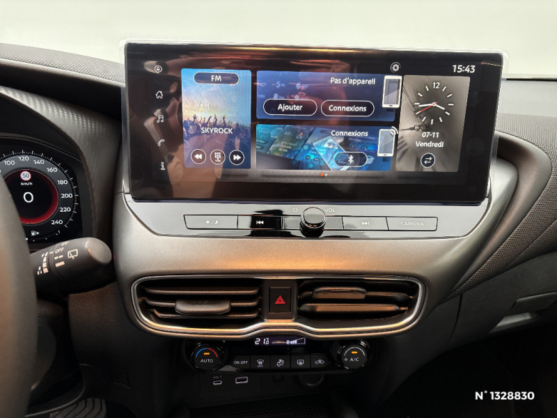 Sièges AV avec appuis-tête intégrés / Spoiler AR / Système audio radio avec écran tactile 12,3" et reconnaissance vocale / Système "Chassis Control" : Intelligent Trace Control (contrôle actif de trajectoire) et Intelligent Ride Control (Contrôle actif de l'assiette) / Système de navigation NissanConnect avec écran tactile 12,3" : Live Traffic et cartes 3D, Navigation porte-à -porte, Recherche par Points d'Intérêt, Google Street View, Vue Satellite et Météo, Mise à jour des cartes et logiciels, Prix des carburants, Commandes vocales avancées avec Amazon Alexa® / Système d'ouverture et de démarrage sans clé "Intelligent key" avec fonction de verrouillage/ déverrouillage à l'approche du véhicule / Vitres AV/AR électriques avec mode impulsionnel côté conducteur et passager / Volant gainé de cuir synthétique / 6 HP (AV, portes AV et portes AR) / Feux de détresse à déclenchement automatique / Feux de route adaptatifs / Freinage d'urgence AR intelligent avec détection piéton et cyclistes / Indicateur de changement de rapport / Kit de réparation pneumatique / Liseuses AV et AR / NBAS (amplificateur de freinage d'urgence) / Pare-soleil côté conducteur et passager avec miroir de courtoisie / Peinture opaque monoton / Poignées de maintien pour passager AV et AR / Poignées de portes couleur carrosserie / ABS (système antiblocage des freins) / Alarme périmétrique / Antenne aileron de requin Noir / Poignées intérieures d'ouverture de porte chromées / Bacs de rangement dans les contre-portes AV avec porte-bouteilles / Boîte de vitesses automatique 4 rapports / Bouton d'accès rapide aux réglages des aides à la conduite / Bouton de démarrage Start/Stop / Caméra de recul avec radars de stationnement AV et AR / Ceintures de sécurité AV ajustables en hauteur / Chargeur à induction pour Smartphone / Ciel de toit Noir / Clignotants à trois clignotements / Combiné d'instrumentation digital 12,3'' / Commandes au volant: contrôle de l'ordinateur de bord, audio, téléphone, régulateur et limiteur de vitesse / Contre-portes et tableau de bord en TEP noir / Direction assistée asservie à la vitesse / Double port USB AR (USB-A et USB-C) / Double port USB AV (USB-A et USB-C) / Eclairage d'accompagnement automatique / Eclairage du coffre / e-Pedal Step / Points d'ancrage pour sièges enfants ISOFIX à l'AR / Pommeau de levier de vitesse cuir / Porte-cartes intégré au pare-soleil côté conducteur / Porte-gobelets (x2) / Repose-genoux en TEP noir / Rétroviseur intérieur électrochromatique / Sélection du mode de conduite (ECO, STANDARD et SPORT) / Sellerie Mixte TEP/Tissu Noir