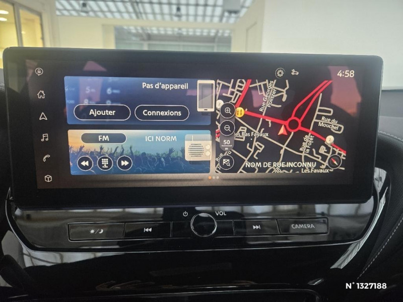 Liseuses AV et AR / Clignotants à trois clignotements / Combiné d'instrumentation digital 12,3'' / Commandes au volant: contrôle de l'ordinateur de bord, audio, téléphone, régulateur et limiteur de vitesse / ABS (système antiblocage des freins) / Alarme périmétrique / Antenne aileron de requin Noir / Bacs de rangement dans les contre-portes AV avec porte-bouteilles / Boîte de vitesses automatique 4 rapports / Bouton d'accès rapide aux réglages des aides à la conduite / Bouton de démarrage Start/Stop / Caméra de recul avec radars de stationnement AV et AR / Ceintures de sécurité AV ajustables en hauteur / Chargeur à induction pour Smartphone / Ciel de toit Noir / Contre-portes et tableau de bord en TEP noir / NBAS (amplificateur de freinage d'urgence) / Nissan AVM - Vision Intelligente à 360° : système d'aide au stationnement qui facilite les manoeuvres de stationnement en offrant une vision à 360° : - Caméra AR avec repères de gabarit - Caméra AV - Caméras latérales situées dans les rétroviseurs extérieurs / Pare-soleil côté conducteur et passager avec miroir de courtoisie / Peinture opaque monoton / Plancher de coffre modulable / Poche aumônière au dos des sièges conducteur et passager / Poignées de maintien pour passager AV et AR / Poignées de portes couleur carrosserie / Poignées intérieures d'ouverture de porte chromées / Points d'ancrage pour sièges enfants ISOFIX à l'AR / Pommeau de levier de vitesse cuir / Porte-cartes intégré au pare-soleil côté conducteur / Porte-gobelets (x2) / Repose-genoux en TEP noir / Rétroviseur intérieur électrochromatique / Sélection du mode de conduite (ECO, STANDARD et SPORT) / Sièges AV avec appuis-tête intégrés / Spoiler AR / Système audio Bose Personal Plus avec 10 HP 6 HP AV et côtés), 4 HP intégrés à l'appui-tête conducteur et passager AV, Réglage de l'immersion sonore / Système audio radio avec écran tactile 12,3" et reconnaissance vocale / Système d'alerte anticollision AR intelligent avec détection des objets en mouvement / Système de navigation NissanConnect avec écran tactile 12,3" : Live Traffic et cartes 3D, Navigation porte-à -porte, Recherche par Points d'Intérêt, Google Street View, Vue Satellite et Météo, Mise à jour des cartes et logiciels, Prix des carburants, Commandes vocales avancées avec Amazon Alexa® / Système d'ouverture et de démarrage sans clé "Intelligent key" avec fonction de verrouillage/ déverrouillage à l'approche du véhicule / Technologie ProPILOT Assist -technologie de conduite assistée : Aide au maintien dans la voie, assistant de conduite en embouteillage / Vitres AV/AR électriques avec mode impulsionnel côté conducteur et passager / Volant gainé de cuir synthétique / Système "Chassis Control" : Intelligent Trace Control (contrôle actif de trajectoire) et Intelligent Ride Control (Contrôle actif de l'assiette) / Direction assistée asservie à la vitesse / Double port USB AR (USB-A et USB-C) / Double port USB AV (USB-A et USB-C) / Eclairage d'accompagnement automatique / Eclairage d'ambiance (contre-portes et levier de vitesses) / Eclairage du coffre / e-Pedal Step / Feux de détresse à déclenchement automatique / Feux de route adaptatifs / Freinage d'urgence AR intelligent avec détection piéton et cyclistes / Indicateur de changement de rapport / Kit de réparation pneumatique
