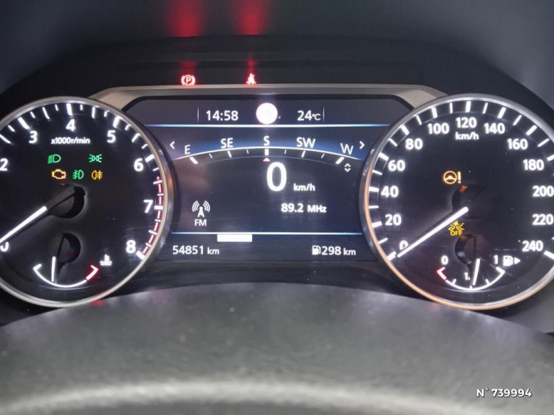 Feux de détresse à déclenchement automatique / Feux de route adaptatifs / Fonction des feux avant "Follow me Home" / Feux diurnes LED avec système Follow Me Home / Frein à main électrique avec aide au stationnement/démarrage et fonction Autohold / Freinage d'urgence intelligent (AEB) avec détection piéton et cyclistes / Indicateur de changement de rapport / Bacs de rangement dans les contre-portes AV avec porte-bouteilles / Bluetooth+USB+AUX+12V / Cache-bagages amovible / "ATTENTION" - Equipements incomplets / Caméra de recul avec radars de stationnement AV et AR / Ceintures de sécurité AV ajustables en hauteur / Ciel de toit Noir / Clignotants à trois clignotements / Combiné d'instrumentation avec écran LCD-TFT 7'' / Porte-gobelets (x2) / Reconnaissance vocale / Spoiler AR / Kit de réparation pneumatique / Liseuses AV et AR / NBAS (amplificateur de freinage d'urgence) / Nissan AVM - Vision Intelligente à 360° / Nissan Connect Services / Pare-brise chauffant / Pare-soleil côtés conducteur et passager avec miroir de courtoisie / Poche aumônière au dos des sièges AV et accoudoirs AR / Poignées de maintien pour passager AV et AR / Poignées de porte extérieures couleur carrosserie / Commandes au volant: contrôle de l'ordinateur de bord, audio, téléphone, régulateur et limiteur de vitesse / Contre-portes et tableau de bord en TEP gris / Direction assistée asservie à la vitesse / Drive Assist:technologie de conduite assistée / Eclairage d'ambiance (contre-portes et levier de vitesses) / Eclairage du coffre / ABS et EBD / Alarme périmétrique / Antenne aileron de requin Noir / Système "Chassis Control" : Intelligent Trace Control (contrôle actif de trajectoire) et Intelligent Ride Control (Contrôle actif de l'assiette) / Technologie de conduite assistée ProPILOT / Système d'alerte anticollision AR intelligent avec détection des objets en mouvement / Vitres AV/AR électriques avec mode impulsionnel côté conducteur / Système audio Bose Personal Plus avec 8 haut-parleurs 4 HP AV et côtés), 2 HP intégrés à l'appui-tête conducteur et passager AV, Réglage de l'immersion sonore / Système audio radio avec écran tactile 8" avec interface personnalisable, Apple CarPlay et Android Auto, commandes vocales / Poignées intérieures d'ouverture de porte chromées / Points d'ancrage pour sièges enfants ISOFIX à l'AR / Points d'accès Wi-Fi / Pommeau de levier de vitesse gainé de cuir / Porte-cartes intégré au pare-soleil côté conducteur / Sélection du mode de conduite (ECO, STANDARD et SPORT) / Sellerie mixte TEP/Tissu / Sièges AV monoform style / Repose-genoux en TEP (Tissu Enduit) / Rétroviseur intérieur électrochromatique