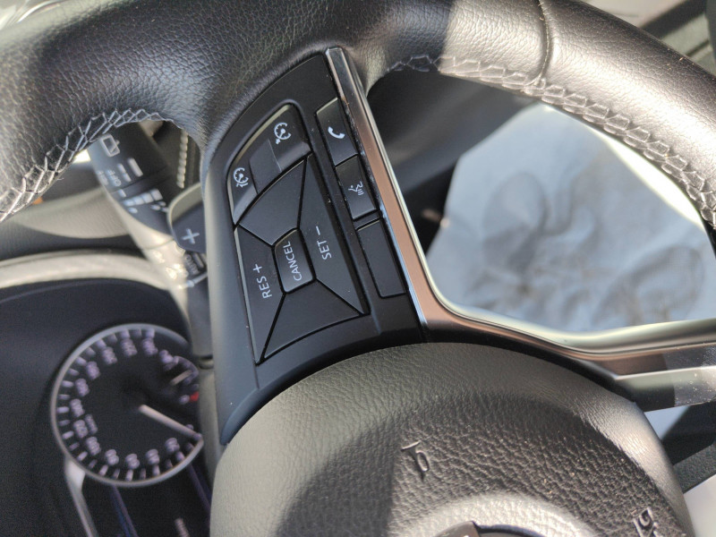6 HP / ABS et EBD / Alarme périmétrique / Antenne aileron de requin Noir / Bacs de rangement dans les contre-portes AV avec porte-bouteilles / Bluetooth+USB+AUX+12V / Caméra de recul avec radars de stationnement AV et AR / Ceintures de sécurité AV ajustables en hauteur / Ciel de toit Noir / Clignotants à trois clignotements / Combiné d'instrumentation avec écran LCD-TFT 7'' / Commandes au volant: contrôle de l'ordinateur de bord, audio, téléphone, régulateur et limiteur de vitesse / Contre-portes et tableau de bord en TEP noir / Direction assistée asservie à la vitesse / Eclairage du coffre / Feux de détresse à déclenchement automatique / Feux de route adaptatifs / Feux diurnes LED avec système Follow Me Home / Fonction des feux avant "Follow me Home" / Freinage d'urgence intelligent (AEB) avec détection piéton et cyclistes / Frein à main électrique avec aide au stationnement/démarrage et fonction Autohold / Indicateur de changement de rapport / Kit de réparation pneumatique / Liseuses AV et AR / NBAS (amplificateur de freinage d'urgence) / Nissan Connect Services / Pare-soleil côtés conducteur et passager avec miroir de courtoisie / Plancher de coffre modulable / Poignées de maintien pour passager AV et AR / Poignées de porte extérieures couleur carrosserie / Poignées intérieures d'ouverture de porte chromées / Points d'accès Wi-Fi / Points d'ancrage pour sièges enfants ISOFIX à l'AR / Pommeau de levier de vitesse gainé de cuir / Porte-cartes intégré au pare-soleil côté conducteur / Porte-gobelets (2x) / Repose-genoux en TEP / Rétroviseur intérieur électrochromatique / Sélection du mode de conduite (ECO, STANDARD et SPORT) / Sellerie mixte TEP / Tissu / Sièges AV monoform style / Spoiler AR / Système audio radio avec écran tactile 8" avec interface personnalisable, Apple CarPlay et Android Auto, commandes vocales / Système "Chassis Control" : Intelligent Trace Control (contrôle actif de trajectoire) et Intelligent Ride Control (Contrôle actif de l'assiette) / Vitres AV/AR électriques avec mode impulsionnel côté conducteur