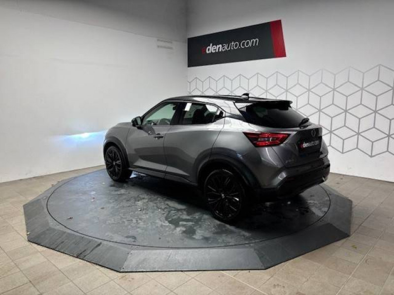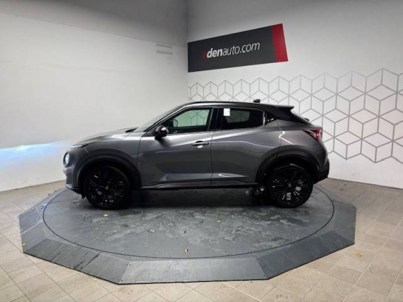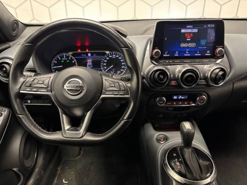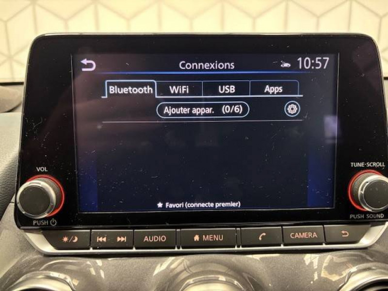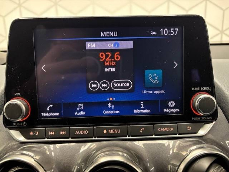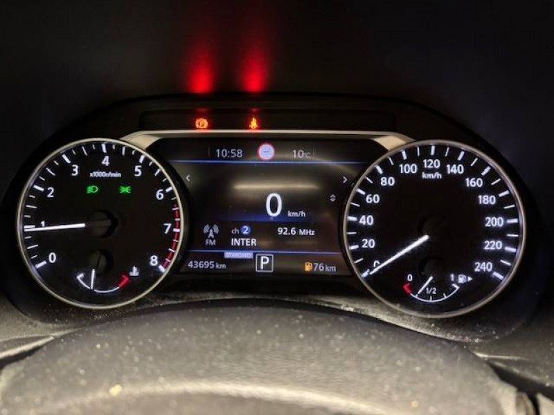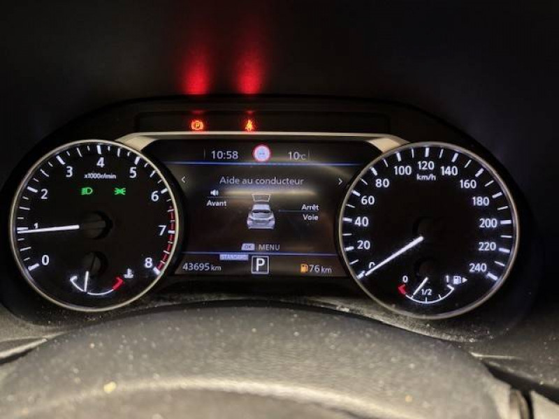 6 HP / ABS et EBD / Alarme périmétrique / Antenne aileron de requin Noir / "ATTENTION" - Equipements incomplets / Bacs de rangement dans les contre-portes AV avec porte-bouteilles / Bluetooth+USB+AUX+12V / Ceintures de sécurité AV ajustables en hauteur / Ciel de toit Noir / Clignotants à trois clignotements / Combiné d'instrumentation avec écran LCD-TFT 7'' / Commandes au volant: contrôle de l'ordinateur de bord, audio, téléphone, régulateur et limiteur de vitesse / Contre-portes et tableau de bord en TEP gris / Direction assistée asservie à la vitesse / Eclairage du coffre / Feux de détresse à déclenchement automatique / Feux de route adaptatifs / Feux diurnes LED avec système Follow Me Home / Fonction des feux avant "Follow me Home" / Freinage d'urgence intelligent (AEB) avec détection piéton et cyclistes / Indicateur de changement de rapport / Jantes acier 17" bi-ton / Kit de réparation pneumatique / Liseuses AV et AR / NBAS (amplificateur de freinage d'urgence) / Nissan Connect Services / Pare-soleil côtés conducteur et passager avec miroir de courtoisie / Personnalisation extérieure noire / Poignées de maintien pour passager AV et AR / Poignées de porte extérieures couleur carrosserie / Poignées intérieures d'ouverture de porte chromées / Points d'accès Wi-Fi / Points d'ancrage pour sièges enfants ISOFIX à l'AR / Pommeau de levier de vitesse gainé de cuir / Porte-cartes intégré au pare-soleil côté conducteur / Porte-gobelets (x2) / Reconnaissance vocale / Repose-genoux en TEP / Rétroviseur intérieur électrochromatique / Sélection du mode de conduite (ECO, STANDARD et SPORT) / Sellerie Tissu Noir avec surpiqûres grises / Sièges AV monoform style / Spoiler AR / Stickers Enigma / Système audio radio avec écran tactile 8" avec interface personnalisable, Apple CarPlay et Android Auto, commandes vocales / Système "Chassis Control" : Intelligent Trace Control (contrôle actif de trajectoire) et Intelligent Ride Control (Contrôle actif de l'assiette) / Toit Noir Métalisé / Vitres AV/AR électriques avec mode impulsionnel côté conducteur