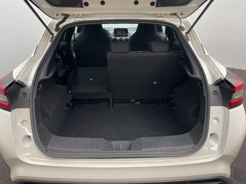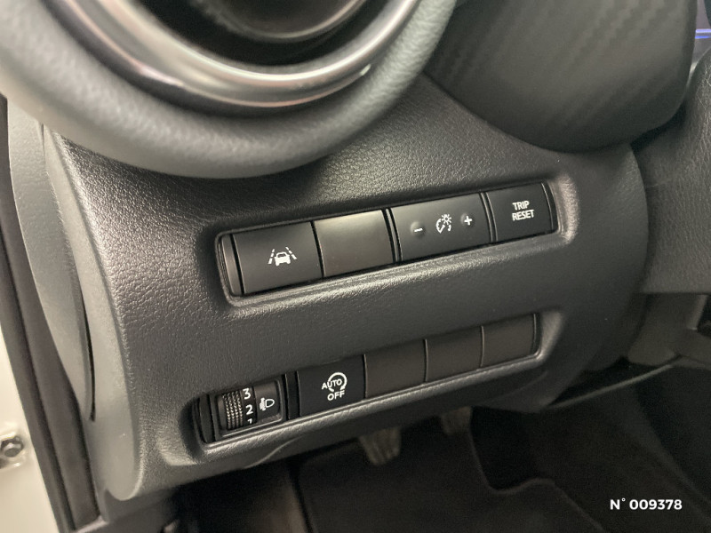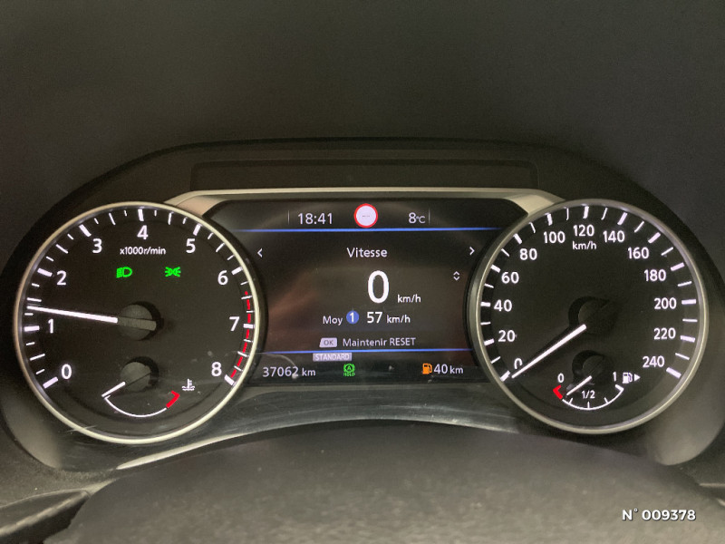 Ceintures de sécurité AV ajustables en hauteur / Ciel de toit Noir / Clignotants à trois clignotements / Combiné d'instrumentation avec écran LCD-TFT 7'' / Commandes au volant: contrôle de l'ordinateur de bord, audio, téléphone, régulateur et limiteur de vitesse / 6 HP / Feux de route adaptatifs / Feux diurnes LED avec système Follow Me Home / Fonction des feux avant "Follow me Home" / Frein à main électrique avec aide au stationnement/démarrage et fonction Autohold / Freinage d'urgence intelligent (AEB) avec détection piéton et cyclistes / Indicateur de changement de rapport / Kit de réparation pneumatique / Liseuses AV et AR / NBAS (amplificateur de freinage d'urgence) / Nissan Connect Services / Pare-soleil côtés conducteur et passager avec miroir de courtoisie / Plancher de coffre modulable / Poignées de maintien pour passager AV et AR / Poignées de porte extérieures couleur carrosserie / Poignées intérieures d'ouverture de porte chromées / Points d'accès Wi-Fi / Points d'ancrage pour sièges enfants ISOFIX à l'AR / Pommeau de levier de vitesse gainé de cuir / Porte-cartes intégré au pare-soleil côté conducteur / Porte-gobelets (x2) / Reconnaissance vocale / Repose-genoux en TEP / Rétroviseur intérieur électrochromatique / Sélection du mode de conduite (ECO, STANDARD et SPORT) / Sellerie Tissu Noir avec surpiqûres grises / Sièges AV monoform style / Spoiler AR / Système audio radio avec écran tactile 8" avec interface personnalisable, Apple CarPlay et Android Auto, commandes vocales / Système "Chassis Control" : Intelligent Trace Control (contrôle actif de trajectoire) et Intelligent Ride Control (Contrôle actif de l'assiette) / Vitres AV/AR électriques avec mode impulsionnel côté conducteur / ABS et EBD / Contre-portes et tableau de bord en TEP gris / Direction assistée asservie à la vitesse / Eclairage du coffre / Feux de détresse à déclenchement automatique / Alarme périmétrique / Antenne aileron de requin Noir / Bacs de rangement dans les contre-portes AV avec porte-bouteilles / Bluetooth+USB+AUX+12V