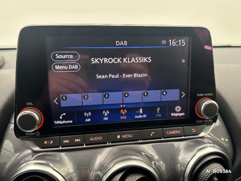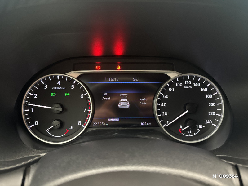 Points d'accès Wi-Fi / Porte-gobelets (x2) / Repose-genoux en TEP / Rétroviseur intérieur électrochromatique / Sélection du mode de conduite (ECO, STANDARD et SPORT) / Sellerie mixte TEP / Tissu / Pommeau de levier de vitesse gainé de cuir / Porte-cartes intégré au pare-soleil côté conducteur / Sièges AV monoform style / Spoiler AR / Système audio radio avec écran tactile 8" avec interface personnalisable, Apple CarPlay et Android Auto, commandes vocales / Système "Chassis Control" : Intelligent Trace Control (contrôle actif de trajectoire) et Intelligent Ride Control (Contrôle actif de l'assiette) / Vitres AV/AR électriques avec mode impulsionnel côté conducteur / 6 HP / Points d'ancrage pour sièges enfants ISOFIX à l'AR / ABS et EBD / Alarme périmétrique / Antenne aileron de requin Noir / Bacs de rangement dans les contre-portes AV avec porte-bouteilles / Bluetooth+USB+AUX+12V / Caméra de recul avec radars de stationnement AV et AR / Ceintures de sécurité AV ajustables en hauteur / Ciel de toit Noir / Clignotants à trois clignotements / Combiné d'instrumentation avec écran LCD-TFT 7'' / Commandes au volant: contrôle de l'ordinateur de bord, audio, téléphone, régulateur et limiteur de vitesse / Contre-portes et tableau de bord en TEP noir / Direction assistée asservie à la vitesse / Eclairage du coffre / Feux de détresse à déclenchement automatique / Feux de route adaptatifs / Feux diurnes LED avec système Follow Me Home / Fonction des feux avant "Follow me Home" / Frein à main électrique avec aide au stationnement/démarrage et fonction Autohold / Freinage d'urgence intelligent (AEB) avec détection piéton et cyclistes / Indicateur de changement de rapport / Kit de réparation pneumatique / Liseuses AV et AR / NBAS (amplificateur de freinage d'urgence) / Nissan Connect Services / Pare-soleil côtés conducteur et passager avec miroir de courtoisie / Plancher de coffre modulable / Poignées de maintien pour passager AV et AR / Poignées de porte extérieures couleur carrosserie / Poignées intérieures d'ouverture de porte chromées