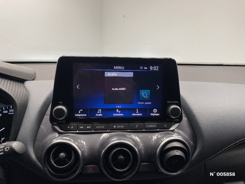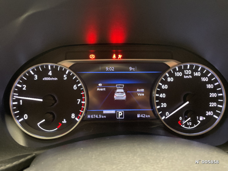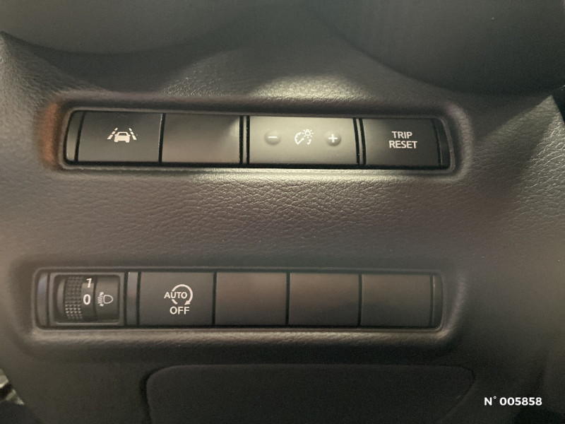 Vitres AV/AR électriques avec mode impulsionnel côté conducteur / 6 HP / Kit de réparation pneumatique / Liseuses AV et AR / NBAS (amplificateur de freinage d'urgence) / Nissan Connect Services / Pare-soleil côtés conducteur et passager avec miroir de courtoisie / Personnalisation extérieure noire / Poignées de maintien pour passager AV et AR / Poignées de porte extérieures couleur carrosserie / Poignées intérieures d'ouverture de porte chromées / Points d'accès Wi-Fi / Points d'ancrage pour sièges enfants ISOFIX à l'AR / Pommeau de levier de vitesse gainé de cuir / Porte-gobelets (x2) / Reconnaissance vocale / Repose-genoux en TEP / Rétroviseur intérieur électrochromatique / Sélection du mode de conduite (ECO, STANDARD et SPORT) / Bluetooth+USB+AUX+12V / Ceintures de sécurité AV ajustables en hauteur / Ciel de toit Noir / Clignotants à trois clignotements / Combiné d'instrumentation avec écran LCD-TFT 7'' / Commandes au volant: contrôle de l'ordinateur de bord, audio, téléphone, régulateur et limiteur de vitesse / Contre-portes et tableau de bord en TEP gris / Direction assistée asservie à la vitesse / Eclairage du coffre / Feux de détresse à déclenchement automatique / Sellerie Tissu Noir avec surpiqûres grises / Sièges AV monoform style / Spoiler AR / Stickers Enigma / Système audio radio avec écran tactile 8" avec interface personnalisable, Apple CarPlay et Android Auto, commandes vocales / Système "Chassis Control" : Intelligent Trace Control (contrôle actif de trajectoire) et Intelligent Ride Control (Contrôle actif de l'assiette) / Toit Noir Métalisé / Feux de route adaptatifs / Feux diurnes LED avec système Follow Me Home / Fonction des feux avant "Follow me Home" / Freinage d'urgence intelligent (AEB) avec détection piéton et cyclistes / Indicateur de changement de rapport / ABS et EBD / Alarme périmétrique / Antenne aileron de requin Noir / "ATTENTION" - Equipements incomplets / Bacs de rangement dans les contre-portes AV avec porte-bouteilles