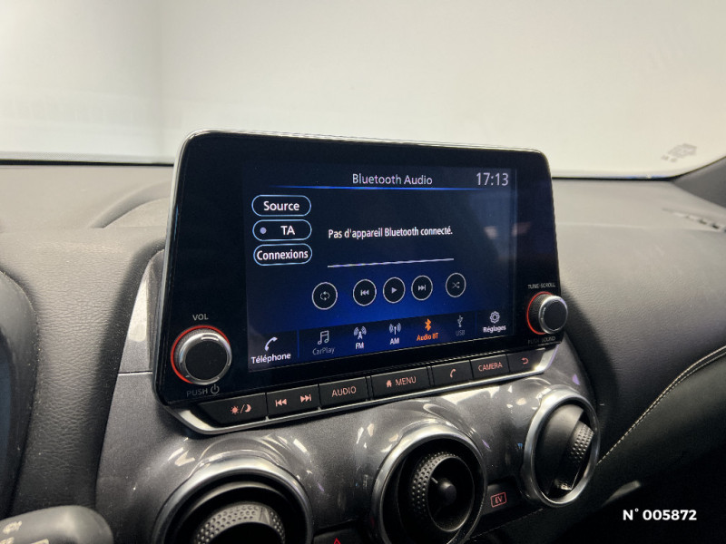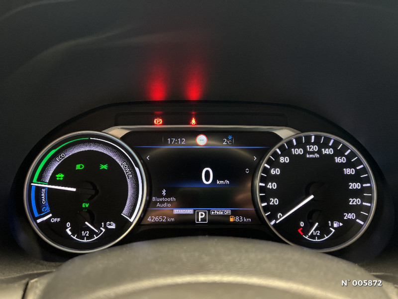Sélection du mode de conduite (ECO, STANDARD et SPORT) / Sellerie Mixte TEP/Tissu Noir / Sièges AV avec appuis-tête intégrés / Spoiler AR / Système audio radio avec écran tactile 12,3" et reconnaissance vocale / Feux de détresse à déclenchement automatique / Feux de route adaptatifs / Ciel de toit Noir / Système "Chassis Control" : Intelligent Trace Control (contrôle actif de trajectoire) et Intelligent Ride Control (Contrôle actif de l'assiette) / ABS (système antiblocage des freins) / Alarme périmétrique / Antenne aileron de requin Noir / Bacs de rangement dans les contre-portes AV avec porte-bouteilles / Boîte de vitesses automatique 4 rapports / Bouton d'accès rapide aux réglages des aides à la conduite / Bouton de démarrage Start/Stop / Caméra de recul avec radars de stationnement AV et AR / Ceintures de sécurité AV ajustables en hauteur / Chargeur à induction pour Smartphone / Kit de réparation pneumatique / Liseuses AV et AR / NBAS (amplificateur de freinage d'urgence) / Pare-soleil côté conducteur et passager avec miroir de courtoisie / Peinture opaque monoton / Poignées de maintien pour passager AV et AR / Poignées de portes couleur carrosserie / Poignées intérieures d'ouverture de porte chromées / Points d'ancrage pour sièges enfants ISOFIX à l'AR / Pommeau de levier de vitesse cuir / Porte-cartes intégré au pare-soleil côté conducteur / Porte-gobelets (x2) / Repose-genoux en TEP noir / Rétroviseur intérieur électrochromatique / Système de navigation NissanConnect avec écran tactile 12,3" : Live Traffic et cartes 3D, Navigation porte-à -porte, Recherche par Points d'Intérêt, Google Street View, Vue Satellite et Météo, Mise à jour des cartes et logiciels, Prix des carburants, Commandes vocales avancées avec Amazon Alexa® / Système d'ouverture et de démarrage sans clé "Intelligent key" avec fonction de verrouillage/ déverrouillage à l'approche du véhicule / Vitres AV/AR électriques avec mode impulsionnel côté conducteur et passager / Volant gainé de cuir synthétique / 6 HP (AV, portes AV et portes AR) / Freinage d'urgence AR intelligent avec détection piéton et cyclistes / Indicateur de changement de rapport / Clignotants à trois clignotements / Combiné d'instrumentation digital 12,3'' / Commandes au volant: contrôle de l'ordinateur de bord, audio, téléphone, régulateur et limiteur de vitesse / Contre-portes et tableau de bord en TEP noir / Direction assistée asservie à la vitesse / Double port USB AR (USB-A et USB-C) / Double port USB AV (USB-A et USB-C) / Eclairage d'accompagnement automatique / Eclairage du coffre / e-Pedal Step