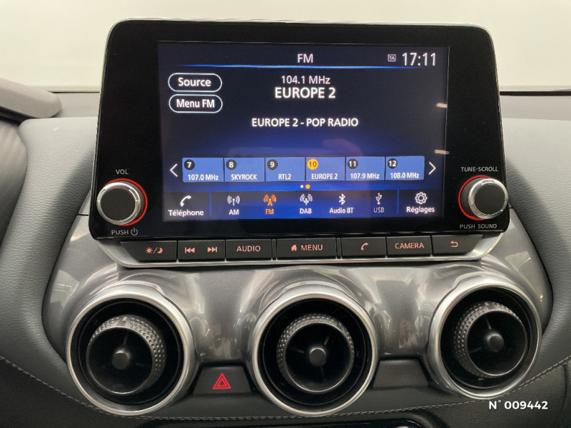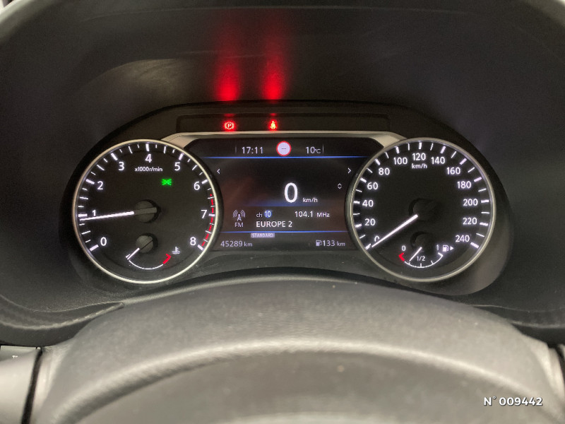 Points d'ancrage pour sièges enfants ISOFIX à l'AR / Reconnaissance vocale / ABS et EBD / Alarme périmétrique / Antenne aileron de requin Noir / Pommeau de levier de vitesse gainé de cuir / Porte-cartes intégré au pare-soleil côté conducteur / Porte-gobelets (x2) / Sélection du mode de conduite (ECO, STANDARD et SPORT) / Sellerie Tissu Noir avec surpiqûres grises / Sièges AV monoform style / Spoiler AR / Système audio radio avec écran tactile 8" avec interface personnalisable, Apple CarPlay et Android Auto, commandes vocales / Système "Chassis Control" : Intelligent Trace Control (contrôle actif de trajectoire) et Intelligent Ride Control (Contrôle actif de l'assiette) / Vitres AV/AR électriques avec mode impulsionnel côté conducteur / 6 HP / Repose-genoux en TEP / Rétroviseur intérieur électrochromatique / Bacs de rangement dans les contre-portes AV avec porte-bouteilles / Bluetooth+USB+AUX+12V / Ceintures de sécurité AV ajustables en hauteur / Ciel de toit Noir / Clignotants à trois clignotements / Combiné d'instrumentation avec écran LCD-TFT 7'' / Commandes au volant: contrôle de l'ordinateur de bord, audio, téléphone, régulateur et limiteur de vitesse / Contre-portes et tableau de bord en TEP gris / Direction assistée asservie à la vitesse / Eclairage du coffre / Feux de détresse à déclenchement automatique / Feux de route adaptatifs / Feux diurnes LED avec système Follow Me Home / Fonction des feux avant "Follow me Home" / Frein à main électrique avec aide au stationnement/démarrage et fonction Autohold / Freinage d'urgence intelligent (AEB) avec détection piéton et cyclistes / Indicateur de changement de rapport / Kit de réparation pneumatique / Liseuses AV et AR / NBAS (amplificateur de freinage d'urgence) / Nissan Connect Services / Pare-soleil côtés conducteur et passager avec miroir de courtoisie / Plancher de coffre modulable / Poignées de maintien pour passager AV et AR / Poignées de porte extérieures couleur carrosserie / Poignées intérieures d'ouverture de porte chromées / Points d'accès Wi-Fi