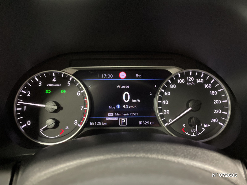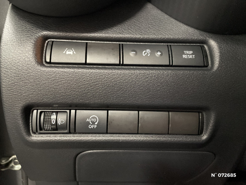 6 HP / Pare-soleil côtés conducteur et passager avec miroir de courtoisie / Plancher de coffre modulable / Poignées de maintien pour passager AV et AR / Poignées de porte extérieures couleur carrosserie / Poignées intérieures d'ouverture de porte chromées / Points d'accès Wi-Fi / Points d'ancrage pour sièges enfants ISOFIX à l'AR / Pommeau de levier de vitesse gainé de cuir / Porte-cartes intégré au pare-soleil côté conducteur / Porte-gobelets (x2) / Reconnaissance vocale / Repose-genoux en TEP / Rétroviseur intérieur électrochromatique / ABS et EBD / Alarme périmétrique / Antenne aileron de requin Noir / Bacs de rangement dans les contre-portes AV avec porte-bouteilles / Bluetooth+USB+AUX+12V / Ceintures de sécurité AV ajustables en hauteur / Ciel de toit Noir / Clignotants à trois clignotements / Combiné d'instrumentation avec écran LCD-TFT 7'' / Commandes au volant: contrôle de l'ordinateur de bord, audio, téléphone, régulateur et limiteur de vitesse / Contre-portes et tableau de bord en TEP gris / Direction assistée asservie à la vitesse / Eclairage du coffre / Feux de détresse à déclenchement automatique / Feux de route adaptatifs / Feux diurnes LED avec système Follow Me Home / Fonction des feux avant "Follow me Home" / Frein à main électrique avec aide au stationnement/démarrage et fonction Autohold / Freinage d'urgence intelligent (AEB) avec détection piéton et cyclistes / Indicateur de changement de rapport / Kit de réparation pneumatique / Liseuses AV et AR / NBAS (amplificateur de freinage d'urgence) / Nissan Connect Services / Sélection du mode de conduite (ECO, STANDARD et SPORT) / Sellerie Tissu Noir avec surpiqûres grises / Sièges AV monoform style / Spoiler AR / Système audio radio avec écran tactile 8" avec interface personnalisable, Apple CarPlay et Android Auto, commandes vocales / Système "Chassis Control" : Intelligent Trace Control (contrôle actif de trajectoire) et Intelligent Ride Control (Contrôle actif de l'assiette) / Vitres AV/AR électriques avec mode impulsionnel côté conducteur