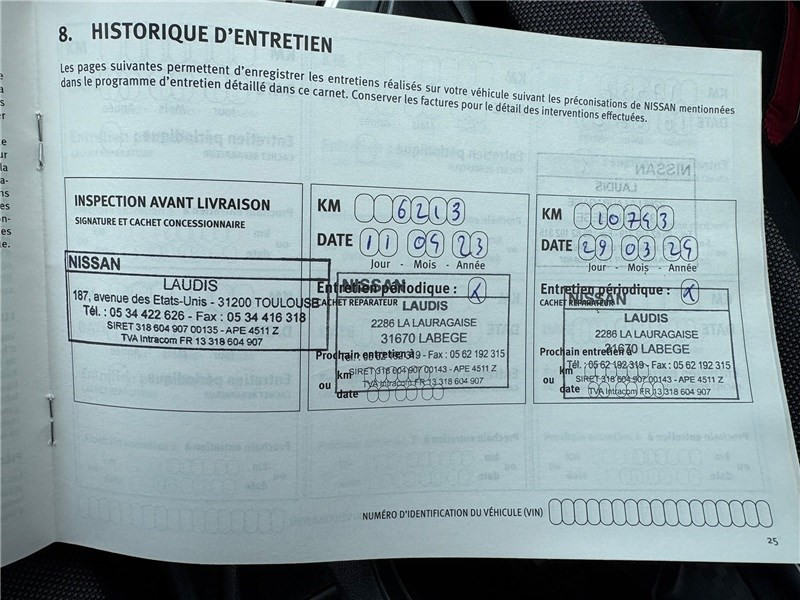 6 HP / ABS et EBD / Alarme périmétrique / Antenne aileron de requin Noir / Bacs de rangement dans les contre-portes AV avec porte-bouteilles / Bluetooth+USB+AUX+12V / Ceintures de sécurité AV ajustables en hauteur / Ciel de toit Noir / Clignotants à trois clignotements / Combiné d'instrumentation avec écran LCD-TFT 7'' / Commandes au volant: contrôle de l'ordinateur de bord, audio, téléphone, / Contre-portes et tableau de bord en TEP gris / Direction assistée asservie à la vitesse / Eclairage du coffre / Feux de détresse à déclenchement automatique / Feux de route adaptatifs / Feux diurnes LED avec système Follow Me Home / Fonction des feux avant "Follow me Home" / Freinage d'urgence intelligent (AEB) avec détection piéton et cyclistes / Frein à main électrique avec aide au stationnement/démarrage et fonction Autohold / Indicateur de changement de rapport / Kit de réparation pneumatique / Liseuses AV et AR / NBAS (amplificateur de freinage d'urgence) / Nissan Connect Services / Pare-soleil côtés conducteur et passager avec miroir de courtoisie / Plancher de coffre modulable / Poignées de maintien pour passager AV et AR / Poignées de porte extérieures couleur carrosserie / Poignées intérieures d'ouverture de porte chromées / Points d'accès Wi-Fi / Points d'ancrage pour sièges enfants ISOFIX à l'AR / Pommeau de levier de vitesse gainé de cuir / Porte-cartes intégré au pare-soleil côté conducteur / Porte-gobelets (x2) / Reconnaissance vocale / Repose-genoux en TEP / Rétroviseur intérieur électrochromatique / Sélection du mode de conduite (ECO, STANDARD et SPORT) / Sellerie Tissu Noir avec surpiqûres grises / Sièges AV monoform style / Spoiler AR / Système audio radio avec écran tactile 8" avec interface personnalisable, Apple CarPlay / Système "Chassis Control" : Intelligent Trace Control (contrôle actif de trajectoire) et Intelligent / Vitres AV/AR électriques avec mode impulsionnel côté conducteur
