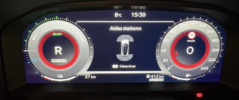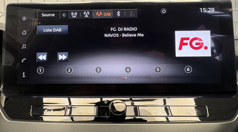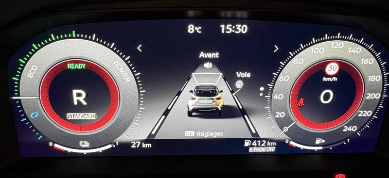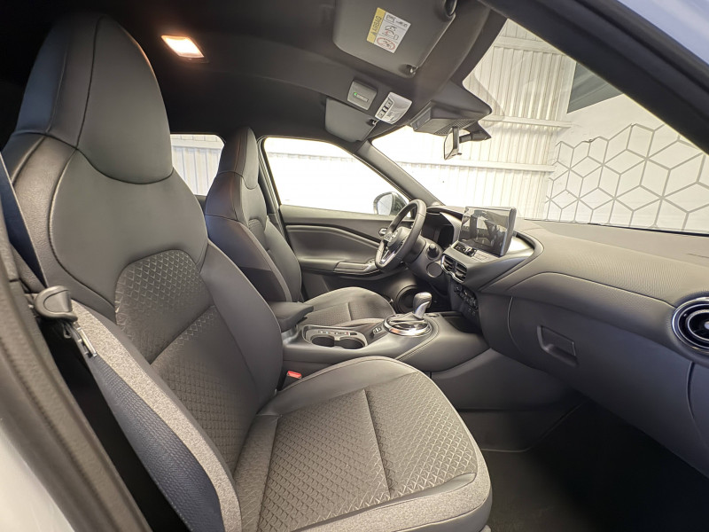 6 HP (AV, portes AV et portes AR) / ABS (système antiblocage des freins) / Alarme périmétrique / Antenne aileron de requin Noir / Bacs de rangement dans les contre-portes AV avec porte-bouteilles / Boîte de vitesses automatique 4 rapports / Bouton d'accès rapide aux réglages des aides à la conduite / Bouton de démarrage Start/Stop / Caméra de recul avec radars de stationnement AV et AR / Ceintures de sécurité AV ajustables en hauteur / Chargeur à induction pour Smartphone / Ciel de toit Noir / Clignotants à trois clignotements / Combiné d'instrumentation digital 12,3'' / Commandes au volant: contrôle de l'ordinateur de bord, audio, téléphone, régulateur et limiteur de vitesse / Contre-portes et tableau de bord en TEP noir / Direction assistée asservie à la vitesse / Double port USB AR (USB-A et USB-C) / Double port USB AV (USB-A et USB-C) / Eclairage d'accompagnement automatique / Eclairage du coffre / e-Pedal Step / Feux de détresse à déclenchement automatique / Feux de route adaptatifs / Freinage d'urgence AR intelligent avec détection piéton et cyclistes / Indicateur de changement de rapport / Kit de réparation pneumatique / Liseuses AV et AR / NBAS (amplificateur de freinage d'urgence) / Pare-soleil côté conducteur et passager avec miroir de courtoisie / Peinture opaque monoton / Poignées de maintien pour passager AV et AR / Poignées de portes couleur carrosserie / Poignées intérieures d'ouverture de porte chromées / Points d'ancrage pour sièges enfants ISOFIX à l'AR / Pommeau de levier de vitesse cuir / Porte-cartes intégré au pare-soleil côté conducteur / Porte-gobelets (x2) / Repose-genoux en TEP noir / Rétroviseur intérieur électrochromatique / Sélection du mode de conduite (ECO, STANDARD et SPORT) / Sellerie Mixte TEP/Tissu Noir / Sièges AV avec appuis-tête intégrés / Spoiler AR / Système audio radio avec écran tactile 12,3" et reconnaissance vocale / Système "Chassis Control" : Intelligent Trace Control (contrôle actif de trajectoire) et Intelligent Ride Control (Contrôle actif de l'assiette) / Système de navigation NissanConnect avec écran tactile 12,3" : Live Traffic et cartes 3D, Navigation porte-à-porte, Recherche par Points d'Intérêt, Google Street View, Vue Satellite et Météo, Mise à jour des cartes et logiciels, Prix des carburants, Commandes vocales avancées avec Amazon Alexa® / Système d'ouverture et de démarrage sans clé "Intelligent key" avec fonction de verrouillage/ déverrouillage à l'approche du véhicule / Vitres AV/AR électriques avec mode impulsionnel côté conducteur et passager / Volant gainé de cuir synthétique