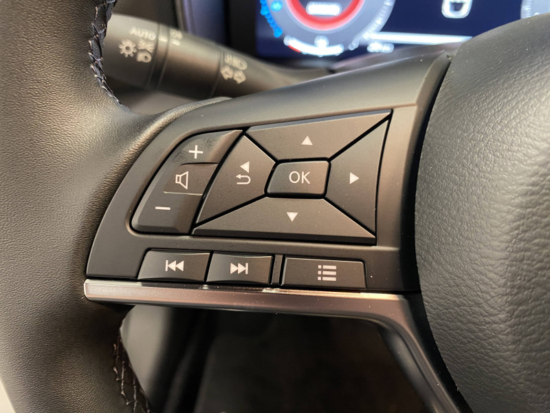 6 HP (AV, portes AV et portes AR) / ABS (système antiblocage des freins) / Alarme périmétrique / Antenne aileron de requin Noir / Bacs de rangement dans les contre-portes AV avec porte-bouteilles / Boîte de vitesses automatique 4 rapports / Bouton d'accès rapide aux réglages des aides à la conduite / Bouton de démarrage Start/Stop / Caméra de recul avec radars de stationnement AV et AR / Ceintures de sécurité AV ajustables en hauteur / Chargeur à induction pour Smartphone / Ciel de toit Noir / Clignotants à trois clignotements / Combiné d'instrumentation digital 12,3'' / Commandes au volant: contrôle de l'ordinateur de bord, audio, téléphone, régulateur et limiteur de vitesse / Contre-portes et tableau de bord en TEP noir / Direction assistée asservie à la vitesse / Double port USB AR (USB-A et USB-C) / Double port USB AV (USB-A et USB-C) / Eclairage d'accompagnement automatique / Eclairage du coffre / e-Pedal Step / Feux de détresse à déclenchement automatique / Feux de route adaptatifs / Freinage d'urgence AR intelligent avec détection piéton et cyclistes / Indicateur de changement de rapport / Kit de réparation pneumatique / Liseuses AV et AR / NBAS (amplificateur de freinage d'urgence) / Pare-soleil côté conducteur et passager avec miroir de courtoisie / Peinture opaque monoton / Poignées de maintien pour passager AV et AR / Poignées de portes couleur carrosserie / Poignées intérieures d'ouverture de porte chromées / Points d'ancrage pour sièges enfants ISOFIX à l'AR / Pommeau de levier de vitesse cuir / Porte-cartes intégré au pare-soleil côté conducteur / Porte-gobelets (x2) / Repose-genoux en TEP noir / Rétroviseur intérieur électrochromatique / Sélection du mode de conduite (ECO, STANDARD et SPORT) / Sellerie Mixte TEP/Tissu Noir / Sièges AV avec appuis-tête intégrés / Spoiler AR / Système audio radio avec écran tactile 12,3" et reconnaissance vocale / Système "Chassis Control" : Intelligent Trace Control (contrôle actif de trajectoire) et Intelligent Ride Control (Contrôle actif de l'assiette) / Système de navigation NissanConnect avec écran tactile 12,3" : Live Traffic et cartes 3D, Navigation porte-à-porte, Recherche par Points d'Intérêt, Google Street View, Vue Satellite et Météo, Mise à jour des cartes et logiciels, Prix des carburants, Commandes vocales avancées avec Amazon Alexa® / Système d'ouverture et de démarrage sans clé "Intelligent key" avec fonction de verrouillage/ déverrouillage à l'approche du véhicule / Vitres AV/AR électriques avec mode impulsionnel côté conducteur et passager / Volant gainé de cuir synthétique
