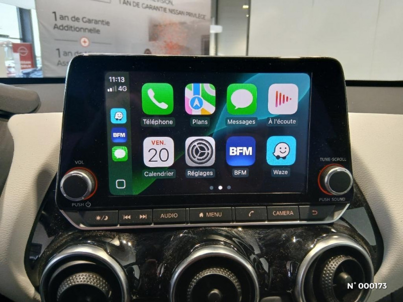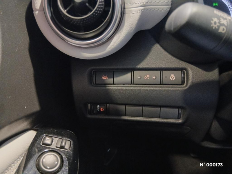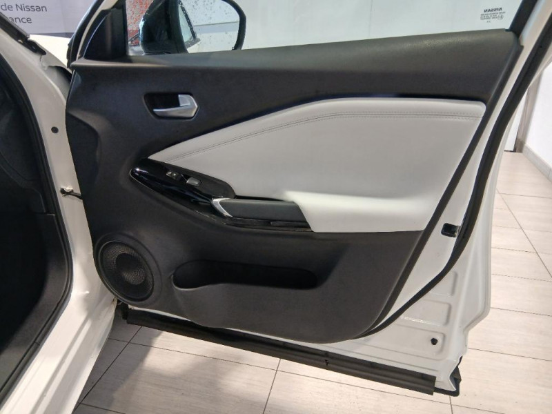 Indicateur de changement de rapport / Vitres AV/AR électriques avec mode impulsionnel côté conducteur / Volant chauffant / 6 HP / ABS et EBD / Alarme périmétrique / Antenne aileron de requin Noir / Bacs de rangement dans les contre-portes AV avec porte-bouteilles / Bluetooth+USB+AUX+12V / Caméra de recul avec radars de stationnement AV et AR / Ceintures de sécurité AV ajustables en hauteur / Ciel de toit Noir / Clignotants à trois clignotements / Combiné d'instrumentation avec écran LCD-TFT 7'' / Commandes au volant: contrôle de l'ordinateur de bord, audio, téléphone, régulateur et limiteur de vitesse / Contre-portes et tableau de bord spécifiques / Direction assistée asservie à la vitesse / Eclairage d'ambiance (contre-portes et levier de vitesses) / Eclairage du coffre / e-Pedal Step / Feux de détresse à déclenchement automatique / Feux de route adaptatifs / Feux diurnes LED avec système Follow Me Home / Fonction des feux avant "Follow me Home" / Frein à main électrique avec aide au stationnement/démarrage et fonction Autohold / Kit de réparation pneumatique / Liseuses AV et AR / NBAS (amplificateur de freinage d'urgence) / Nissan Connect Services / Pack Extérieur Noir Métallisé, Rouge Fuji ou Gris Perle / Pack Intérieur Noir, Orange ou Blanc / Pare-brise chauffant / Pare-soleil côtés conducteur et passager avec miroir de courtoisie / Freinage d'urgence intelligent (AEB) avec détection piéton et cyclistes / Peinture bi-ton / Plancher de coffre modulable / Poche aumônière au dos des sièges conducteur et passager / Poignées de maintien pour passager AV et AR / Poignées de porte extérieures couleur carrosserie / Poignées intérieures d'ouverture de porte chromées / Points d'accès Wi-Fi / Points d'ancrage pour sièges enfants ISOFIX à l'AR / Pommeau de levier de vitesse gainé de cuir / Porte-cartes intégré au pare-soleil côté conducteur / Porte-gobelets (x2) / Repose-genoux en TEP / Rétroviseur intérieur électrochromatique / Sélection du mode de conduite (ECO, STANDARD et SPORT) / Sellerie Perso Noir, Orange ou Blanc / Sièges AV monoform style / Spoiler AR / Système audio radio avec écran tactile 8" avec interface personnalisable, Apple CarPlay et Android Auto, commandes vocales / Système "Chassis Control" : Intelligent Trace Control (contrôle actif de trajectoire) et Intelligent Ride Control (Contrôle actif de l'assiette)