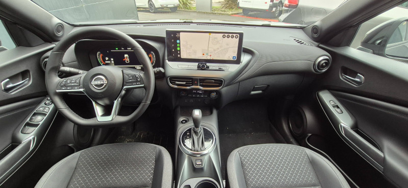 6 HP (AV, portes AV et portes AR) / ABS (système antiblocage des freins) / Alarme périmétrique / Antenne aileron de requin Noir / Bacs de rangement dans les contre-portes AV avec porte-bouteilles / Boîte de vitesses automatique 4 rapports / Bouton d'accès rapide aux réglages des aides à la conduite / Bouton de démarrage Start/Stop / Caméra de recul avec radars de stationnement AV et AR / Ceintures de sécurité AV ajustables en hauteur / Chargeur à induction pour Smartphone / Ciel de toit Noir / Clignotants à trois clignotements / Combiné d'instrumentation digital 12,3'' / Commandes au volant: contrôle de l'ordinateur de bord, audio, téléphone, régulateur et limiteur de vitesse / Contre-portes et tableau de bord en TEP noir / Direction assistée asservie à la vitesse / Double port USB AR (USB-A et USB-C) / Double port USB AV (USB-A et USB-C) / Eclairage d'accompagnement automatique / Eclairage du coffre / e-Pedal Step / Feux de détresse à déclenchement automatique / Feux de route adaptatifs / Freinage d'urgence AR intelligent avec détection piéton et cyclistes / Indicateur de changement de rapport / Kit de réparation pneumatique / Liseuses AV et AR / NBAS (amplificateur de freinage d'urgence) / Pare-soleil côté conducteur et passager avec miroir de courtoisie / Peinture opaque monoton / Poignées de maintien pour passager AV et AR / Poignées de portes couleur carrosserie / Poignées intérieures d'ouverture de porte chromées / Points d'ancrage pour sièges enfants ISOFIX à l'AR / Pommeau de levier de vitesse cuir / Porte-cartes intégré au pare-soleil côté conducteur / Porte-gobelets (x2) / Repose-genoux en TEP noir / Rétroviseur intérieur électrochromatique / Sélection du mode de conduite (ECO, STANDARD et SPORT) / Sellerie Mixte TEP/Tissu Noir / Sièges AV avec appuis-tête intégrés / Spoiler AR / Système audio radio avec écran tactile 12,3" et reconnaissance vocale / Système "Chassis Control" : Intelligent Trace Control (contrôle actif de trajectoire) et Intelligent Ride Control (Contrôle actif de l'assiette) / Système de navigation NissanConnect avec écran tactile 12,3" : Live Traffic et cartes 3D, Navigation porte-à-porte, Recherche par Points d'Intérêt, Google Street View, Vue Satellite et Météo, Mise à jour des cartes et logiciels, Prix des carburants, Commandes vocales avancées avec Amazon Alexa® / Système d'ouverture et de démarrage sans clé "Intelligent key" avec fonction de verrouillage/ déverrouillage à l'approche du véhicule / Vitres AV/AR électriques avec mode impulsionnel côté conducteur et passager / Volant gainé de cuir synthétique