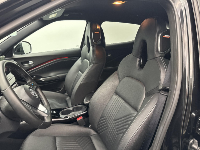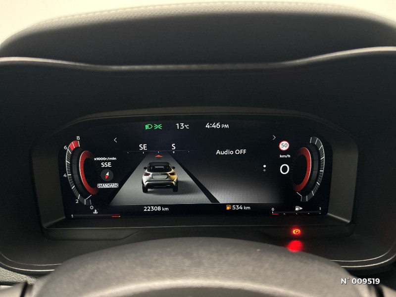 Plancher de coffre modulable / Poche aumônière au dos des sièges conducteur et passager / Poignées de maintien passager AV / Poignées de portes couleur carrosserie / Poignées intérieures d'ouverture de porte chromées / Points d'ancrage pour sièges enfants ISOFIX à l'AR / Pommeau de levier de vitesse cuir / Porte-cartes intégré au pare-soleil côté conducteur / Porte-gobelets (x2) / ABS (système antiblocage des freins) / Alarme périmétrique / Antenne aileron de requin Noir / Bacs de rangement dans les contre-portes AV avec porte-bouteilles / Repose-genoux en TEP noir / Rétroviseur intérieur électrochromatique / Sélection du mode de conduite (ECO, STANDARD et SPORT) / Sièges AV avec appuis-tête intégrés / Spoiler AR / Système audio Bose Personal Plus avec 10 HP 6 HP AV et côtés), 4 HP intégrés à l'appui-tête conducteur et passager AV, Réglage de l'immersion sonore / Système audio radio avec écran tactile 12,3" et reconnaissance vocale / Système "Chassis Control" : Intelligent Trace Control (contrôle actif de trajectoire) et Intelligent Ride Control (Contrôle actif de l'assiette) / Système d'alerte anticollision AR intelligent avec détection des objets en mouvement / Système de navigation NissanConnect avec écran tactile 12,3" : Live Traffic et cartes 3D, Navigation porte-à-porte, Recherche par Points d'Intérêt, Google Street View, Vue Satellite et Météo, Mise à jour des cartes et logiciels, Prix des carburants, Commandes vocales avancées avec Amazon Alexa / Système d'ouverture et de démarrage sans clé "Intelligent key" avec fonction de verrouillage/ déverrouillage à l'approche du véhicule / Vitres AV/AR électriques avec mode impulsionnel côté conducteur et passager / Volant gainé de cuir synthétique / Boîte de vitesses manuelle 6 rapports / Bouton d'accès rapide aux réglages des aides à la conduite / Bouton de démarrage Start/Stop / Caméra de recul avec radars de stationnement AV et AR / Ceintures de sécurité AV ajustables en hauteur / Chargeur à induction pour Smartphone / Ciel de toit Noir / Clignotants à trois clignotements / Combiné d'instrumentation digital 12,3'' / Commandes au volant: contrôle de l'ordinateur de bord, audio, téléphone, régulateur et limiteur de vitesse / Commandes vocales / Contre-portes et tableau de bord en TEP noir / Contrôle de la traction (TCS) / Direction assistée asservie à la vitesse / Double port USB AR (USB-A et USB-C) / Double port USB AV (USB-A et USB-C) / Drive Assist - technologie de conduite assistée Aide au maintien dans la voie / Eclairage d'accompagnement automatique / Eclairage d'ambiance (contre-portes et levier de vitesses) / Eclairage du coffre / Feux de détresse à déclenchement automatique / Feux de route adaptatifs / Frein à main électrique avec aide au stationnement/démarrage et fonction Autohold / Freinage d'urgence AR intelligent avec détection piéton et cyclistes / Indicateur de changement de rapport / Kit de réparation pneumatique / Liseuses AV et AR / NBAS (amplificateur de freinage d'urgence) / Nissan AVM - Vision Intelligente à 360° : système d'aide au stationnement qui facilite les manoeuvres de stationnement en offrant une vision à 360° : - Caméra AR avec repères de gabarit - Caméra AV - Caméras latérales situées dans les rétroviseurs extérieurs / NissanConnect Services - Services télématiques avec accès à distance depuis un smartphone Service de commandes à distance, Géolocalisation du véhicule, Historique de conduite et de navigation, Rapports sur l'état de santé du véhicule et alertes de dysfonctionnement, Rappel des pas d'entretien, Aide et assistance Nissan, Point d'accès Wi-Fi / Pare-soleil côté conducteur et passager avec miroir de courtoisie