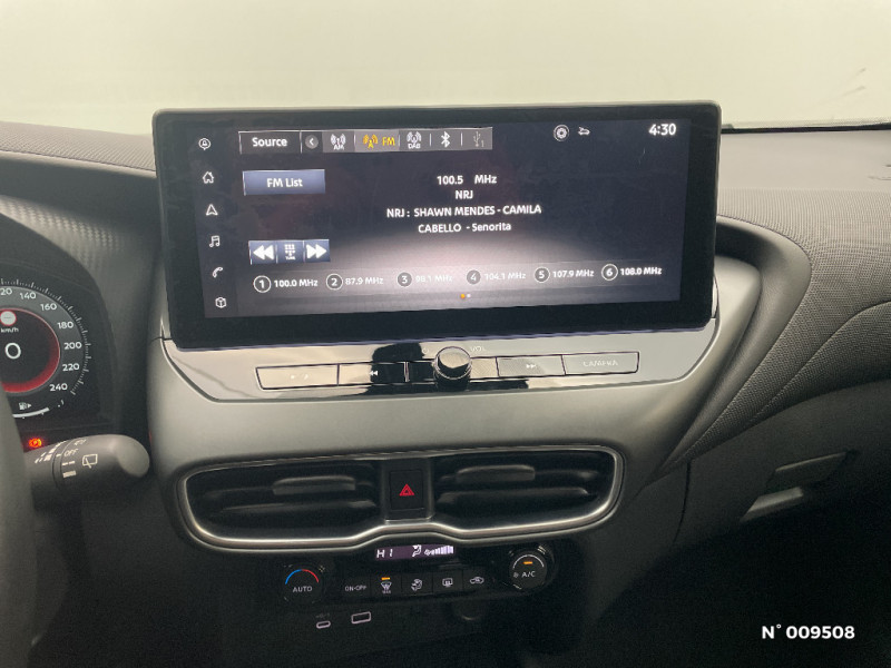 Bacs de rangement dans les contre-portes AV avec porte-bouteilles / Boîte de vitesses manuelle 6 rapports / Bouton d'accès rapide aux réglages des aides à la conduite / Bouton de démarrage Start/Stop / Caméra de recul avec radars de stationnement AV et AR / Ceintures de sécurité AV ajustables en hauteur / Chargeur à induction pour Smartphone / Ciel de toit Noir / Clignotants à trois clignotements / Combiné d'instrumentation digital 12,3'' / Commandes au volant: contrôle de l'ordinateur de bord, audio, téléphone, régulateur et limiteur de vitesse / Commandes vocales / Contre-portes et tableau de bord en TEP noir / Contrôle de la traction (TCS) / Direction assistée asservie à la vitesse / Double port USB AR (USB-A et USB-C) / Double port USB AV (USB-A et USB-C) / Eclairage d'accompagnement automatique / Eclairage du coffre / Feux de détresse à déclenchement automatique / Feux de route adaptatifs / Frein à main électrique avec aide au stationnement/démarrage et fonction Autohold / Freinage d'urgence AR intelligent avec détection piéton et cyclistes / Indicateur de changement de rapport / Kit de réparation pneumatique / 6 HP (AV, portes AV et portes AR) / Vitres AV/AR électriques avec mode impulsionnel côté conducteur et passager / Volant gainé de cuir synthétique / Liseuses AV et AR / NBAS (amplificateur de freinage d'urgence) / Pare-soleil côté conducteur et passager avec miroir de courtoisie / Poignées de maintien passager AV / Poignées de portes couleur carrosserie / Poignées intérieures d'ouverture de porte chromées / Points d'ancrage pour sièges enfants ISOFIX à l'AR / Pommeau de levier de vitesse cuir / Porte-cartes intégré au pare-soleil côté conducteur / Porte-gobelets (x2) / Repose-genoux en TEP noir / Rétroviseur intérieur jour/nuit manuel / Système d'ouverture et de démarrage sans clé "Intelligent key" avec fonction de verrouillage/ déverrouillage à l'approche du véhicule / Sélection du mode de conduite (ECO, STANDARD et SPORT) / Sellerie Mixte TEP/Tissu Noir / Sièges AV avec appuis-tête intégrés / Spoiler AR / Système audio radio avec écran tactile 12,3" et reconnaissance vocale / Système "Chassis Control" : Intelligent Trace Control (contrôle actif de trajectoire) et Intelligent Ride Control (Contrôle actif de l'assiette) / ABS (système antiblocage des freins) / Alarme périmétrique / Antenne aileron de requin Noir