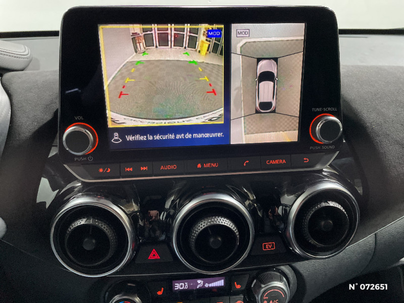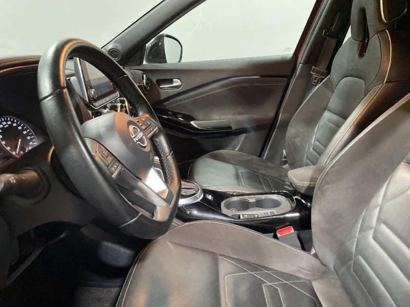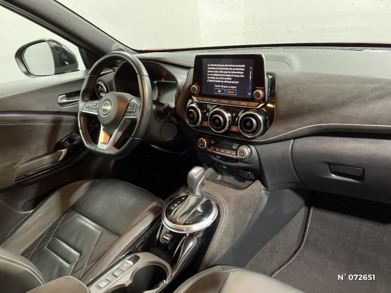 Poche aumônière au dos des sièges conducteur et passager / Poignées de maintien pour passager AV et AR / Poignées de porte extérieures couleur carrosserie / Poignées intérieures d'ouverture de porte chromées / Points d'accès Wi-Fi / Points d'ancrage pour sièges enfants ISOFIX à l'AR / Pommeau de levier de vitesse gainé de cuir / Alarme périmétrique / Antenne aileron de requin Noir / Bacs de rangement dans les contre-portes AV avec porte-bouteilles / Bluetooth+USB+AUX+12V / Caméra de recul avec radars de stationnement AV et AR / Ceintures de sécurité AV ajustables en hauteur / Ciel de toit Noir / Clignotants à trois clignotements / Combiné d'instrumentation avec écran LCD-TFT 7'' / Commandes au volant: contrôle de l'ordinateur de bord, audio, téléphone, régulateur et limiteur de vitesse / Contre-portes et tableau de bord spécifiques / Direction assistée asservie à la vitesse / Eclairage d'ambiance (contre-portes et levier de vitesses) / Eclairage du coffre / e-Pedal Step / Feux de détresse à déclenchement automatique / Feux de route adaptatifs / Feux diurnes LED avec système Follow Me Home / Fonction des feux avant "Follow me Home" / Frein à main électrique avec aide au stationnement/démarrage et fonction Autohold / Freinage d'urgence intelligent (AEB) avec détection piéton et cyclistes / ABS et EBD / Indicateur de changement de rapport / Kit de réparation pneumatique / Liseuses AV et AR / NBAS (amplificateur de freinage d'urgence) / Nissan Connect Services / Pack Extérieur Noir Métallisé, Rouge Fuji ou Gris Perle / Porte-cartes intégré au pare-soleil côté conducteur / Porte-gobelets (x2) / Repose-genoux en TEP / Rétroviseur intérieur électrochromatique / Pack Intérieur Noir, Orange ou Blanc / Pare-brise chauffant / Pare-soleil côtés conducteur et passager avec miroir de courtoisie / Sélection du mode de conduite (ECO, STANDARD et SPORT) / Sellerie Perso Noir, Orange ou Blanc / Sièges AV monoform style / Spoiler AR / Système audio radio avec écran tactile 8" avec interface personnalisable, Apple CarPlay et Android Auto, commandes vocales / Système "Chassis Control" : Intelligent Trace Control (contrôle actif de trajectoire) et Intelligent Ride Control (Contrôle actif de l'assiette) / Vitres AV/AR électriques avec mode impulsionnel côté conducteur / Volant chauffant / 6 HP / Peinture bi-ton / Plancher de coffre modulable