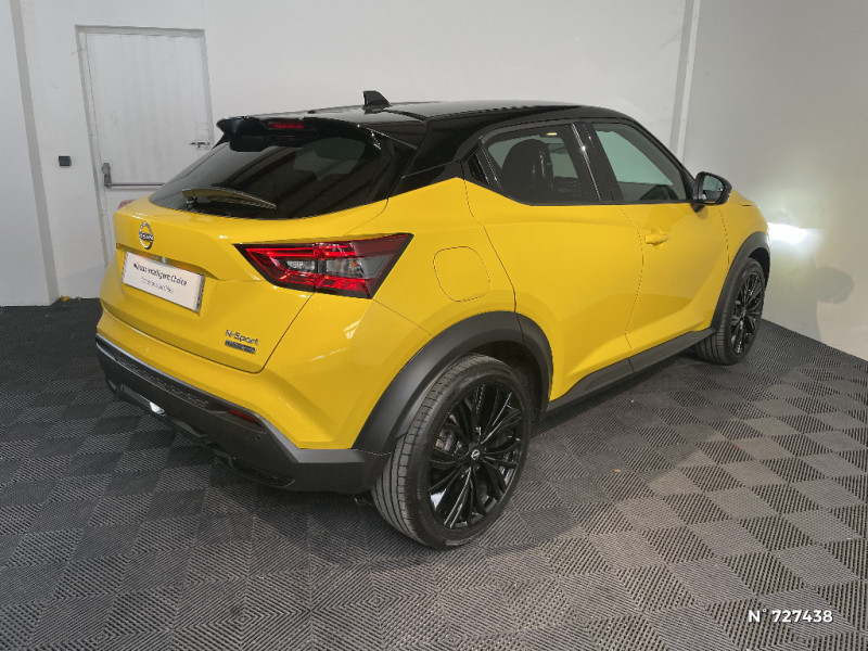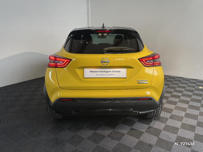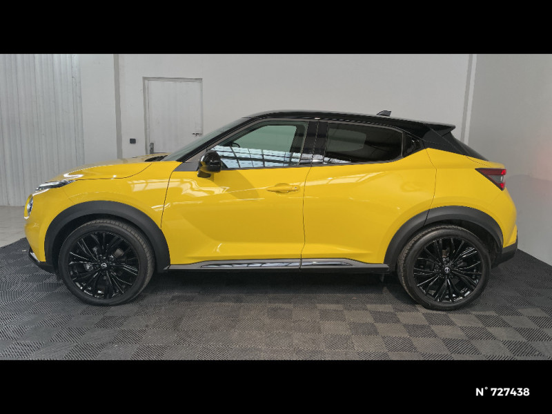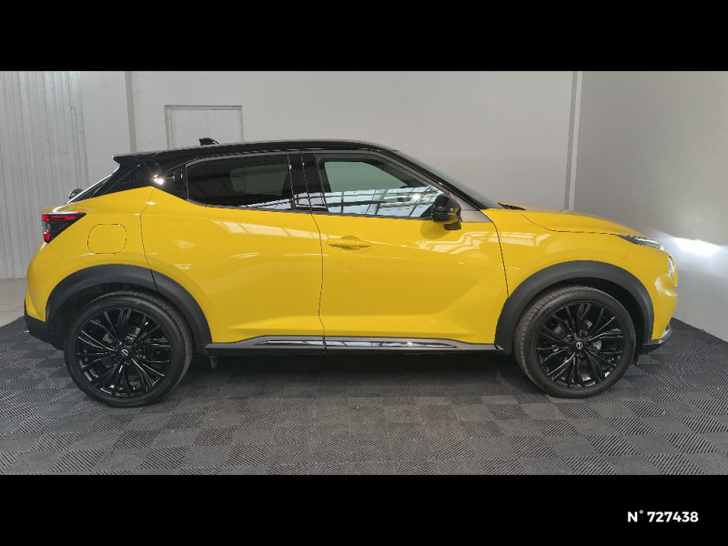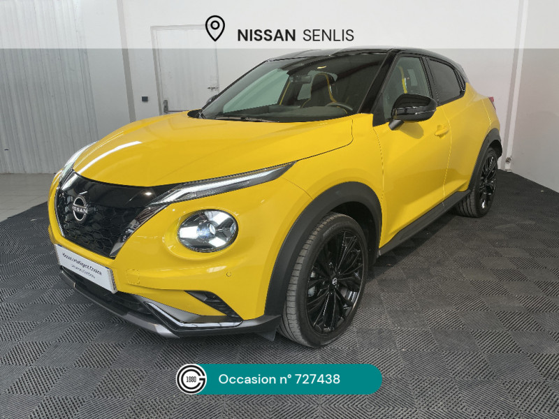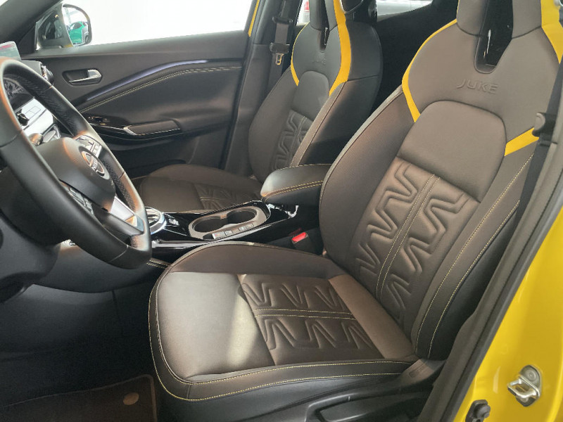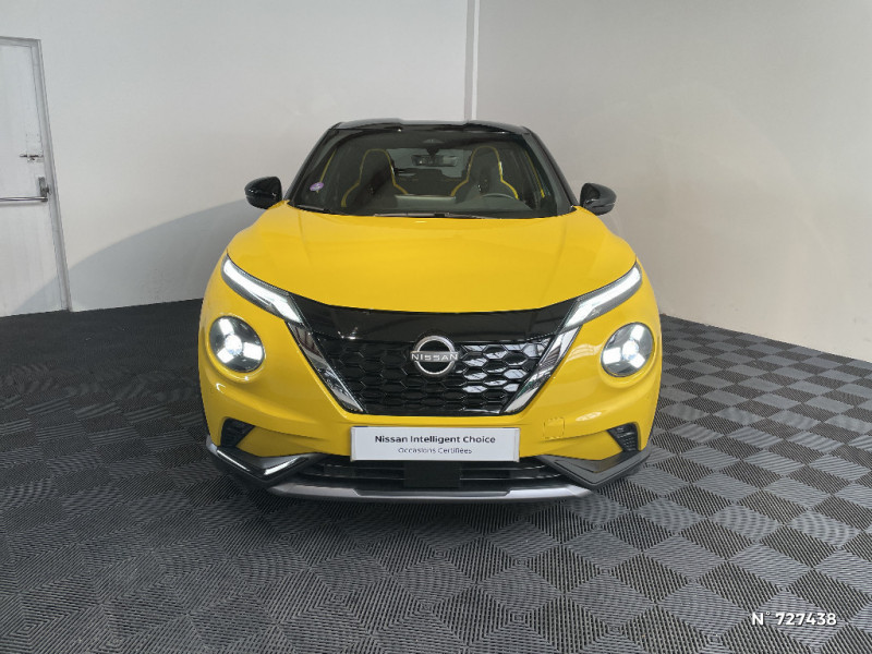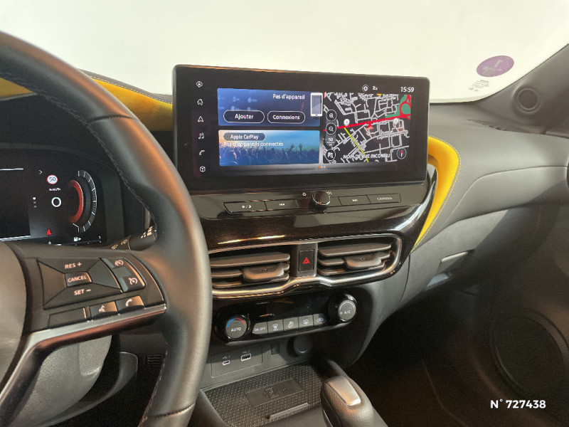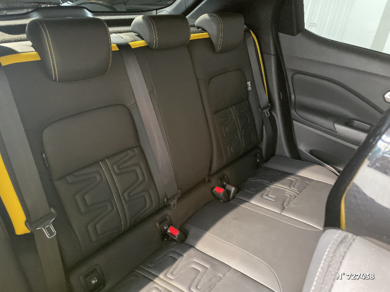 Poignées de maintien passager AV / Poignées de portes couleur carrosserie / Poignées intérieures d'ouverture de porte chromées / Points d'ancrage pour sièges enfants ISOFIX à l'AR / Pommeau de levier de vitesse cuir / Porte-cartes intégré au pare-soleil côté conducteur / Porte-gobelets (x2) / Repose-genoux en TEP noir / Rétroviseur intérieur électrochromatique / Sélection du mode de conduite (ECO, STANDARD et SPORT) / Sellerie TEP Noir / Alcantara Jaune / Surpiqûres Jaune (matériaux partiellement recyclés) / Sièges AV avec appuis-tête intégrés / Spoiler AR / Système audio Bose Personal Plus avec 10 HP 6 HP AV et côtés), 4 HP intégrés à l'appui-tête conducteur et passager AV, Réglage de l'immersion sonore / Système audio radio avec écran tactile 12,3" et reconnaissance vocale / Système "Chassis Control" : Intelligent Trace Control (contrôle actif de trajectoire) et Intelligent Ride Control (Contrôle actif de l'assiette) / Système de navigation NissanConnect avec écran tactile 12,3" : Live Traffic et cartes 3D, Navigation porte-à-porte, Recherche par Points d'Intérêt, Google Street View, Vue Satellite et Météo, Mise à jour des cartes et logiciels, Prix des carburants, Commandes vocales avancées avec Amazon Alexa / Système d'ouverture et de démarrage sans clé "Intelligent key" avec fonction de verrouillage/ déverrouillage à l'approche du véhicule / Vitres AV/AR électriques avec mode impulsionnel côté conducteur et passager / Volant gainé de cuir synthétique / ABS (système antiblocage des freins) / Alarme périmétrique / Antenne aileron de requin Noir / Bacs de rangement dans les contre-portes AV avec porte-bouteilles / Boîte de vitesses automatique 4 rapports / Bouton d'accès rapide aux réglages des aides à la conduite / Bouton de démarrage Start/Stop / Caméra de recul avec radars de stationnement AV et AR / Ceintures de sécurité AV ajustables en hauteur / Chargeur à induction pour Smartphone / Ciel de toit Noir / Clignotants à trois clignotements / Double port USB AV (USB-A et USB-C) / Eclairage d'accompagnement automatique / Eclairage d'ambiance (contre-portes et levier de vitesses) / Eclairage du coffre / e-Pedal Step / Feux de détresse à déclenchement automatique / Feux de route adaptatifs / Frein à main électrique avec aide au stationnement/démarrage et fonction Autohold / Freinage d'urgence AR intelligent avec détection piéton et cyclistes / Indicateur de changement de rapport / Jantes alliage 19" Akari noires / Kit de réparation pneumatique / Liseuses AV et AR / NBAS (amplificateur de freinage d'urgence) / NissanConnect Services - Services télématiques avec accès à distance depuis un smartphone Service de commandes à distance, Géolocalisation du véhicule, Historique de conduite et de navigation, Rapports sur l'état de santé du véhicule et alertes de dysfonctionnement, Rappel des pas d'entretien, Aide et assistance Nissan, Point d'accès Wi-Fi / Pack Extérieur N-Sport Toit et rétroviseurs Noir ou Gris, Baguettes latérales, inserts de boucliers AV et AR Noir, Lame de pare-chocs AV Gris satiné / Pack Intérieur Exclusif Icon Sellerie TEP Noir / Alcantara Jaune / Surpiqûres Jaune (matériaux partiellement recyclés) Tableau de bord, Contre-portes, Accoudoir central / Pare-soleil côté conducteur et passager avec miroir de courtoisie / Plancher de coffre modulable / Poche aumônière au dos des sièges conducteur et passager / Combiné d'instrumentation digital 12,3'' / Commandes au volant: contrôle de l'ordinateur de bord, audio, téléphone, régulateur et limiteur de vitesse / Commandes vocales / Contrôle de la traction (TCS) / Direction assistée asservie à la vitesse / Double port USB AR (USB-A et USB-C)