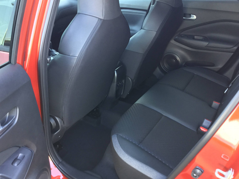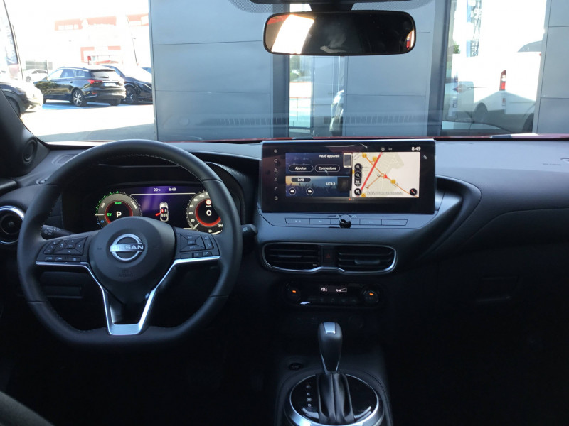 6 HP (AV, portes AV et portes AR) / ABS (système antiblocage des freins) / Alarme périmétrique / Antenne aileron de requin Noir / Bacs de rangement dans les contre-portes AV avec porte-bouteilles / Boîte de vitesses automatique 4 rapports / Bouton d'accès rapide aux réglages des aides à la conduite / Bouton de démarrage Start/Stop / Caméra de recul avec radars de stationnement AV et AR / Ceintures de sécurité AV ajustables en hauteur / Chargeur à induction pour Smartphone / Ciel de toit Noir / Clignotants à trois clignotements / Combiné d'instrumentation digital 12,3'' / Commandes au volant: contrôle de l'ordinateur de bord, audio, téléphone, régulateur et limiteur de vitesse / Contre-portes et tableau de bord en TEP noir / Direction assistée asservie à la vitesse / Double port USB AR (USB-A et USB-C) / Double port USB AV (USB-A et USB-C) / Eclairage d'accompagnement automatique / Eclairage du coffre / e-Pedal Step / Feux de détresse à déclenchement automatique / Feux de route adaptatifs / Freinage d'urgence AR intelligent avec détection piéton et cyclistes / Indicateur de changement de rapport / Kit de réparation pneumatique / Liseuses AV et AR / NBAS (amplificateur de freinage d'urgence) / Pare-soleil côté conducteur et passager avec miroir de courtoisie / Peinture opaque / Poignées de maintien pour passager AV et AR / Poignées de portes couleur carrosserie / Poignées intérieures d'ouverture de porte chromées / Points d'ancrage pour sièges enfants ISOFIX à l'AR / Pommeau de levier de vitesse cuir / Porte-cartes intégré au pare-soleil côté conducteur / Porte-gobelets (x2) / Repose-genoux en TEP noir / Rétroviseur intérieur électrochromatique / Sélection du mode de conduite (ECO, STANDARD et SPORT) / Sellerie Mixte TEP/Tissu Noir / Sièges AV avec appuis-tête intégrés / Spoiler AR / Système audio radio avec écran tactile 12,3" et reconnaissance vocale / Système "Chassis Control" : Intelligent Trace Control (contrôle actif de trajectoire) et Intelligent Ride Control (Contrôle actif de l'assiette) / Système de navigation NissanConnect avec écran tactile 12,3" : Live Traffic et cartes 3D, Navigation porte-à-porte, Recherche par Points d'Intérêt, Google Street View, Vue Satellite et Météo, Mise à jour des cartes et logiciels, Prix des carburants, Commandes vocales avancées avec Amazon Alexa® / Système d'ouverture et de démarrage sans clé "Intelligent key" avec fonction de verrouillage/ déverrouillage à l'approche du véhicule / Vitres AV/AR électriques avec mode impulsionnel côté conducteur et passager / Volant gainé de cuir synthétique