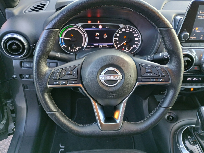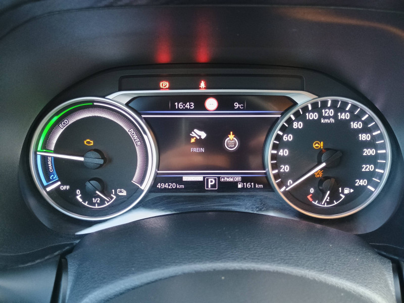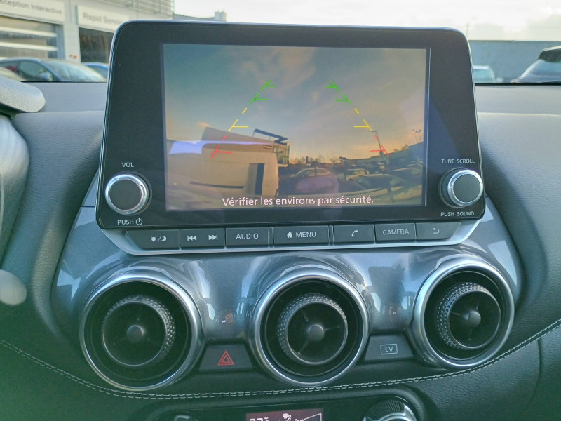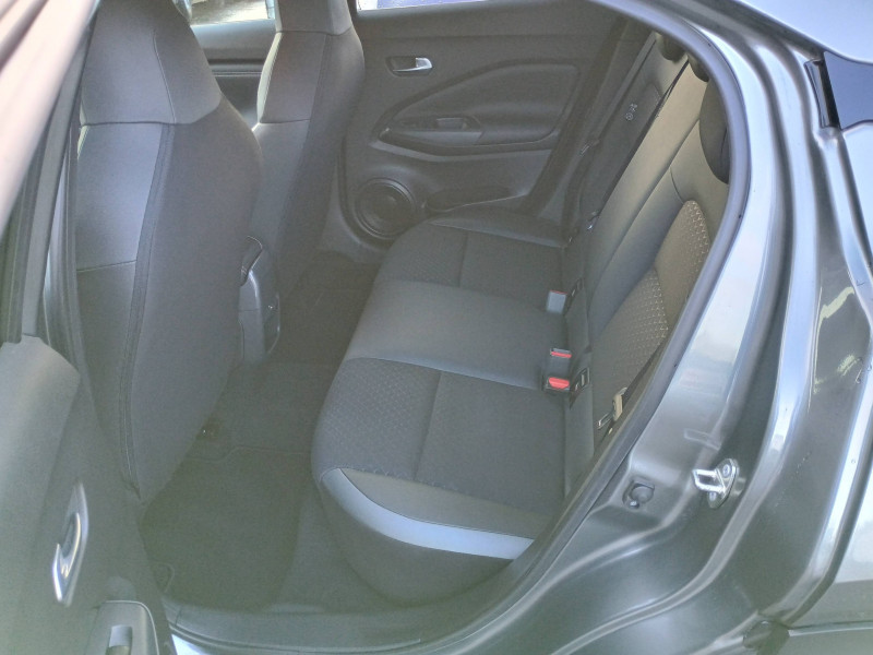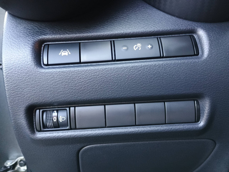 6 HP / ABS et EBD / Alarme périmétrique / Antenne aileron de requin Noir / Bacs de rangement dans les contre-portes AV avec porte-bouteilles / Bluetooth+USB+AUX+12V / Caméra de recul avec radars de stationnement AV et AR / Ceintures de sécurité AV ajustables en hauteur / Ciel de toit Noir / Clignotants à trois clignotements / Combiné d'instrumentation avec écran LCD-TFT 7'' / Commandes au volant: contrôle de l'ordinateur de bord, audio, téléphone, régulateur et limiteur de vitesse / Contre-portes et tableau de bord en TEP noir / Direction assistée asservie à la vitesse / Eclairage du coffre / Feux de détresse à déclenchement automatique / Feux de route adaptatifs / Feux diurnes LED avec système Follow Me Home / Fonction des feux avant "Follow me Home" / Freinage d'urgence intelligent (AEB) avec détection piéton et cyclistes / Frein à main électrique avec aide au stationnement/démarrage et fonction Autohold / Indicateur de changement de rapport / Kit de réparation pneumatique / Liseuses AV et AR / NBAS (amplificateur de freinage d'urgence) / Nissan Connect Services / Pare-soleil côtés conducteur et passager avec miroir de courtoisie / Plancher de coffre modulable / Poignées de maintien pour passager AV et AR / Poignées de porte extérieures couleur carrosserie / Poignées intérieures d'ouverture de porte chromées / Points d'accès Wi-Fi / Points d'ancrage pour sièges enfants ISOFIX à l'AR / Pommeau de levier de vitesse gainé de cuir / Porte-cartes intégré au pare-soleil côté conducteur / Porte-gobelets (x2) / Repose-genoux en TEP / Rétroviseur intérieur électrochromatique / Sélection du mode de conduite (ECO, STANDARD et SPORT) / Sellerie mixte TEP / Tissu / Sièges AV monoform style / Spoiler AR / Système audio radio avec écran tactile 8" avec interface personnalisable, Apple CarPlay et Android Auto, commandes vocales / Système "Chassis Control" : Intelligent Trace Control (contrôle actif de trajectoire) et Intelligent Ride Control (Contrôle actif de l'assiette) / Vitres AV/AR électriques avec mode impulsionnel côté conducteur /