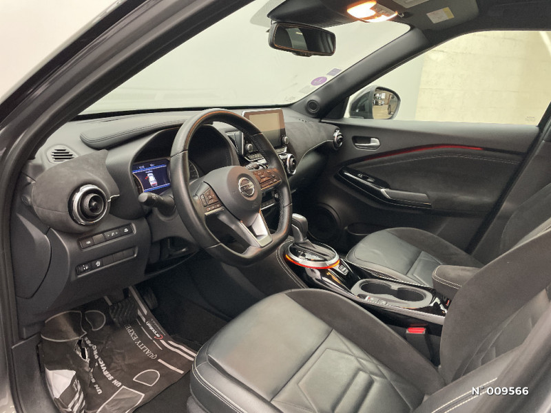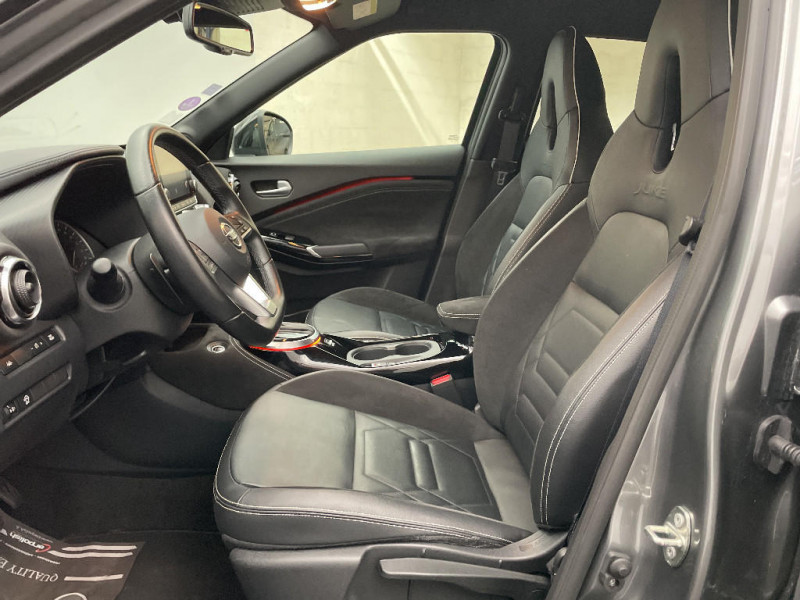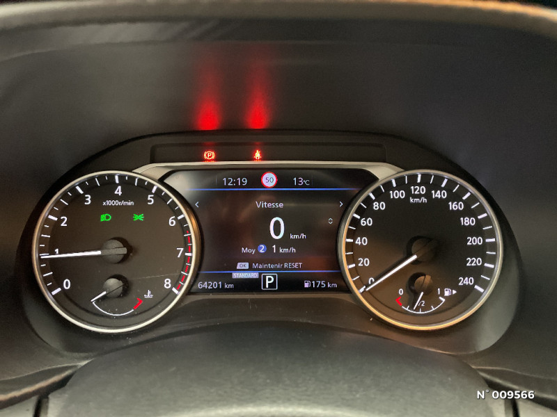 Poche aumônière au dos des sièges AV et accoudoirs AR / Poignées de maintien pour passager AV et AR / ABS et EBD / Reconnaissance vocale / Repose-genoux en TEP / Rétroviseur intérieur électrochromatique / Sélection du mode de conduite (ECO, STANDARD et SPORT) / Sellerie Perso Noir, Orange ou Blanc / Sièges AV monoform style / Spoiler AR / Système audio radio avec écran tactile 8" avec interface personnalisable, Apple CarPlay et Android Auto, commandes vocales / Poignées de porte extérieures couleur carrosserie / Poignées intérieures d'ouverture de porte chromées / Vitres AV/AR électriques avec mode impulsionnel côté conducteur / 6 HP / Points d'accès Wi-Fi / Points d'ancrage pour sièges enfants ISOFIX à l'AR / Pommeau de levier de vitesse gainé de cuir / Porte-cartes intégré au pare-soleil côté conducteur / Freinage d'urgence intelligent (AEB) avec détection piéton et cyclistes / Porte-gobelets (x2) / Alarme périmétrique / Bacs de rangement dans les contre-portes AV avec porte-bouteilles / Bluetooth+USB+AUX+12V / Ceintures de sécurité AV ajustables en hauteur / Ciel de toit Noir / Clignotants à trois clignotements / Combiné d'instrumentation avec écran LCD-TFT 7'' / Commandes au volant: contrôle de l'ordinateur de bord, audio, téléphone, régulateur et limiteur de vitesse / Contre-portes et tableau de bord spécifiques / Direction assistée asservie à la vitesse / Eclairage d'ambiance (contre-portes et levier de vitesses) / Eclairage du coffre / e-Pedal Step / Feux de détresse à déclenchement automatique / Feux de route adaptatifs / Feux diurnes LED avec système Follow Me Home / Système "Chassis Control" : Intelligent Trace Control (contrôle actif de trajectoire) et Intelligent Ride Control (Contrôle actif de l'assiette) / Fonction des feux avant "Follow me Home" / Frein à main électrique avec aide au stationnement/démarrage et fonction Autohold / Indicateur de changement de rapport / Kit de réparation pneumatique / Liseuses AV et AR / NBAS (amplificateur de freinage d'urgence) / Nissan Connect Services / Pack Extérieur Noir Métallisé, Rouge Fuji ou Gris Perle / Pack Intérieur Noir, Orange ou Blanc / Pare-brise chauffant / Pare-soleil côtés conducteur et passager avec miroir de courtoisie / Plancher de coffre modulable