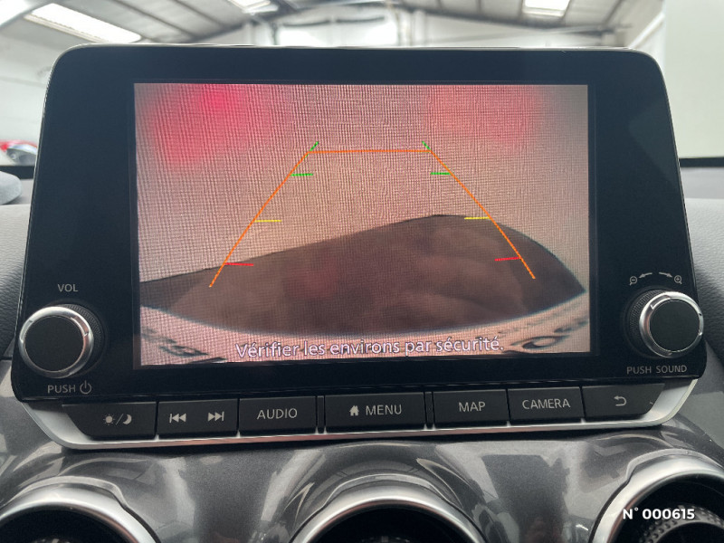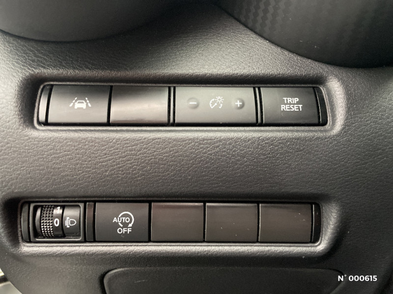 Vitres AV/AR électriques avec mode impulsionnel côté conducteur / Wi-Fi (service payant) et reconnaissance vocale / 6 HP / ABS (Système antiblocage des freins) avec EBD (Répartiteur électronique de freinage) / Antenne aileron de requin Noir Métallisé / Bacs de rangement dans les contre-portes AV avec porte-bouteilles / Bluetooth+USB+AUX+12V / Cache-bagages amovible / Ceintures de sécurité AV ajustables en hauteur / Clignotants à trois clignotements / Combiné d'instrumentation avec écran HD TFT 7" couleur / Commandes au volant: contrôle de l'ordinateur de bord, audio, téléphone, régulateur et limiteur de vitesse / Contre-portes et tableau de bord en TEP gris / Direction assistée asservie à la vitesse / Eclairage d'ambiance (contre-portes et levier de vitesses) / Eclairage du coffre / Feux de détresse à déclenchement automatique / Feux de route adaptatifs / Feux diurnes LED avec système Follow Me Home / Fonction des feux avant "Follow me Home" / Frein à main électrique avec aide au stationnement/démarrage et fonction Autohold / Freinage d'urgence intelligent (AEB) avec détection piéton et cyclistes / Indicateur de changement de vitesses / Kit de réparation pneumatique / Liseuses AV et AR / NBAS (amplificateur de freinage d'urgence) / Nissan Connect Services / Pare-soleil côté conducteur et passager avec miroir de courtoisie éclairé / Poche aumônière au dos du siège conducteur / Poignées de maintien passager AV / Poignées de maintien pour les passagers AR. / Poignées de portes couleur carrosserie / Poignées de portes intérieures finition chrome / Points d'ancrage pour sièges enfants ISOFIX à l'AR / Pommeau de levier de vitesse cuir / Porte-cartes intégré au pare-soleil côté conducteur / Porte-gobelets (x2) / Repose-genoux en TEP (Tissu Enduit) / Rétroviseur intérieur électrochromatique / Rétroviseurs extérieurs noirs Métallisé / Sélection du mode de conduite (ECO, STANDARD et SPORT) / Sellerie tissu noir avec surpiqûres gris / Sièges AV monoform style / Spoiler AR / Système audio radio avec écran tactile 8" avec interface personnalisable, Apple CarPlay et Android Auto, commandes vocales / Système "Chassis Control" : Intelligent Trace Control (contrôle actif de trajectoire) et Intelligent Ride Control (Contrôle actif de l'assiette)