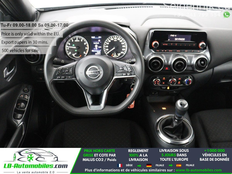 Référence : 1213055 Vos Avantages chez LB-AUTOMOBILES.com / Prix affiché TTC Livré hors carte grise / Livraison sous 10 jours dans toute la France hors 31 / Pas d?avance de frais paiement du véhicule 100% à la livraison par virement. Nissan Juke Neuf remisée, Nissan Juke Occasion Toulouse Beaupuy 31850, Nissan Juke Véhicule sorti de réseau collaborateur, Nissan Juke import, Nissan Juke importateur, Nissan Juke Livraison possible dans toute la France sous 5 jours, Nissan Juke, Nissan Juke Location Option Achat, Nissan Juke LLD, Nissan Juke Longue Durée, Nissan Juke TVA récupérable. Possibilité d'extension de garantie 12, 24,36 mois, Pour tout autres voitures import neufs ou occasions collaborateur fortement remisée, Mandataire Audi, Mandataire BMW, Mandataire Volkswagen, Mandataire Mercedes, Mandataire Peugeot Espagne, Mandataire Renault Espagne, Porsche import, Mandataire Citroën Espagne, Mandataire Seat Espagne, n'hésitez pas à nous contacter. « Sous réserve de vente préalable et erreur de saisie » Principaux équipements : - ABS - Antidémarrage - Assistance au freinage d'urgence - Assistance de démarrage en côte - Assistant feux de route - Attache remorque fixe - Avertisseur de franchissement de ligne - Bluetooth - Capteur de lumière - Carnet d'entretien - Commande vocale - Contrôle de la pression des pneus - Direction assistée - ESP - Fermeture centralisée - Feux de jour LED - Ordinateur de bord - Phares LED - Radio DAB - Régulateur de vitesse - Rétroviseur extérieur électrique - Système antipatinage - Système d'alarme - Système de reconnaissance des panneaux de signalisation - Système Stop & Start - Traction avant - Tuner/radio - Vitres électriques - Volant multifonction