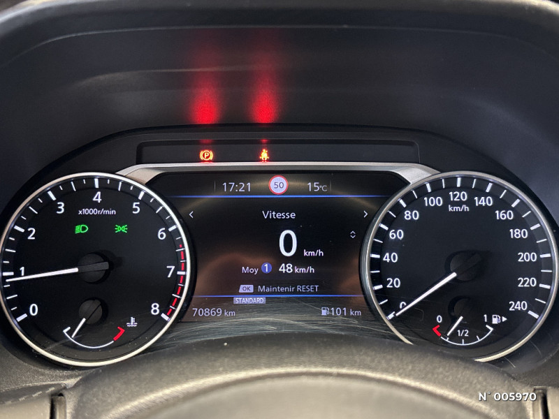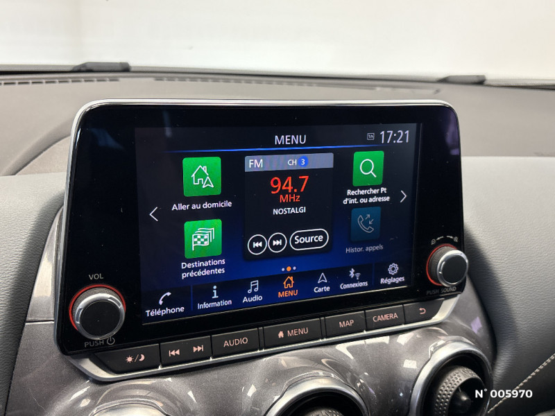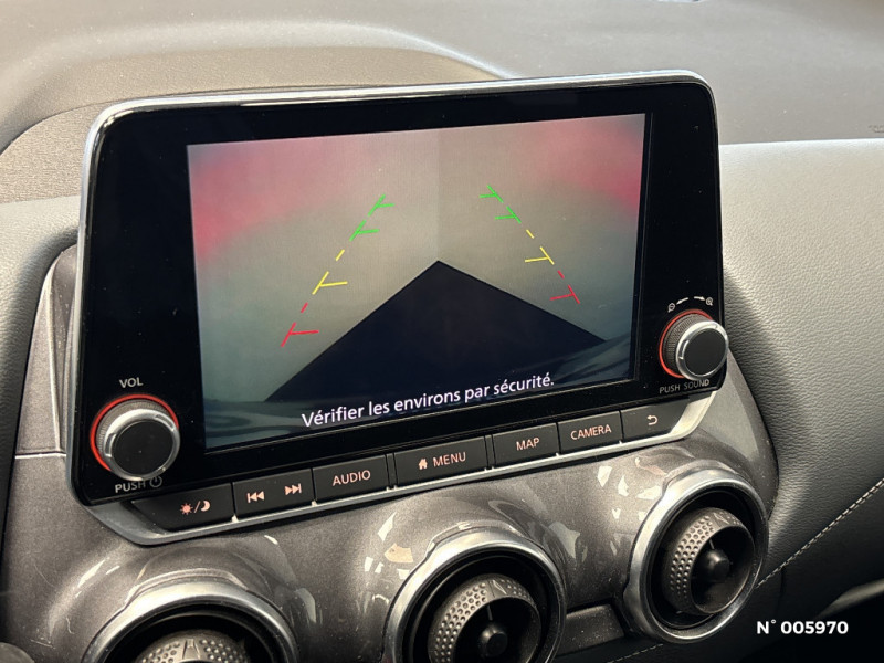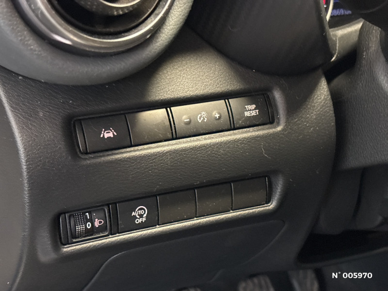 Antenne aileron de requin Noir / Bacs de rangement dans les contre-portes AV avec porte-bouteilles / Bluetooth+USB+AUX+12V / Ceintures de sécurité AV ajustables en hauteur / Ciel de toit Noir / Clignotants à trois clignotements / ABS et EBD / Combiné d'instrumentation avec écran LCD-TFT 7'' / Alarme périmétrique / Vitres AV/AR électriques avec mode impulsionnel côté conducteur / 6 HP / Commandes au volant: contrôle de l'ordinateur de bord, audio, téléphone, régulateur et limiteur de vitesse / Contre-portes et tableau de bord en TEP gris / Direction assistée asservie à la vitesse / Eclairage du coffre / Spoiler AR / Système audio radio avec écran tactile 8" avec interface personnalisable, Apple CarPlay et Android Auto, commandes vocales / Système "Chassis Control" : Intelligent Trace Control (contrôle actif de trajectoire) et Intelligent Ride Control (Contrôle actif de l'assiette) / Feux de détresse à déclenchement automatique / Feux de route adaptatifs / Feux diurnes LED avec système Follow Me Home / Fonction des feux avant "Follow me Home" / Frein à main électrique avec aide au stationnement/démarrage et fonction Autohold / Freinage d'urgence intelligent (AEB) avec détection piéton et cyclistes / Indicateur de changement de rapport / Kit de réparation pneumatique / Liseuses AV et AR / NBAS (amplificateur de freinage d'urgence) / Nissan Connect Services / Pare-soleil côtés conducteur et passager avec miroir de courtoisie / Plancher de coffre modulable / Poignées de maintien pour passager AV et AR / Poignées de porte extérieures couleur carrosserie / Poignées intérieures d'ouverture de porte chromées / Points d'accès Wi-Fi / Points d'ancrage pour sièges enfants ISOFIX à l'AR / Pommeau de levier de vitesse gainé de cuir / Porte-cartes intégré au pare-soleil côté conducteur / Porte-gobelets (x2) / Reconnaissance vocale / Repose-genoux en TEP / Rétroviseur intérieur électrochromatique / Sélection du mode de conduite (ECO, STANDARD et SPORT) / Sellerie Tissu Noir avec surpiqûres grises / Sièges AV monoform style