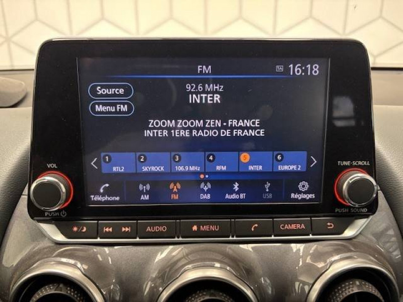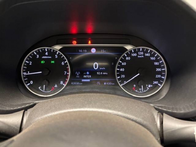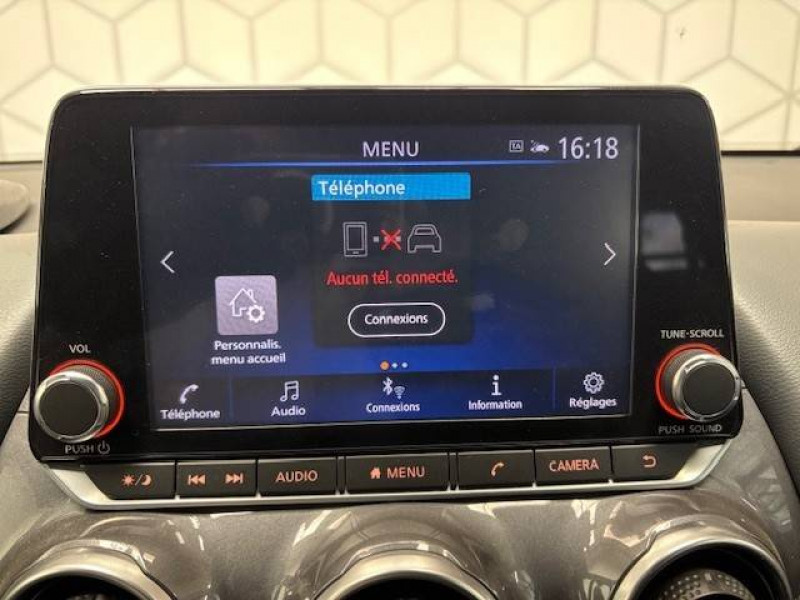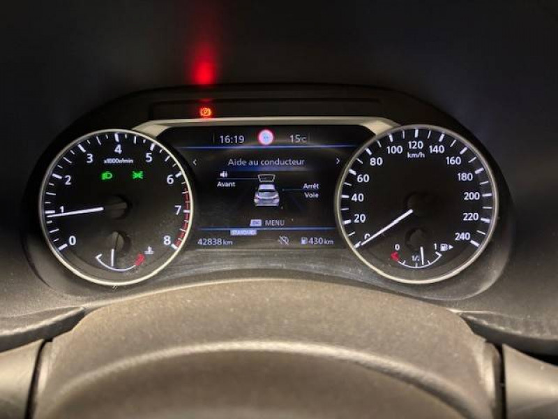 6 HP / ABS (Système antiblocage des freins) avec EBD (Répartiteur électronique de freinage) / Antenne aileron de requin Noir Métallisé / Bacs de rangement dans les contre-portes AV avec porte-bouteilles / Bluetooth+USB+AUX+12V / Cache-bagages amovible / Ceintures de sécurité AV ajustables en hauteur / Clignotants à trois clignotements / Combiné d'instrumentation avec écran HD TFT 7" couleur / Commandes au volant: contrôle de l'ordinateur de bord, audio, téléphone, régulateur et limiteur de vitesse / Contre-portes et tableau de bord en TEP gris / Direction assistée asservie à la vitesse / Eclairage d'ambiance (contre-portes et levier de vitesses) / Eclairage du coffre / Feux de détresse à déclenchement automatique / Feux de route adaptatifs / Feux diurnes LED avec système Follow Me Home / Fonction des feux avant "Follow me Home" / Freinage d'urgence intelligent (AEB) avec détection piéton et cyclistes / Frein à main électrique avec aide au stationnement/démarrage et fonction Autohold / Indicateur de changement de vitesses / Kit de réparation pneumatique / Liseuses AV et AR / NBAS (amplificateur de freinage d'urgence) / Nissan Connect Services / Pare-soleil côté conducteur et passager avec miroir de courtoisie éclairé / Poche aumônière au dos du siège conducteur / Poignées de maintien passager AV / Poignées de maintien pour les passagers AR. / Poignées de portes couleur carrosserie / Poignées de portes intérieures finition chrome / Points d'ancrage pour sièges enfants ISOFIX à l'AR / Pommeau de levier de vitesse cuir / Porte-cartes intégré au pare-soleil côté conducteur / Porte-gobelets (x2) / Repose-genoux en TEP (Tissu Enduit) / Rétroviseur intérieur électrochromatique / Rétroviseurs extérieurs noirs Métallisé / Sélection du mode de conduite (ECO, STANDARD et SPORT) / Sellerie tissu noir avec surpiqûres gris / Sièges AV monoform style / Spoiler AR / Système audio radio avec écran tactile 8" avec interface personnalisable, Apple CarPlay et Android Auto, commandes vocales / Système "Chassis Control" : Intelligent Trace Control (contrôle actif de trajectoire) et Intelligent Ride Control (Contrôle actif de l'assiette) / Vitres AV/AR électriques avec mode impulsionnel côté conducteur / Wi-Fi (service payant) et reconnaissance vocale