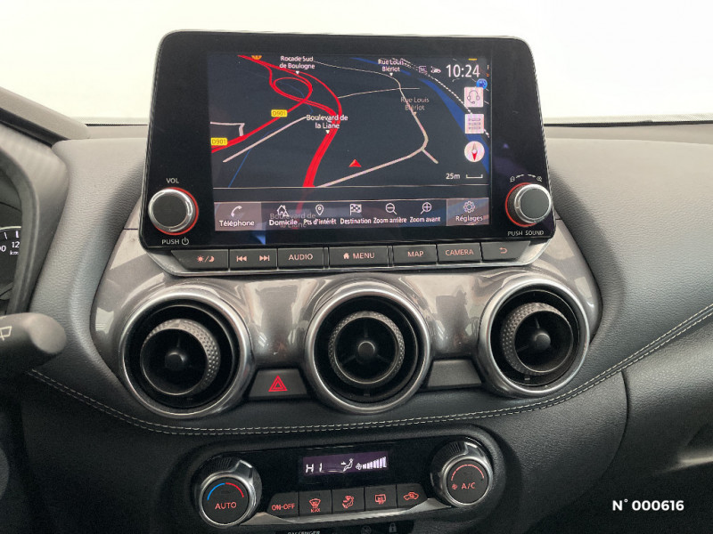 Alarme périmétrique / Antenne aileron de requin Noir / Bacs de rangement dans les contre-portes AV avec porte-bouteilles / Bluetooth+USB+AUX+12V / Ceintures de sécurité AV ajustables en hauteur / Ciel de toit Noir / 6 HP / Clignotants à trois clignotements / Combiné d'instrumentation avec écran LCD-TFT 7'' / Commandes au volant: contrôle de l'ordinateur de bord, audio, téléphone, régulateur et limiteur de vitesse / Contre-portes et tableau de bord en TEP gris / Direction assistée asservie à la vitesse / Eclairage du coffre / Feux de détresse à déclenchement automatique / Feux de route adaptatifs / Feux diurnes LED avec système Follow Me Home / Fonction des feux avant "Follow me Home" / Frein à main électrique avec aide au stationnement/démarrage et fonction Autohold / Freinage d'urgence intelligent (AEB) avec détection piéton et cyclistes / Indicateur de changement de rapport / Kit de réparation pneumatique / Liseuses AV et AR / NBAS (amplificateur de freinage d'urgence) / Nissan Connect Services / Pare-soleil côtés conducteur et passager avec miroir de courtoisie / Plancher de coffre modulable / Poignées de maintien pour passager AV et AR / Poignées de porte extérieures couleur carrosserie / Poignées intérieures d'ouverture de porte chromées / Points d'accès Wi-Fi / Points d'ancrage pour sièges enfants ISOFIX à l'AR / Pommeau de levier de vitesse gainé de cuir / Porte-cartes intégré au pare-soleil côté conducteur / Porte-gobelets (x2) / Reconnaissance vocale / Repose-genoux en TEP / Rétroviseur intérieur électrochromatique / Sélection du mode de conduite (ECO, STANDARD et SPORT) / Sellerie Tissu Noir avec surpiqûres grises / Sièges AV monoform style / Spoiler AR / Système audio radio avec écran tactile 8" avec interface personnalisable, Apple CarPlay et Android Auto, commandes vocales / Système "Chassis Control" : Intelligent Trace Control (contrôle actif de trajectoire) et Intelligent Ride Control (Contrôle actif de l'assiette) / Vitres AV/AR électriques avec mode impulsionnel côté conducteur / ABS et EBD