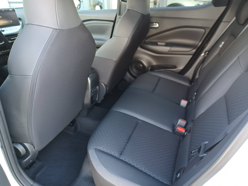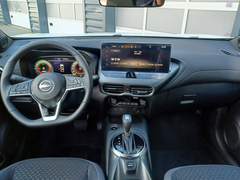 6 HP (AV, portes AV et portes AR) / ABS (système antiblocage des freins) / Alarme périmétrique / Antenne aileron de requin Noir / Bacs de rangement dans les contre-portes AV avec porte-bouteilles / Boîte de vitesses automatique 4 rapports / Bouton d'accès rapide aux réglages des aides à la conduite / Bouton de démarrage Start/Stop / Caméra de recul avec radars de stationnement AV et AR / Ceintures de sécurité AV ajustables en hauteur / Chargeur à induction pour Smartphone / Ciel de toit Noir / Clignotants à trois clignotements / Combiné d'instrumentation digital 12,3'' / Commandes au volant: contrôle de l'ordinateur de bord, audio, téléphone, régulateur et limiteur de vitesse / Contre-portes et tableau de bord en TEP noir / Direction assistée asservie à la vitesse / Double port USB AR (USB-A et USB-C) / Double port USB AV (USB-A et USB-C) / Eclairage d'accompagnement automatique / Eclairage du coffre / e-Pedal Step / Feux de détresse à déclenchement automatique / Feux de route adaptatifs / Freinage d'urgence AR intelligent avec détection piéton et cyclistes / Indicateur de changement de rapport / Kit de réparation pneumatique / Liseuses AV et AR / NBAS (amplificateur de freinage d'urgence) / Pare-soleil côté conducteur et passager avec miroir de courtoisie / Poignées de maintien pour passager AV et AR / Poignées de portes couleur carrosserie / Poignées intérieures d'ouverture de porte chromées / Points d'ancrage pour sièges enfants ISOFIX à l'AR / Pommeau de levier de vitesse cuir / Porte-cartes intégré au pare-soleil côté conducteur / Porte-gobelets (x2) / Repose-genoux en TEP noir / Rétroviseur intérieur électrochromatique / Sélection du mode de conduite (ECO, STANDARD et SPORT) / Sellerie Mixte TEP/Tissu Noir / Sièges AV avec appuis-tête intégrés / Spoiler AR / Système audio radio avec écran tactile 12,3" et reconnaissance vocale / Système "Chassis Control" : Intelligent Trace Control (contrôle actif de trajectoire) et Intelligent Ride Control (Contrôle actif de l'assiette) / Système de navigation NissanConnect avec écran tactile 12,3" : Live Traffic et cartes 3D, Navigation porte-à-porte, Recherche par Points d'Intérêt, Google Street View, Vue Satellite et Météo, Mise à jour des cartes et logiciels, Prix des carburants, Commandes vocales avancées avec Amazon Alexa® / Système d'ouverture et de démarrage sans clé "Intelligent key" avec fonction de verrouillage/ déverrouillage à l'approche du véhicule / Vitres AV/AR électriques avec mode impulsionnel côté conducteur et passager / Volant gainé de cuir synthétique