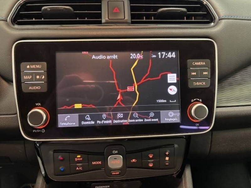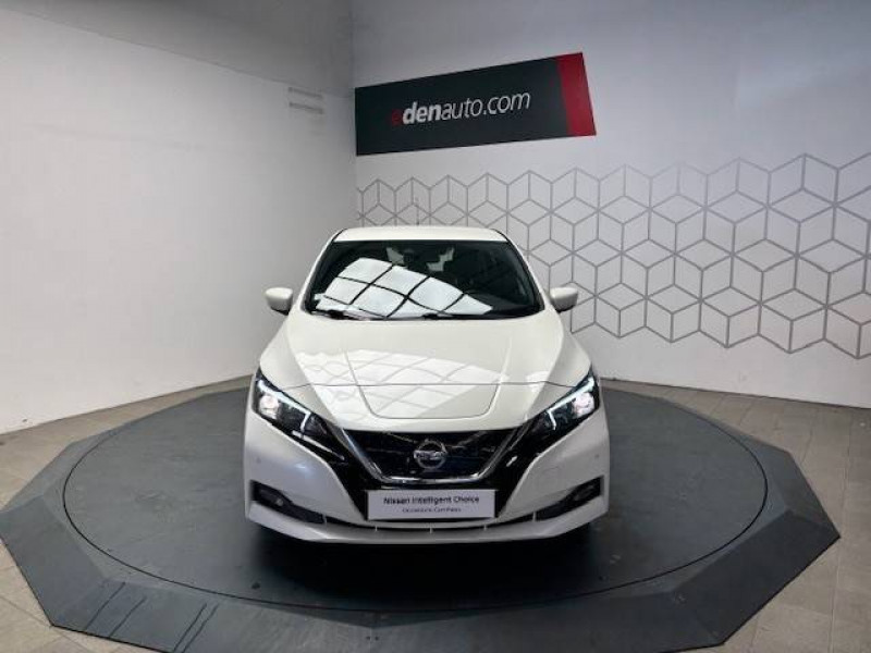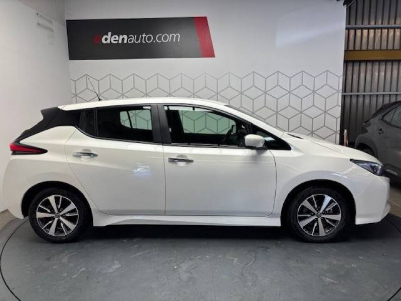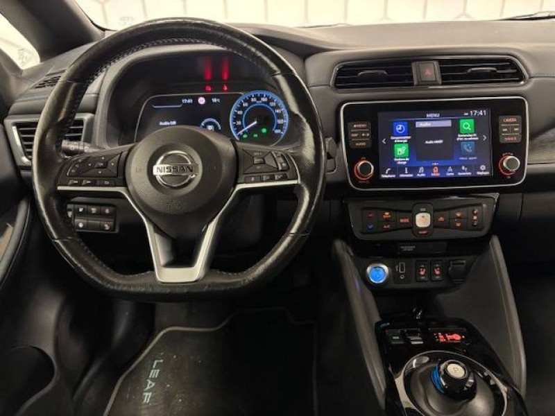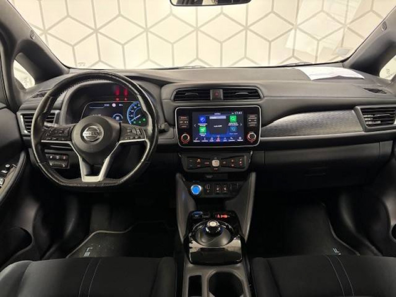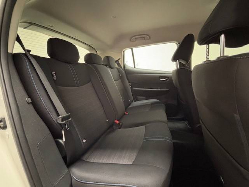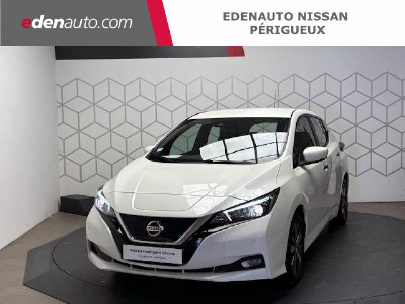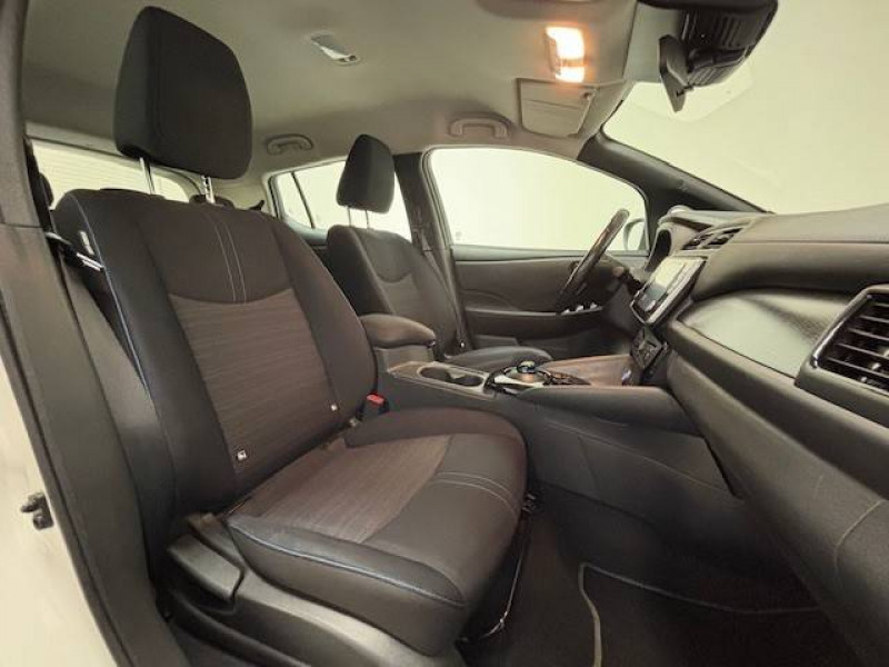 ABS et EBD / Câble 32A de 6m (pour recharge en 7h) / Câble de 6m (pour recharge en 21h) / Chargeur embarqué de 6,6kW (pour recharge en 7h sur une wallbox de 32A) / Combiné d'instrumentation avec écran HD TFT 7" couleur / Connecteur pour chargeur rapide CHAdeMO (recharge à 80% en 40 min) / Déclenchement de la climatisation à distance / Déclenchement de la recharge à distance / Feux diurne LED avec signature lumineuse / Freinage d'urgence intelligent (AEB) avec détection piéton / Nissan Connect 7.0" : Ecran tactile couleur 7,0", Caméra de recul avec repères de gabarit dynamiques Pilotage des services télématiques, Indication des points de charge avec mise à jour automatique, Système de navigation multimédia avec fonction Info Trafic, cartographie Europe 3D, indicateur d'éco-conduite, Système audio Bluetooth® (téléphone et musique), Radio numérique DAB, Connexion smartphone (Apple CarPlay et Android Auto) / Poches aumonières au dos des sièges AV / Poignées de portes chromées / Points d'ancrage pour sièges enfants ISOFIX à l'AR / Pompe à chaleur / Programmation de la recharge / Rétroviseurs extérieurs couleur carrosserie avec clignotant à LED intégré / Sellerie tissu Noir ou Gris Clair / Système audio CD/RDS 6HP avec commandes au volant et connexion USB pour iPod, lecteur MP3 / Système "Chassis Control" (contrôle actif de trajectoire et de l'assiette) / Système d'alerte anticollision AR intelligent / Système d'ouverture et de démarrage sans clé "Intelligent key" / Technologie E-pedal