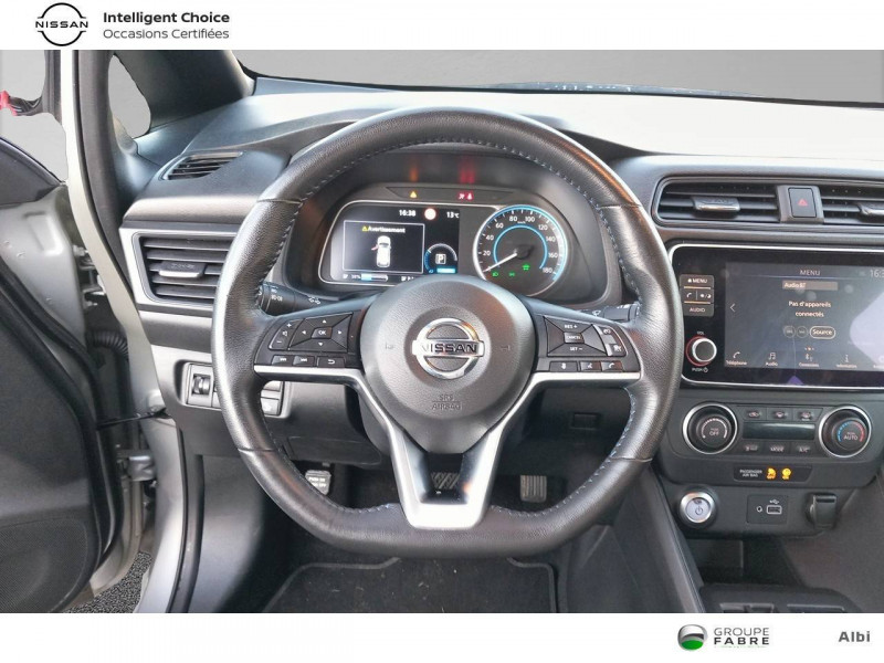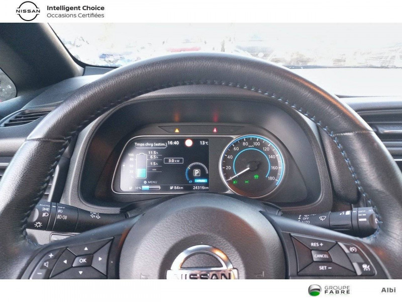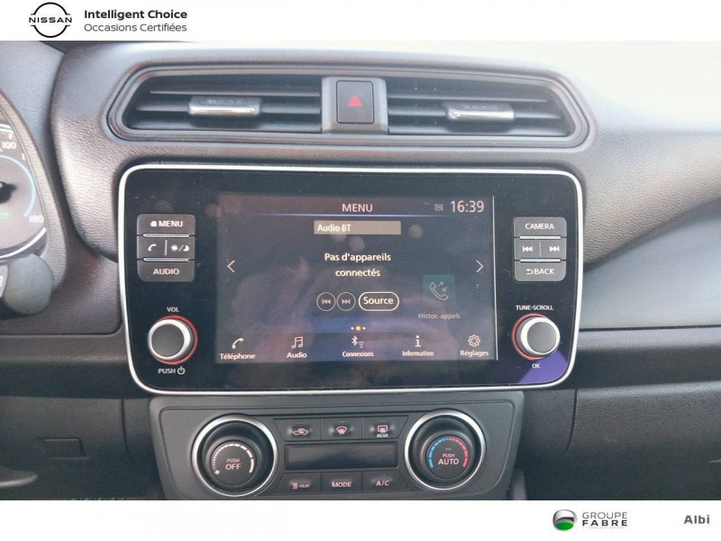 Allumage automatique des feux de détresse en cas d'accident / Allumage automatique des feux de détresse en cas d'accident / Feux AV halogènes avec signature lumineuse à LED / Feux AV halogènes avec signature lumineuse à LED / Feux diurne LED avec signature lumineuse / Feux diurne LED avec signature lumineuse / Pack 100% Mobilité / Pack 100% Mobilité / Rétroviseurs extérieurs couleur carrosserie avec clignotant à LED intégré / Rétroviseurs extérieurs couleur carrosserie avec clignotant à LED intégré / Système de climatisation avec pompe à chaleur / Système de climatisation avec pompe à chaleur / 6 HP / 6 HP / ABS et EBD / ABS et EBD / Chargeur embarqué de 6,6kW (pour recharge en 7h sur une wallbox de 32A) / Chargeur embarqué de 6,6kW (pour recharge en 7h sur une wallbox de 32A) / Combiné d'instrumentation avec écran HD TFT 7" couleur / Combiné d'instrumentation avec écran HD TFT 7" couleur / Commandes au volant (audio, Bluetooth, régulateur et limiteur de vitesses et contrôle de l'ordinate ur de bord) / Commandes au volant (audio, Bluetooth, régulateur et limiteur de vitesses et contrôle de l'ordinate ur de bord) / Contrôle vocal Nissan / Contrôle vocal Nissan / Câble 32A de 6 m (recharge sur borne publique ou Wallbox 7 kW T2 en 7h30 sur 40 kWh ou 11h30 sur 62 kWh) / Câble 32A de 6 m (recharge sur borne publique ou Wallbox 7 kW T2 en 7h30 sur 40 kWh ou 11h30 sur 62 kWh) / Câble de 6 m (recharge sur prise domestique 230V en 21h sur batterie 40 kWh ou 32h sur batterie 62 kWh) / Câble de 6 m (recharge sur prise domestique 230V en 21h sur batterie 40 kWh ou 32h sur batterie 62 kWh) / Eclairage de la trappe de recharge / Eclairage de la trappe de recharge / Extinction temporisé des phares "Follow me home" / Extinction temporisé des phares "Follow me home" / Feux de route intelligents / Feux de route intelligents / Freinage d'urgence intelligent (AEB) avec détection piéton / Freinage d'urgence intelligent (AEB) avec détection piéton / Indicateur de température extérieure / Indicateur de température extérieure / Kit de réparation pneumatique / Kit de réparation pneumatique / Nissan Connect 8.0 / Nissan Connect 8.0 / Nissan Connect Services / Nissan Connect Services / Ouverture de la trappe de recharge depuis la clé / Ouverture de la trappe de recharge depuis la clé / Pare-soleil côté conducteur et passager avec miroir de courtoisie / Pare-soleil côté conducteur et passager avec miroir de courtoisie / Poches aumonières au dos des sièges AV / Poches aumonières au dos des sièges AV / Poignées de portes chromées / Poignées de portes chromées / Points d'ancrage de siège enfant ISOFIX à l'AV et 2 à l'AR / Points d'ancrage de siège enfant ISOFIX à l'AV et 2 à l'AR / Port CHAdeMO pour chargeur rapide 50 kW (recharge de 20% à 80% en 60 min sur 40 kWh ou 90 min sur 62 kWh) / Port CHAdeMO pour chargeur rapide 50 kW (recharge de 20% à 80% en 60 min sur 40 kWh ou 90 min sur 62 kWh) / Port USB à l'AV (x1) et l'AR (x2) / Port USB à l'AV (x1) et l'AR (x2) / Prise 12V sur console centrale AV / Prise 12V sur console centrale AV / Prise auxiliaire Jack 3,5 mm / Prise auxiliaire Jack 3,5 mm / Programmation de la recharge / Programmation de la recharge / Son d'alerte pour piétons désactivable / Son d'alerte pour piétons désactivable / Surveillance des angles morts incluant voyant lumineux sur rétroviseurs extérieurs / Surveillance des angles morts incluant voyant lumineux sur rétroviseurs extérieurs / Système "Chassis Control" (contrôle actif de trajectoire et de l'assiette) / Système "Chassis Control" (contrôle actif de trajectoire et de l'assiette) / Système audio Bluetooth, AM/FM, RDS, DAB, MP3, USB (sans CD) / Système audio Bluetooth, AM/FM, RDS, DAB, MP3, USB (sans CD) / Système d'alerte anticollision AR intelligent / Système d'alerte anticollision AR intelligent / Système d'ouverture et de démarrage sans clé "Intelligent key" / Système d'ouverture et de démarrage sans clé "Intelligent key" / Sécurité enfants sur les portes AR / Sécurité enfants sur les portes AR / Technologie E-pedal / Technologie E-pedal / Trois appuis-tête aux places AR / Trois appuis-tête aux places AR