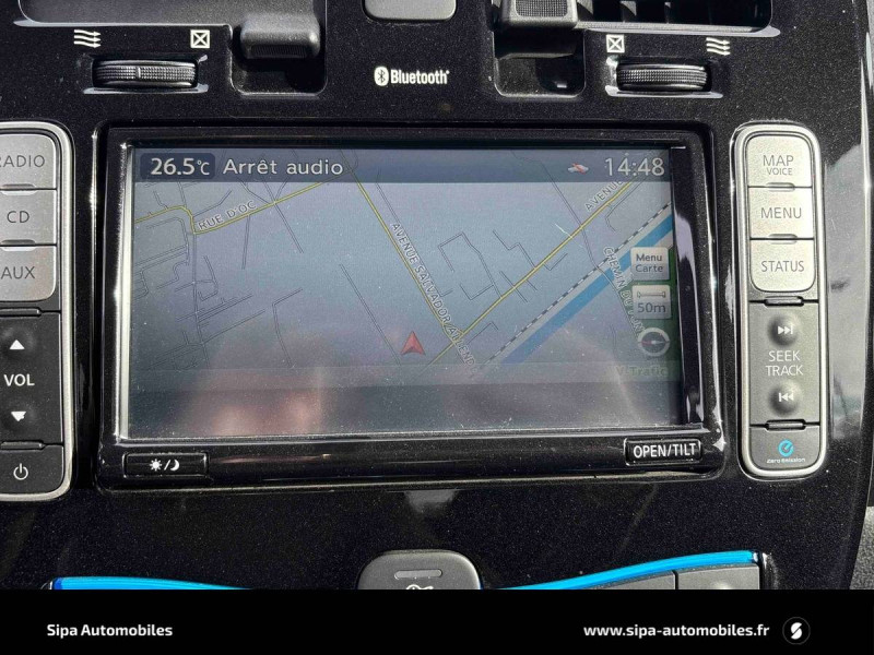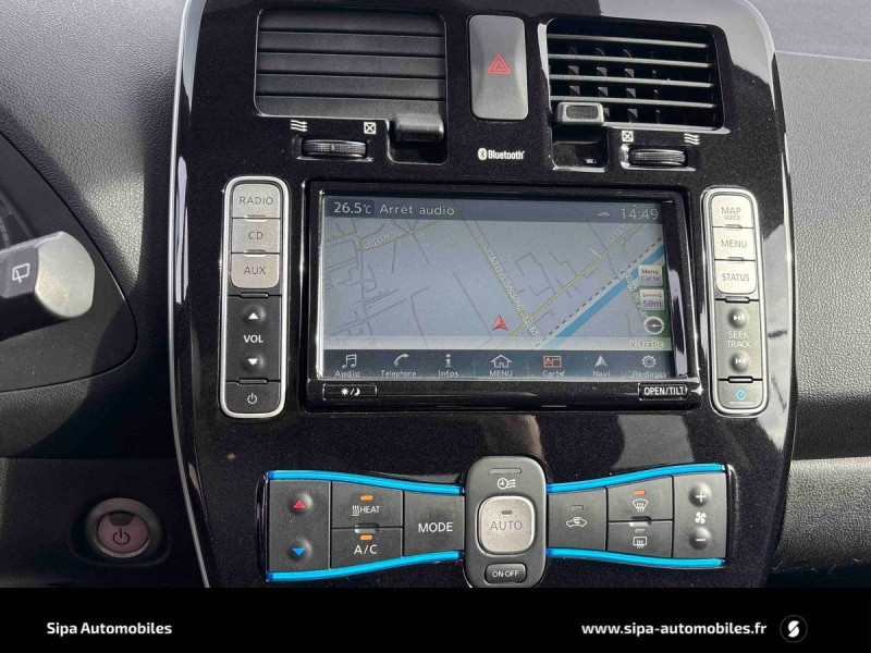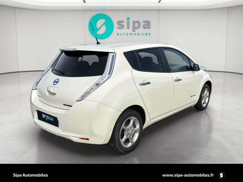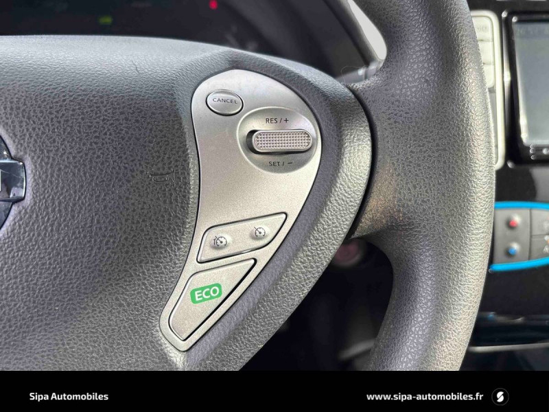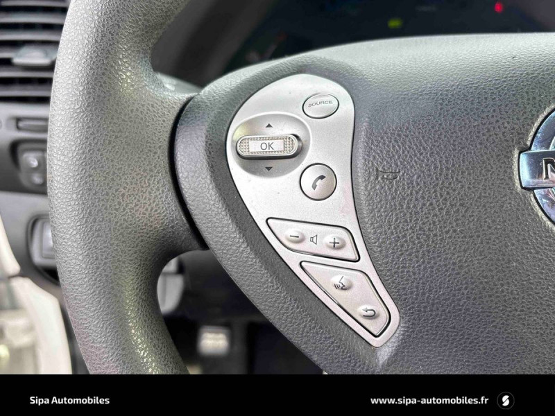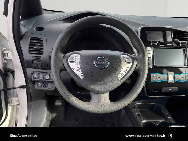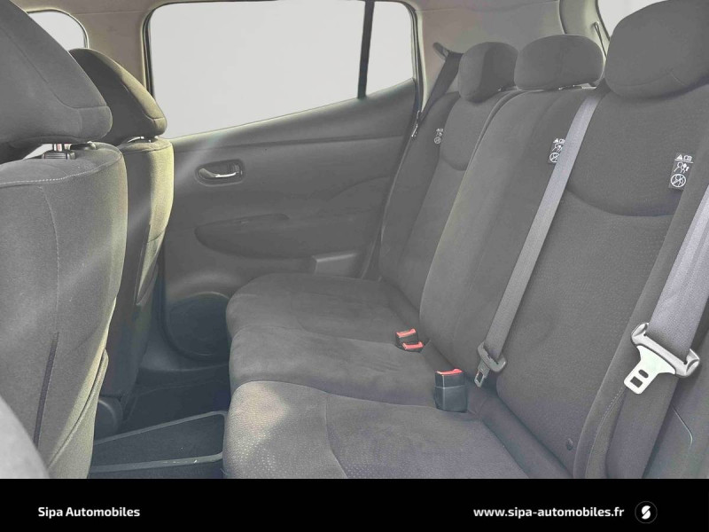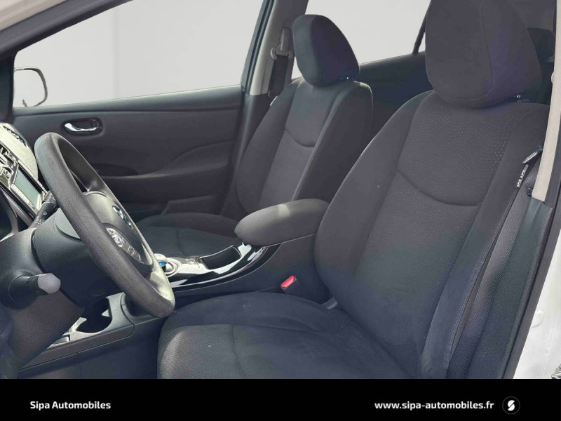 ABS et EBD / Appuie-tête aux places AR / Blocage électromécanique du câble de recharge / Câble de 6 m pour recharge sur prise domestique / Chargeur embarqué 6,6kW - 32 amp. / Déclenchement de la recharge à distance / Eclairage de la prise de recharge / Essuie-glaces AV à 2 vitesses et fonction intermittence variable / Extinction temporisé des phares "Follow me home" / Indicateur de température extérieure / Kit de réparation anticrevaison / Nissan Connect 7.0" / Nissan Connect EV / Ouverture de la trappe de recharge depuis la clé / Pack Charge Rapide / Pare-soleil côtés conducteur et passager avec miroir de courtoisie / Poches aumonières au dos des sièges AV / Poignées de portes chromées / Points d'ancrage pour sièges enfants ISOFIX à l'AR (x2) / Pompe à chaleur / Prise 12V sur console centrale AV / Programmation de la climatisation / Réglage de la climatisation à distance / Régulateur et limiteur de vitesse avec commandes au volant / Rétroviseurs extérieurs couleur carrosserie / Sécurité enfants sur les portes AR / Sellerie tissu noir ou beige / Son d'alerte pour piétons / Système audio CD/RDS 6HP avec commandes au volant et connexion USB pour iPod, lecteur MP3 / Système de climatisation avec pompe à chaleur / Système de navigation spécifique indiquant les points de recharge (mise à jour automatique) / Système d'ouverture et de démarrage sans clé "Intelligent key" / Système main-libre Bluetooth avec commandes au volant