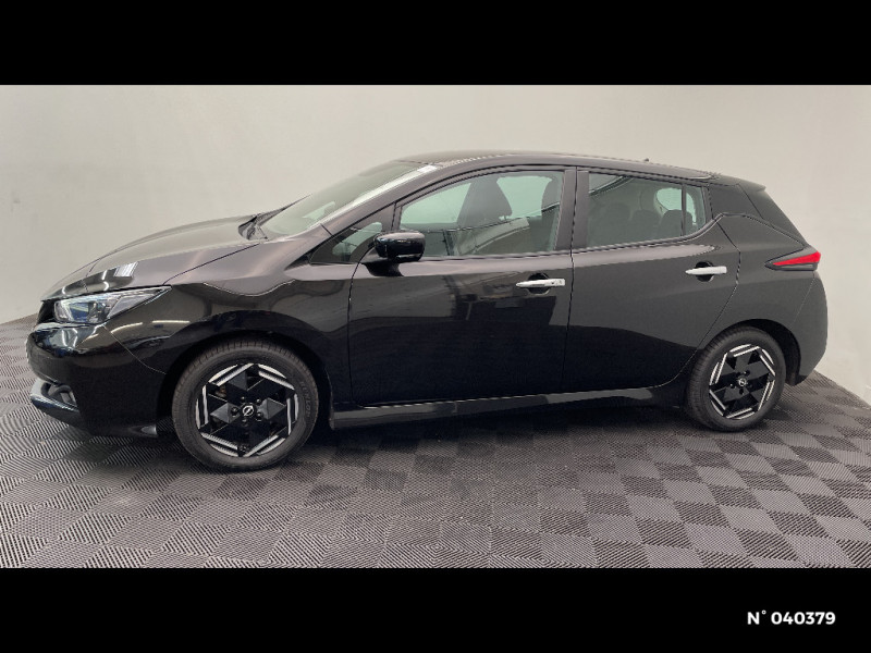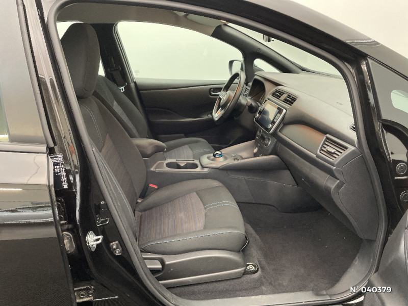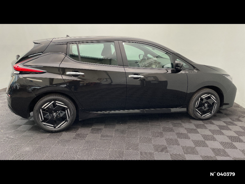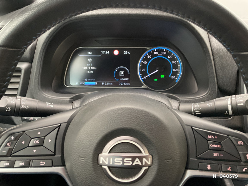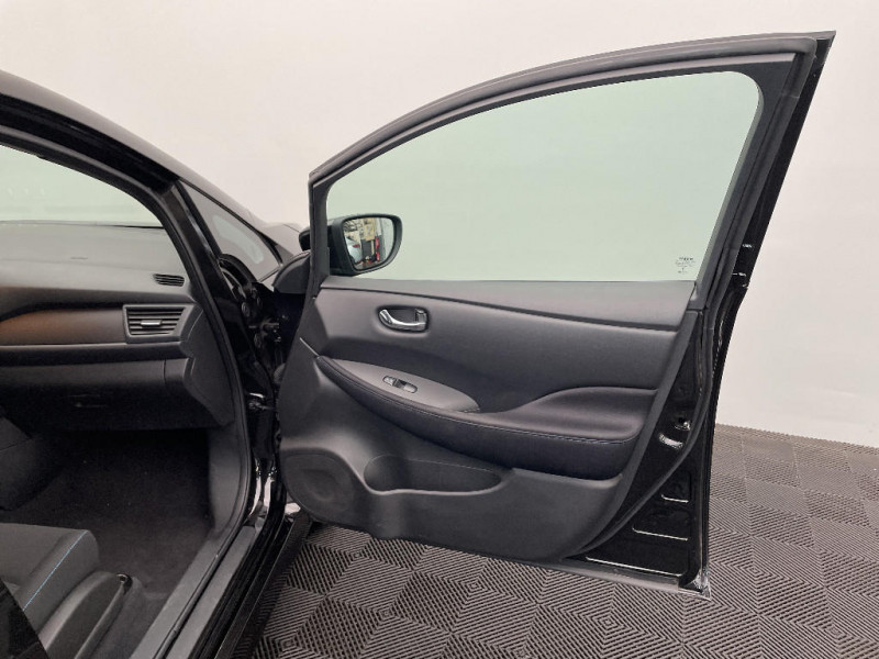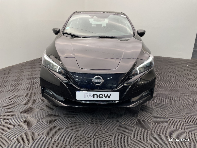 6 HP / ABS et EBD / Système audio Bluetooth, AM/FM, RDS, DAB, MP3, USB (sans CD) / Pack 100% Mobilité / Indicateur de température extérieure / Poches aumonières au dos des sièges AV / Poignées de portes chromées / Système d'ouverture et de démarrage sans clé "Intelligent key" / Extinction temporisé des phares "Follow me home" / Sécurité enfants sur les portes AR / Prise 12V sur console centrale AV / Système de climatisation avec pompe à chaleur / Ouverture de la trappe de recharge depuis la clé / Programmation de la recharge / Commandes au volant (audio, Bluetooth, régulateur et limiteur de vitesses et contrôle de l'ordinate ur de bord) / Feux de route intelligents / Freinage d'urgence intelligent (AEB) avec détection piéton / Pare-soleil côté conducteur et passager avec miroir de courtoisie / Technologie E-pedal / Système "Chassis Control" (contrôle actif de trajectoire et de l'assiette) / Système d'alerte anticollision AR intelligent / Rétroviseurs extérieurs couleur carrosserie avec clignotant à LED intégré / Feux diurne LED avec signature lumineuse / Combiné d'instrumentation avec écran HD TFT 7" couleur / Chargeur embarqué de 6,6kW (pour recharge en 7h sur une wallbox de 32A) / Sellerie tissu Noir ou Gris Clair / Points d'ancrage de siège enfant ISOFIX à l'AV et 2 à l'AR / Allumage automatique des feux de détresse en cas d'accident / Surveillance des angles morts incluant voyant lumineux sur rétroviseurs extérieurs / Son d'alerte pour piétons désactivable / Kit de réparation pneumatique / Prise auxiliaire Jack 3,5 mm / Nissan Connect 8.0 / Eclairage de la trappe de recharge / Nissan Connect Services / Câble de 6 m (recharge sur prise domestique 230V en 21h sur batterie 40 kWh ou 32h sur batterie 62 kWh) / Câble 32A de 6 m (recharge sur borne publique ou Wallbox 7 kW T2 en 7h30 sur 40 kWh ou 11h30 sur 62 kWh) / Port CHAdeMO pour chargeur rapide 50 kW (recharge de 20% à 80% en 60 min sur 40 kWh ou 90 min sur 62 kWh) / Trois appuis-tête aux places AR / Contrôle de la température à distance / Port USB à l'AV (x1) et l'AR (x2) / Feux AV halogènes avec signature lumineuse à LED