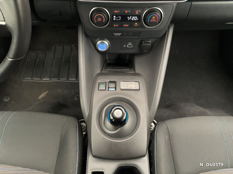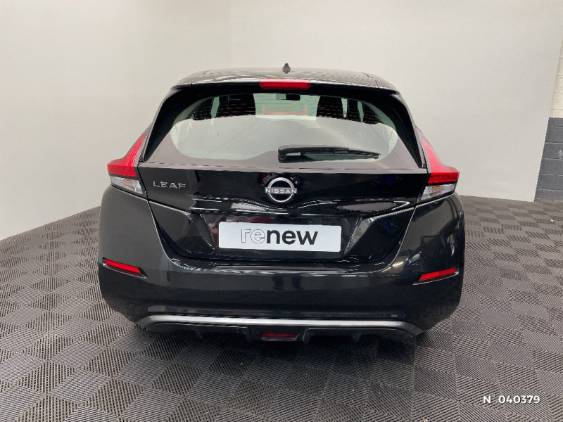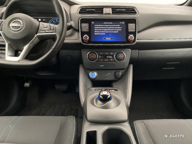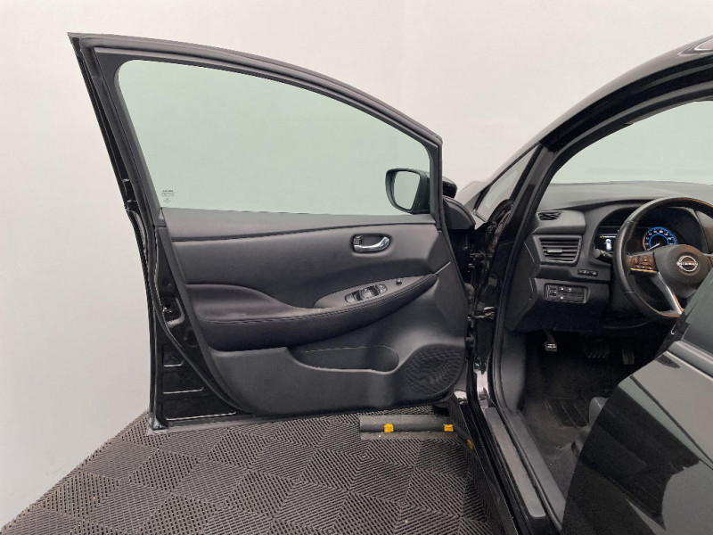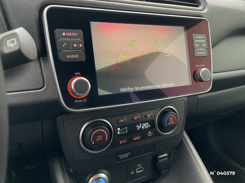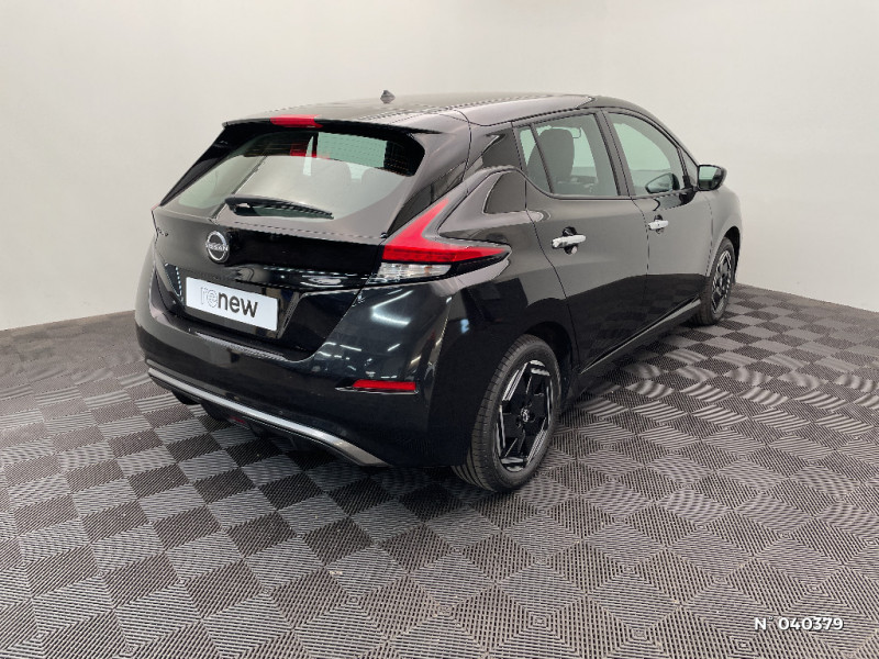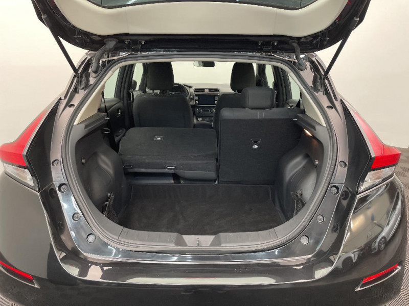 6 HP / ABS et EBD / Système audio Bluetooth, AM/FM, RDS, DAB, MP3, USB (sans CD) / Pack 100% Mobilité / Indicateur de température extérieure / Poches aumonières au dos des sièges AV / Poignées de portes chromées / Système d'ouverture et de démarrage sans clé "Intelligent key" / Extinction temporisé des phares "Follow me home" / Sécurité enfants sur les portes AR / Prise 12V sur console centrale AV / Système de climatisation avec pompe à chaleur / Ouverture de la trappe de recharge depuis la clé / Programmation de la recharge / Commandes au volant (audio, Bluetooth, régulateur et limiteur de vitesses et contrôle de l'ordinate ur de bord) / Feux de route intelligents / Freinage d'urgence intelligent (AEB) avec détection piéton / Pare-soleil côté conducteur et passager avec miroir de courtoisie / Technologie E-pedal / Système "Chassis Control" (contrôle actif de trajectoire et de l'assiette) / Système d'alerte anticollision AR intelligent / Rétroviseurs extérieurs couleur carrosserie avec clignotant à LED intégré / Feux diurne LED avec signature lumineuse / Combiné d'instrumentation avec écran HD TFT 7" couleur / Chargeur embarqué de 6,6kW (pour recharge en 7h sur une wallbox de 32A) / Sellerie tissu Noir ou Gris Clair / Points d'ancrage de siège enfant ISOFIX à l'AV et 2 à l'AR / Allumage automatique des feux de détresse en cas d'accident / Surveillance des angles morts incluant voyant lumineux sur rétroviseurs extérieurs / Son d'alerte pour piétons désactivable / Kit de réparation pneumatique / Prise auxiliaire Jack 3,5 mm / Nissan Connect 8.0 / Eclairage de la trappe de recharge / Nissan Connect Services / Câble de 6 m (recharge sur prise domestique 230V en 21h sur batterie 40 kWh ou 32h sur batterie 62 kWh) / Câble 32A de 6 m (recharge sur borne publique ou Wallbox 7 kW T2 en 7h30 sur 40 kWh ou 11h30 sur 62 kWh) / Port CHAdeMO pour chargeur rapide 50 kW (recharge de 20% à 80% en 60 min sur 40 kWh ou 90 min sur 62 kWh) / Trois appuis-tête aux places AR / Contrôle de la température à distance / Port USB à l'AV (x1) et l'AR (x2) / Feux AV halogènes avec signature lumineuse à LED