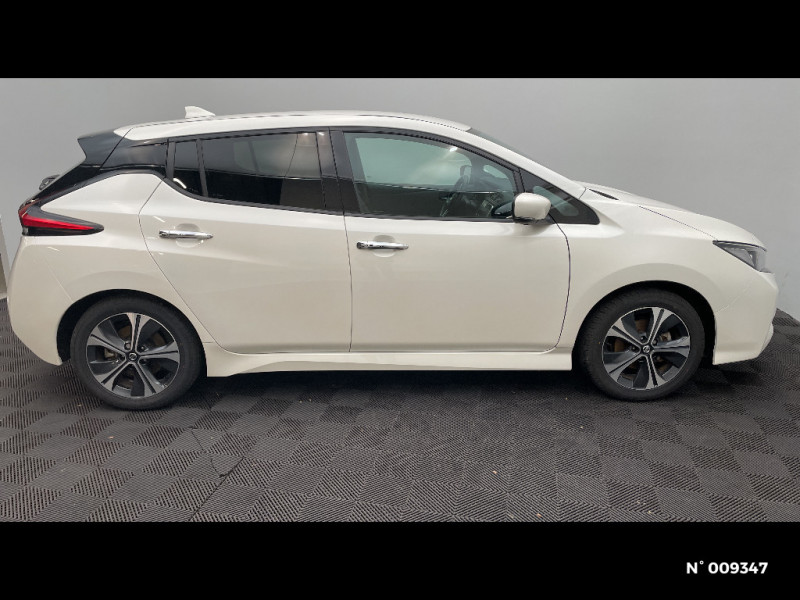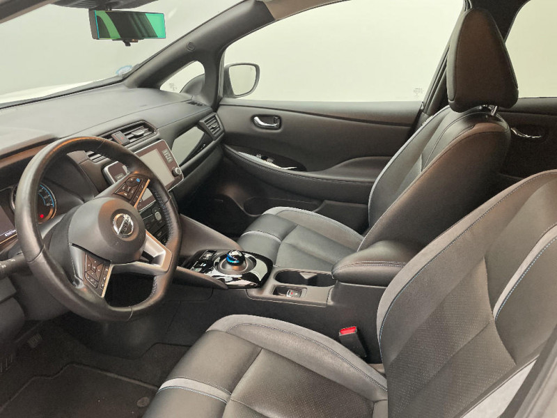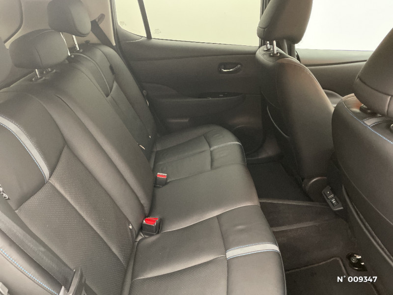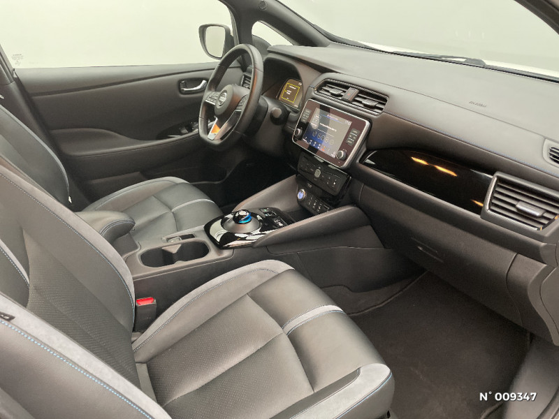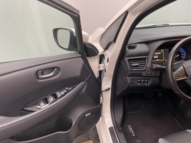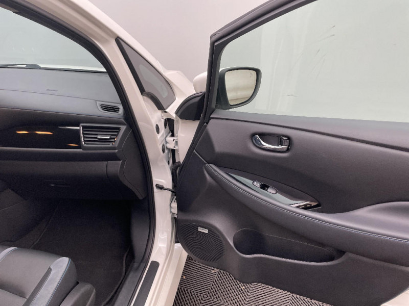 Chargeur embarqué de 6,6kW (pour recharge en 7h sur une wallbox de 32A) / Combiné d'instrumentation avec écran HD TFT 7" couleur / ABS et EBD / Commandes au volant (audio, Bluetooth, régulateur et limiteur de vitesses et contrôle de l'ordinate ur de bord) / Système d'alerte anticollision AR intelligent / Système de climatisation avec pompe à chaleur / Système d'ouverture et de démarrage sans clé "Intelligent key" / Technologie E-pedal / Trois appuis-tête aux places AR / Vitres latérales AR et vitre de hayon teintées / Volant chauffant / Feux de route intelligents / Feux diurne LED avec signature lumineuse / Frein de stationnement électrique / Freinage d'urgence intelligent (AEB) avec détection piéton / Indicateur de température extérieure / Kit de réparation pneumatique / Port USB à l'AV (x1) et l'AR (x2) / Prise auxiliaire Jack 3,5 mm / Prise 12V sur console centrale AV / Programmation de la recharge / ProPILOT : technologie de conduite assistée / Rétroviseur intérieur à affichage numérique / Rétroviseur intérieur électrochromatique / Rétroviseurs extérieurs couleur carrosserie avec clignotant à LED intégré / Sécurité enfants sur les portes AR / Sellerie Cuir avec inserts en Suédine noir ou beige / Son d'alerte pour piétons désactivable / Surveillance des angles morts incluant voyant lumineux sur rétroviseurs extérieurs / Système audio Bluetooth, AM/FM, RDS, DAB, MP3, USB (sans CD) / Système audio BOSE Energy Efficient Series 7 HP / Système "Chassis Control" (contrôle actif de trajectoire et de l'assiette) / Montant central de porte noir laqué / Nissan AVM Vision Intelligente à 360° & Radars de stationnement AV/AR - Caméras latérales, AV/AR avec repères de gabarit - Détection des objets en mouvement - Système de détection de fatigue intelligent - Caméras latérales situées dans les rétroviseurs extérieurs gauche et droit / Nissan Connect Services / Nissan Connect 8.0 / Ouverture de la trappe de recharge depuis la clé / Pack Look / Pack 100% Mobilité / Pare-soleil côté conducteur et passager avec miroir de courtoisie éclairé / Poches aumonières au dos des sièges AV / Poignées de portes chromées / Points d'ancrage de siège enfant ISOFIX à l'AV et 2 à l'AR / Port CHAdeMO pour chargeur rapide 50 kW (recharge de 20% à 80% en 60 min sur 40 kWh ou 90 min sur 62 kWh) / Contrôle vocal Nissan / Eclairage de la trappe de recharge / Extinction temporisé des phares "Follow me home" / Feux AV à LED avec signature lumineuse à LED / Allumage automatique des feux de détresse en cas d'accident / Antenne aileron de requin / Câble de 6 m (recharge sur prise domestique 230V en 21h sur batterie 40 kWh ou 32h sur batterie 62 kWh) / Câble 32A de 6 m (recharge sur borne publique ou Wallbox 7 kW T2 en 7h30 sur 40 kWh ou 11h30 sur 62 kWh)