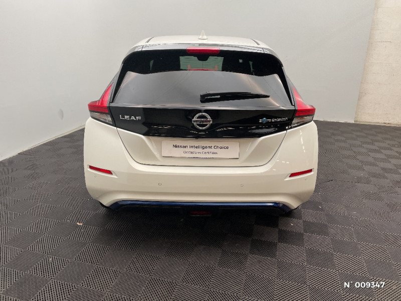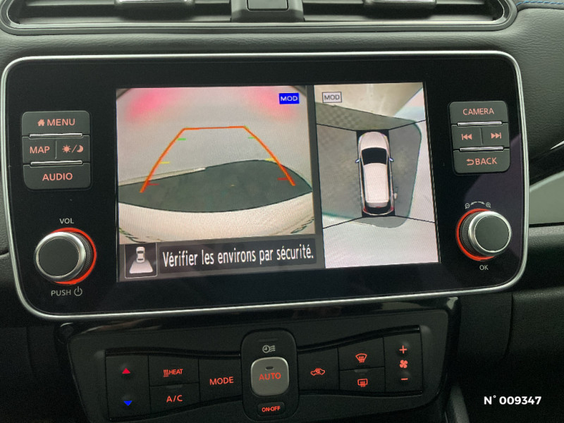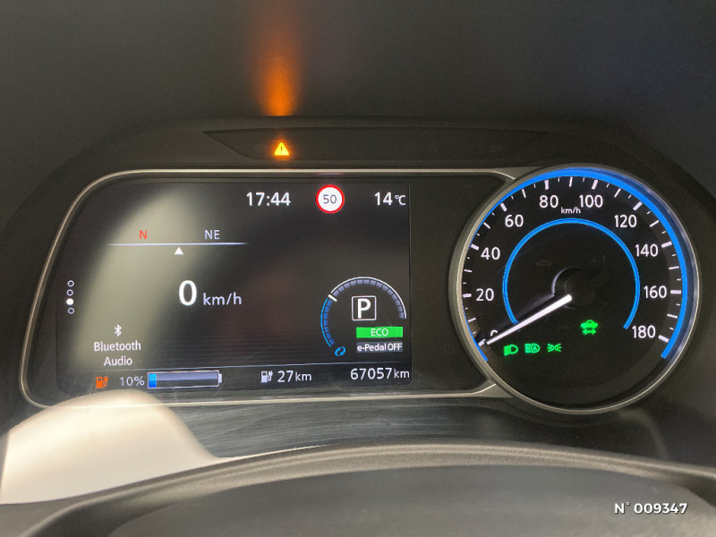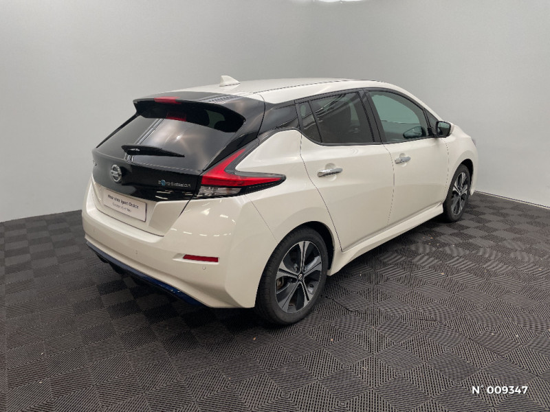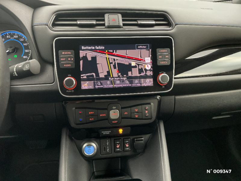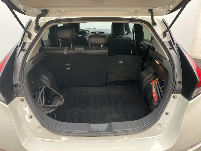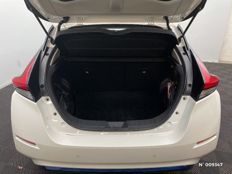 Chargeur embarqué de 6,6kW (pour recharge en 7h sur une wallbox de 32A) / Combiné d'instrumentation avec écran HD TFT 7" couleur / ABS et EBD / Commandes au volant (audio, Bluetooth, régulateur et limiteur de vitesses et contrôle de l'ordinate ur de bord) / Système d'alerte anticollision AR intelligent / Système de climatisation avec pompe à chaleur / Système d'ouverture et de démarrage sans clé "Intelligent key" / Technologie E-pedal / Trois appuis-tête aux places AR / Vitres latérales AR et vitre de hayon teintées / Volant chauffant / Feux de route intelligents / Feux diurne LED avec signature lumineuse / Frein de stationnement électrique / Freinage d'urgence intelligent (AEB) avec détection piéton / Indicateur de température extérieure / Kit de réparation pneumatique / Port USB à l'AV (x1) et l'AR (x2) / Prise auxiliaire Jack 3,5 mm / Prise 12V sur console centrale AV / Programmation de la recharge / ProPILOT : technologie de conduite assistée / Rétroviseur intérieur à affichage numérique / Rétroviseur intérieur électrochromatique / Rétroviseurs extérieurs couleur carrosserie avec clignotant à LED intégré / Sécurité enfants sur les portes AR / Sellerie Cuir avec inserts en Suédine noir ou beige / Son d'alerte pour piétons désactivable / Surveillance des angles morts incluant voyant lumineux sur rétroviseurs extérieurs / Système audio Bluetooth, AM/FM, RDS, DAB, MP3, USB (sans CD) / Système audio BOSE Energy Efficient Series 7 HP / Système "Chassis Control" (contrôle actif de trajectoire et de l'assiette) / Montant central de porte noir laqué / Nissan AVM Vision Intelligente à 360° & Radars de stationnement AV/AR - Caméras latérales, AV/AR avec repères de gabarit - Détection des objets en mouvement - Système de détection de fatigue intelligent - Caméras latérales situées dans les rétroviseurs extérieurs gauche et droit / Nissan Connect Services / Nissan Connect 8.0 / Ouverture de la trappe de recharge depuis la clé / Pack Look / Pack 100% Mobilité / Pare-soleil côté conducteur et passager avec miroir de courtoisie éclairé / Poches aumonières au dos des sièges AV / Poignées de portes chromées / Points d'ancrage de siège enfant ISOFIX à l'AV et 2 à l'AR / Port CHAdeMO pour chargeur rapide 50 kW (recharge de 20% à 80% en 60 min sur 40 kWh ou 90 min sur 62 kWh) / Contrôle vocal Nissan / Eclairage de la trappe de recharge / Extinction temporisé des phares "Follow me home" / Feux AV à LED avec signature lumineuse à LED / Allumage automatique des feux de détresse en cas d'accident / Antenne aileron de requin / Câble de 6 m (recharge sur prise domestique 230V en 21h sur batterie 40 kWh ou 32h sur batterie 62 kWh) / Câble 32A de 6 m (recharge sur borne publique ou Wallbox 7 kW T2 en 7h30 sur 40 kWh ou 11h30 sur 62 kWh)