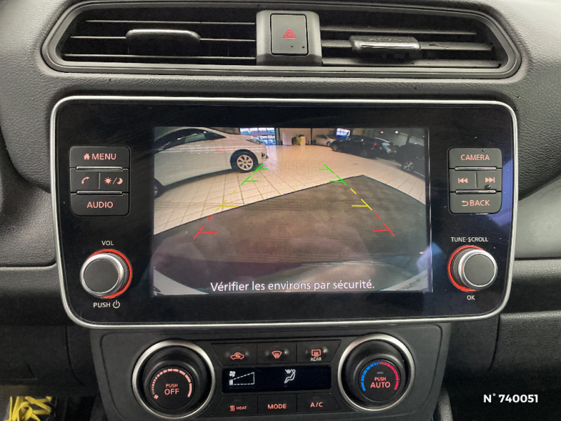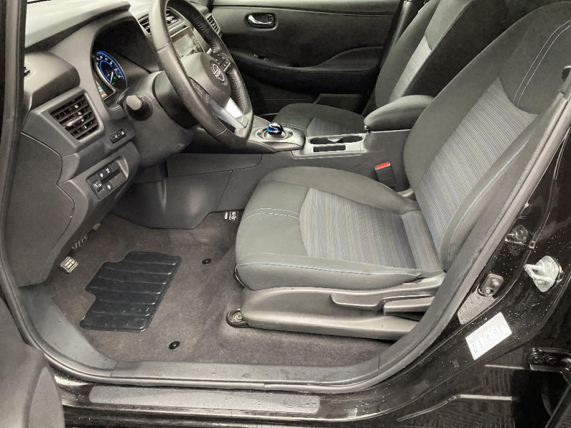 Trois appuis-tête aux places AR / 6 HP / Câble de 6 m (recharge sur prise domestique 230V en 21h sur batterie 40 kWh ou 32h sur batterie 62 kWh) / Câble 32A de 6 m (recharge sur borne publique ou Wallbox 7 kW T2 en 7h30 sur 40 kWh ou 11h30 sur 62 kWh) / Chargeur embarqué de 6,6kW (pour recharge en 7h sur une wallbox de 32A) / Combiné d'instrumentation avec écran HD TFT 7" couleur / Commandes au volant (audio, Bluetooth, régulateur et limiteur de vitesses et contrôle de l'ordinate ur de bord) / Contrôle vocal Nissan / Eclairage de la trappe de recharge / Extinction temporisé des phares "Follow me home" / Feux AV halogènes avec signature lumineuse à LED / Feux de route intelligents / Feux diurne LED avec signature lumineuse / Freinage d'urgence intelligent (AEB) avec détection piéton / Indicateur de température extérieure / Kit de réparation pneumatique / Nissan Connect Services / Système audio Bluetooth, AM/FM, RDS, DAB, MP3, USB (sans CD) / Système "Chassis Control" (contrôle actif de trajectoire et de l'assiette) / Système d'alerte anticollision AR intelligent / Système de climatisation avec pompe à chaleur / Système d'ouverture et de démarrage sans clé "Intelligent key" / Technologie E-pedal / Nissan Connect 8.0 / Ouverture de la trappe de recharge depuis la clé / Pack 100% Mobilité / Pare-soleil côté conducteur et passager avec miroir de courtoisie / Poches aumonières au dos des sièges AV / Poignées de portes chromées / Points d'ancrage de siège enfant ISOFIX à l'AV et 2 à l'AR / Port CHAdeMO pour chargeur rapide 50 kW (recharge de 20% à 80% en 60 min sur 40 kWh ou 90 min sur 62 kWh) / Port USB à l'AV (x1) et l'AR (x2) / Prise auxiliaire Jack 3,5 mm / Prise 12V sur console centrale AV / Programmation de la recharge / Rétroviseurs extérieurs couleur carrosserie avec clignotant à LED intégré / Sécurité enfants sur les portes AR / Sellerie tissu Noir ou Gris Clair / Son d'alerte pour piétons désactivable / Surveillance des angles morts incluant voyant lumineux sur rétroviseurs extérieurs / ABS et EBD / Allumage automatique des feux de détresse en cas d'accident