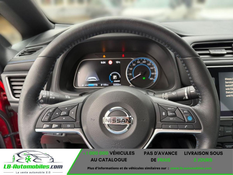 Référence : 1036582 Vos Avantages chez LB-AUTOMOBILES.com / Prix affiché TTC Livré hors carte grise / Livraison sous 10 jours dans toute la France hors 31 / Pas d?avance de frais paiement du véhicule 100% à la livraison par virement. Nissan Leaf Neuf remisée, Nissan Leaf Occasion Toulouse Beaupuy 31850, Nissan Leaf Véhicule sorti de réseau collaborateur, Nissan Leaf import, Nissan Leaf importateur, Nissan Leaf Livraison possible dans toute la France sous 5 jours, Nissan Leaf, Nissan Leaf Location Option Achat, Nissan Leaf LLD, Nissan Leaf Longue Durée, Nissan Leaf TVA récupérable. Possibilité d'extension de garantie 12, 24,36 mois, Pour tout autres voitures import neufs ou occasions collaborateur fortement remisée, Mandataire Audi, Mandataire BMW, Mandataire Volkswagen, Mandataire Mercedes, Mandataire Peugeot Espagne, Mandataire Renault Espagne, Porsche import, Mandataire Citroën Espagne, Mandataire Seat Espagne, n'hésitez pas à nous contacter. « Sous réserve de vente préalable et erreur de saisie » Principaux équipements : - ABS - Airbags frontaux et latéraux et autres - Android Auto - Antidémarrage - Apple CarPlay - Assistance au freinage d'urgence - Assistance de démarrage en côte - Assistant d'angle mort - Assistant feux de route - Avertisseur de franchissement de ligne - Bluetooth - Capteur de lumière - Capteur de pluie - Carnet d'entretien - Climatisation automatique - Contrôle de la pression des pneus - Direction assistée - Éclairage d'ambiance - Éclairage route non éblouissant - Écran tactile - ESP - Fermeture centralisée - Feux de jour LED - Garantie - GPS - Isofix - Jantes alliage - Kit mains libres - Ordinateur de bord - Package hiver - Phare antibrouillard - Pneus été - Pompe à chaleur - Port USB - Radio DAB - Régulateur de vitesse adaptatif - Rétroviseur extérieur électrique - Rétroviseur intérieur anti-éblouissement automatique - Sièges arrières chauffants électriques - Sièges chauffants - Streaming musical intégré - Système antipatinage - Système d'avertissement de la distance - Système de détection de la fatigue - Système de reconnaissance des panneaux de signalisation - Traction avant - Tuner/radio - Véhicule non-fumeur - Verrouillage centralisé sans clé - Vitres électriques - Vitres teintées - Volant chauffant - Volant en cuir - Volant multifonction - Radar de recul : Avant, Caméra 360, Arrière - Première main : Oui