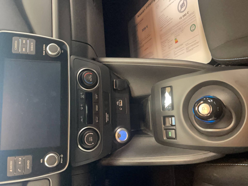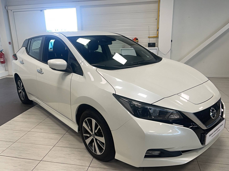 ABS et EBD / Câble 32A de 6m (pour recharge en 7h) / Câble de 6m (pour recharge en 21h) / Chargeur embarqué de 6,6kW (pour recharge en 7h sur une wallbox de 32A) / Combiné d'instrumentation avec écran HD TFT 7" couleur / Connecteur pour chargeur rapide CHAdeMO (recharge à 80% en 40 min) / Déclenchement de la climatisation à distance / Déclenchement de la recharge à distance / Feux diurne LED avec signature lumineuse / Freinage d'urgence intelligent (AEB) avec détection piéton / Montant central de porte noir laqué / Nissan AVM - Vision Intelligente à 360° / Nissan Connect 7.0" : Ecran tactile couleur 7,0", Caméra de recul avec repères de gabarit dynamiques Pilotage des services télématiques, Indication des points de charge avec mise à jour automatique, Système de navigation multimédia avec fonction Info Trafic, cartographie Europe 3D, indicateur d'éco-conduite, Système audio Bluetooth® (téléphone et musique), Radio numérique DAB, Connexion smartphone (Apple CarPlay et Android Auto) / Poches aumonières au dos des sièges AV / Poignées de portes chromées / Points d'ancrage pour sièges enfants ISOFIX à l'AR / Pompe à chaleur / Programmation de la recharge / Rétroviseur intérieur électrochromatique / Rétroviseurs extérieurs couleur carrosserie avec clignotant à LED intégré / Sellerie cuir/tissu Noir ou Beige / Système audio CD/RDS 6HP avec commandes au volant et connexion USB pour iPod, lecteur MP3 / Système "Chassis Control" (contrôle actif de trajectoire et de l'assiette) / Système d'alerte anticollision AR intelligent / Système d'ouverture et de démarrage sans clé "Intelligent key" / Technologie E-pedal / Volant chauffant /