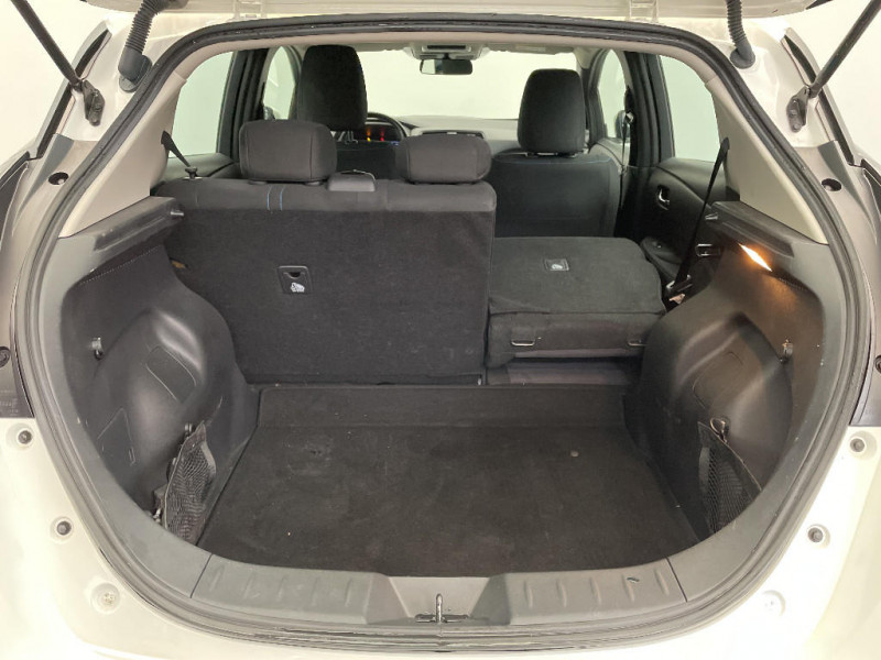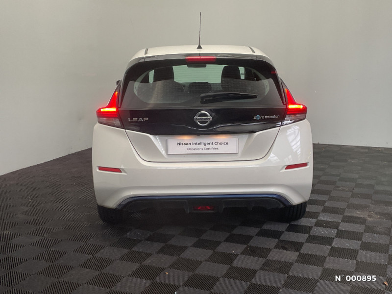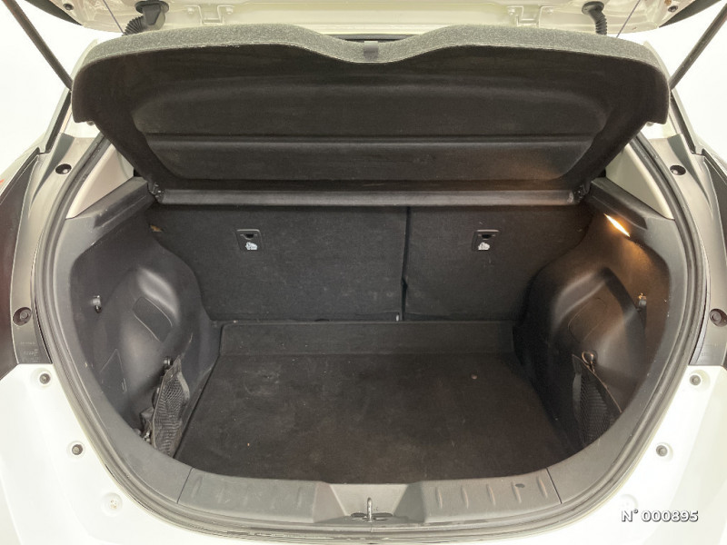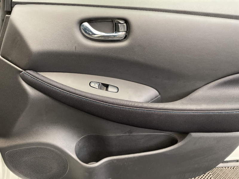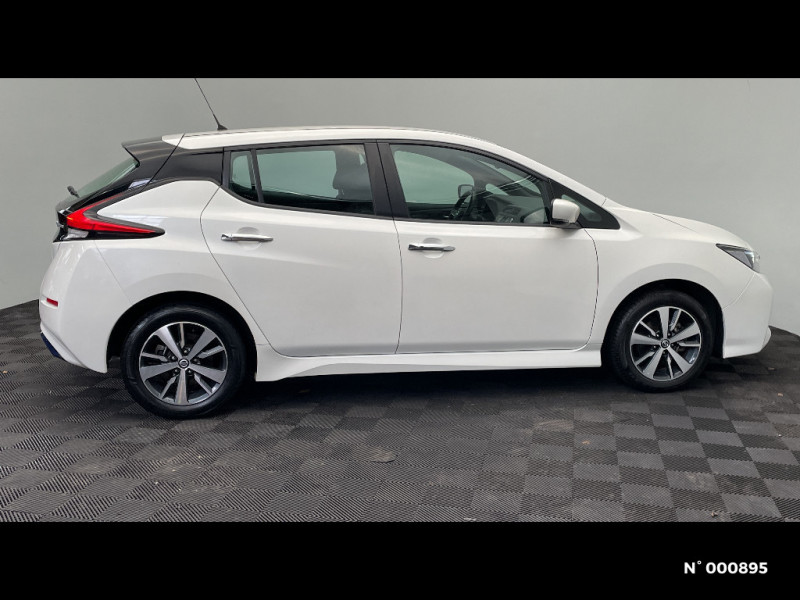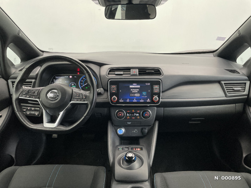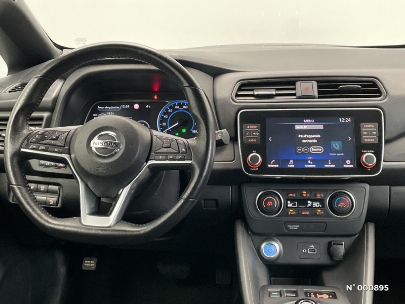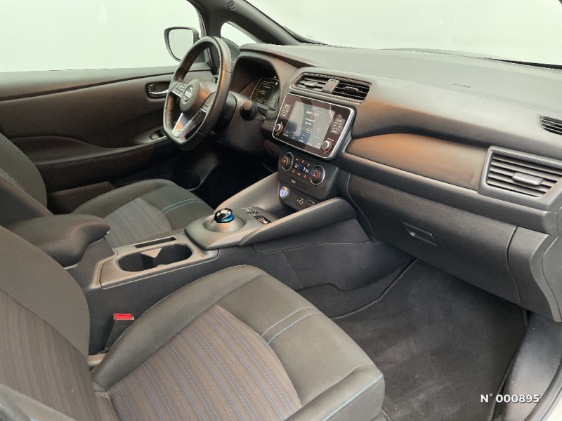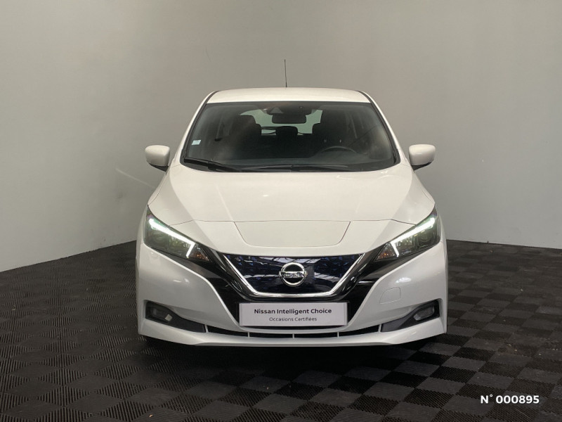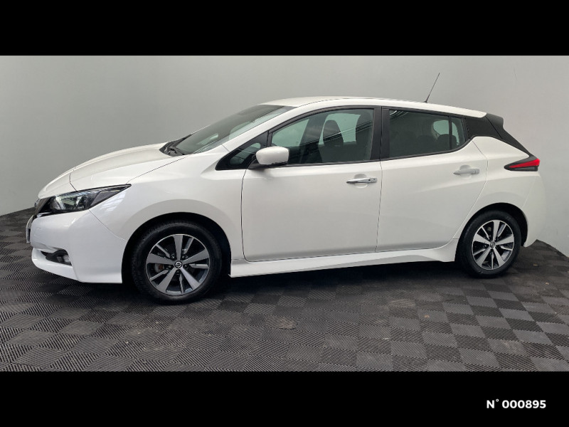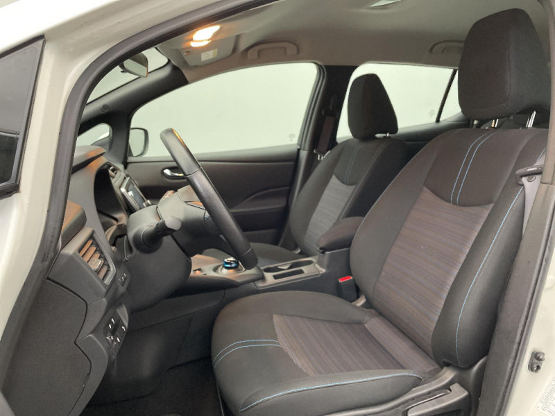 6 HP / Nissan Connect Services / ABS et EBD / Allumage automatique des feux de détresse en cas d'accident / Câble de 6 m (recharge sur prise domestique 230V en 21h sur batterie 40 kWh ou 32h sur batterie 62 kWh) / Câble 32A de 6 m (recharge sur borne publique ou Wallbox 7 kW T2 en 7h30 sur 40 kWh ou 11h30 sur 62 kWh) / Chargeur embarqué de 6,6kW (pour recharge en 7h sur une wallbox de 32A) / Combiné d'instrumentation avec écran HD TFT 7" couleur / Commandes au volant (audio, Bluetooth, régulateur et limiteur de vitesses et contrôle de l'ordinate ur de bord) / Contrôle vocal Nissan / Eclairage de la trappe de recharge / Extinction temporisé des phares "Follow me home" / Feux AV halogènes avec signature lumineuse à LED / Feux de route intelligents / Feux diurne LED avec signature lumineuse / Freinage d'urgence intelligent (AEB) avec détection piéton / Indicateur de température extérieure / Kit de réparation pneumatique / Nissan Connect 8.0 / Ouverture de la trappe de recharge depuis la clé / Pack 100% Mobilité / Pare-soleil côté conducteur et passager avec miroir de courtoisie / Poches aumonières au dos des sièges AV / Poignées de portes chromées / Points d'ancrage de siège enfant ISOFIX à l'AV et 2 à l'AR / Port CHAdeMO pour chargeur rapide 50 kW (recharge de 20% à 80% en 60 min sur 40 kWh ou 90 min sur 62 kWh) / Port USB à l'AV (x1) et l'AR (x2) / Prise auxiliaire Jack 3,5 mm / Prise 12V sur console centrale AV / Programmation de la recharge / Rétroviseurs extérieurs couleur carrosserie avec clignotant à LED intégré / Sécurité enfants sur les portes AR / Sellerie tissu Noir ou Gris Clair / Son d'alerte pour piétons désactivable / Surveillance des angles morts incluant voyant lumineux sur rétroviseurs extérieurs / Système audio Bluetooth, AM/FM, RDS, DAB, MP3, USB (sans CD) / Système "Chassis Control" (contrôle actif de trajectoire et de l'assiette) / Système d'alerte anticollision AR intelligent / Système de climatisation avec pompe à chaleur / Système d'ouverture et de démarrage sans clé "Intelligent key" / Technologie E-pedal / Trois appuis-tête aux places AR