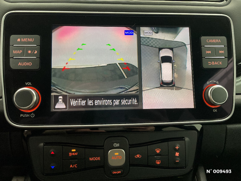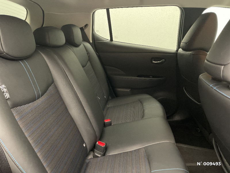 Technologie E-pedal / Trois appuis-tête aux places AR / Vitres latérales AR et vitre de hayon teintées / Volant chauffant / Wi-Fi (service payant) / Wi-Fi (service payant) et reconnaissance vocale / 6 HP / Nissan AVM Vision Intelligente à 360° & Radars de stationnement AV/AR - Caméras latérales, AV/AR avec repères de gabarit - Détection des objets en mouvement - Système de détection de fatigue intelligent - Caméras latérales situées dans les rétroviseurs extérieurs gauche et droit / Nissan Connect Services / Nissan Connect 8.0 / Ouverture de la trappe de recharge depuis la clé / Pack 100% Mobilité / Pare-soleil côté conducteur et passager avec miroir de courtoisie éclairé / Peinture opaque monoton / Poches aumonières au dos des sièges AV / Poignées de portes chromées / Points d'ancrage de siège enfant ISOFIX à l'AV et 2 à l'AR / Points d'ancrage pour sièges enfants ISOFIX à l'AR (x2) / ABS et EBD / Feux de route intelligents / Feux diurne LED avec signature lumineuse / Freinage d'urgence intelligent (AEB) avec détection piéton / Indicateur de température extérieure / Kit de réparation pneumatique / Montant central de porte noir laqué / Prise auxiliaire Jack 3,5 mm / Prise 12V sur console centrale AV / Programmation de la recharge / Rétroviseur intérieur électrochromatique / Rétroviseurs extérieurs couleur carrosserie avec clignotant à LED intégré / Sécurité enfants sur les portes AR / Sellerie mixte TEP/Tissu noir ou beige / Son d'alerte pour piétons désactivable / Surveillance des angles morts incluant voyant lumineux sur rétroviseurs extérieurs / Système audio Bluetooth, AM/FM, RDS, DAB, MP3, USB (sans CD) / Système "Chassis Control" (contrôle actif de trajectoire et de l'assiette) / Système d'alerte anticollision AR intelligent / Allumage automatique des feux de détresse en cas d'accident / Amazon Alexa avec capacité Home-to-Car / Antenne aileron de requin / Boîte de vitesses automatique 1 rapports / Câble de 6 m (recharge sur prise domestique 230V en 21h sur batterie 40 kWh ou 32h sur batterie 62 kWh) / Câble 32A de 6 m (recharge sur borne publique ou Wallbox 7 kW T2 en 7h30 sur 40 kWh ou 11h30 sur 62 kWh) / Chargeur embarqué de 6,6kW (pour recharge en 7h sur une wallbox de 32A) / Port CHAdeMO pour chargeur rapide 50 kW (recharge de 20% à 80% en 60 min sur 40 kWh ou 90 min sur 62 kWh) / Port USB à l'AV (x1) et l'AR (x2) / Chargeur embarqué de 6,6kW pour se recharger sur une borne ou Wallbox 32A / Combiné d'instrumentation avec écran HD TFT 7" couleur / Commandes au volant (audio, Bluetooth, régulateur et limiteur de vitesses et contrôle de l'ordinate ur de bord) / Contrôle de la température à distance / Contrôle vocal Nissan / Eclairage de la trappe de recharge / Extinction temporisé des phares "Follow me home" / Feux AV halogènes avec signature lumineuse à LED / Système d'avertissement acoustique du véhicule (AVAS) / Système de climatisation avec pompe à chaleur / Système d'ouverture et de démarrage sans clé "Intelligent key"