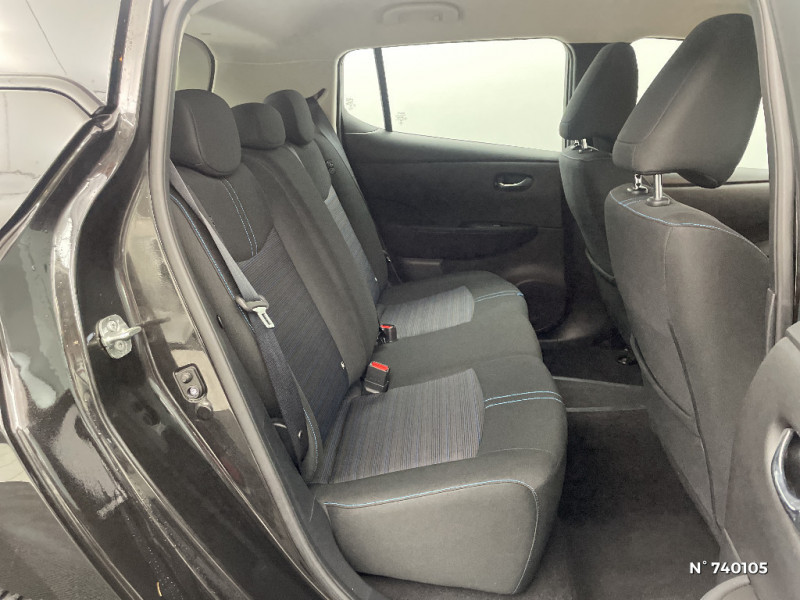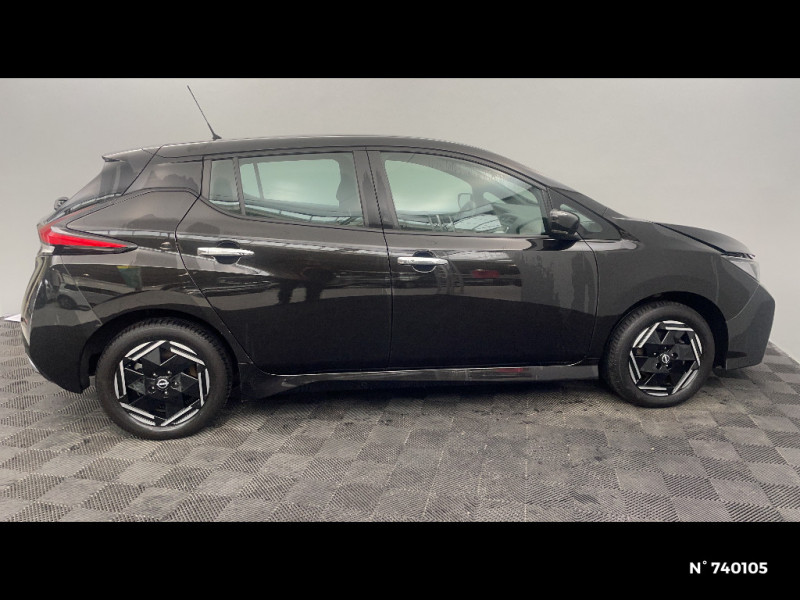 Feux diurne LED avec signature lumineuse / Freinage d'urgence intelligent (AEB) avec détection piéton / Indicateur de température extérieure / Kit de réparation pneumatique / Nissan Connect Services / Nissan Connect 8.0 / Ouverture de la trappe de recharge depuis la clé / Pack 100% Mobilité / Pare-soleil côté conducteur et passager avec miroir de courtoisie / Poches aumonières au dos des sièges AV / Poignées de portes chromées / Points d'ancrage de siège enfant ISOFIX à l'AV et 2 à l'AR / Port CHAdeMO pour chargeur rapide 50 kW (recharge de 20% à 80% en 60 min sur 40 kWh ou 90 min sur 62 kWh) / Port USB à l'AV (x1) et l'AR (x2) / Prise auxiliaire Jack 3,5 mm / Prise 12V sur console centrale AV / Programmation de la recharge / Rétroviseurs extérieurs couleur carrosserie avec clignotant à LED intégré / Chargeur embarqué de 6,6kW (pour recharge en 7h sur une wallbox de 32A) / Combiné d'instrumentation avec écran HD TFT 7" couleur / Commandes au volant (audio, Bluetooth, régulateur et limiteur de vitesses et contrôle de l'ordinate ur de bord) / Contrôle vocal Nissan / Eclairage de la trappe de recharge / Sécurité enfants sur les portes AR / Sellerie tissu Noir ou Gris Clair / Son d'alerte pour piétons désactivable / Surveillance des angles morts incluant voyant lumineux sur rétroviseurs extérieurs / Système audio Bluetooth, AM/FM, RDS, DAB, MP3, USB (sans CD) / Système "Chassis Control" (contrôle actif de trajectoire et de l'assiette) / Système d'alerte anticollision AR intelligent / Système d'avertissement acoustique du véhicule (AVAS) / Système de climatisation avec pompe à chaleur / Système d'ouverture et de démarrage sans clé "Intelligent key" / Technologie E-pedal / Trois appuis-tête aux places AR / 6 HP / Ecran tactile multimedia 8"compatible Apple Car Play et Android Auto et caméra de recul / Extinction temporisé des phares "Follow me home" / Feux AV halogènes avec signature lumineuse à LED / Feux de route intelligents / ABS et EBD / Allumage automatique des feux de détresse en cas d'accident / Câble de 6 m (recharge sur prise domestique 230V en 21h sur batterie 40 kWh ou 32h sur batterie 62 kWh) / Câble 32A de 6 m (recharge sur borne publique ou Wallbox 7 kW T2 en 7h30 sur 40 kWh ou 11h30 sur 62 kWh)
