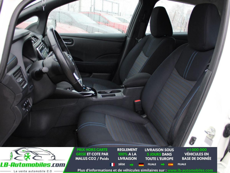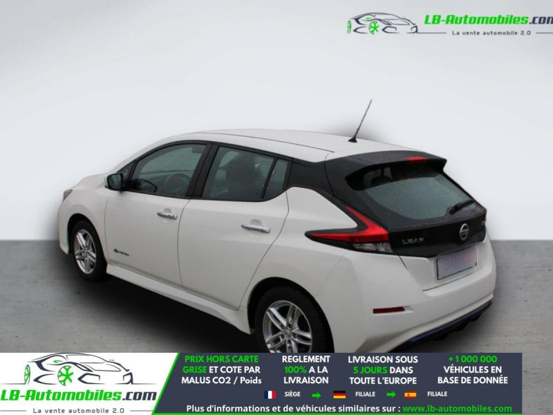 Référence : 1149611 Vos Avantages chez LB-AUTOMOBILES.com / Prix affiché TTC Livré hors carte grise / Livraison sous 10 jours dans toute la France hors 31 / Pas d?avance de frais paiement du véhicule 100% à la livraison par virement. Nissan Leaf Neuf remisée, Nissan Leaf Occasion Toulouse Beaupuy 31850, Nissan Leaf Véhicule sorti de réseau collaborateur, Nissan Leaf import, Nissan Leaf importateur, Nissan Leaf Livraison possible dans toute la France sous 5 jours, Nissan Leaf, Nissan Leaf Location Option Achat, Nissan Leaf LLD, Nissan Leaf Longue Durée, Nissan Leaf TVA récupérable. Possibilité d'extension de garantie 12, 24,36 mois, Pour tout autres voitures import neufs ou occasions collaborateur fortement remisée, Mandataire Audi, Mandataire BMW, Mandataire Volkswagen, Mandataire Mercedes, Mandataire Peugeot Espagne, Mandataire Renault Espagne, Porsche import, Mandataire Citroën Espagne, Mandataire Seat Espagne, n'hésitez pas à nous contacter. « Sous réserve de vente préalable et erreur de saisie » Principaux équipements : - ABS - Accoudoir - Antidémarrage - Assistant d'angle mort - Bluetooth - Capteur de lumière - Capteur de pluie - Carnet d'entretien - Certificat de batterie - Chauffage auxiliaire - Commande vocale - Contrôle de la pression des pneus - Direction assistée - Écran tactile - ESP - Fermeture centralisée - Feux de jour - Garantie - GPS - Isofix - Jantes alliage - Kit de réparation d'urgence des pneus - Kit mains libres - Ordinateur de bord - Package hiver - Phare antibrouillard - Pneus été - Pneus hiver - Port USB - Radio DAB - Régulateur de vitesse - Rétroviseur extérieur électrique - Sièges arrières chauffants électriques - Sièges chauffants - Système de reconnaissance des panneaux de signalisation - Traction avant - Tuner/radio - Véhicule non-fumeur - Verrouillage centralisé sans clé - Vitres électriques - Volant chauffant - Volant en cuir - Volant multifonction