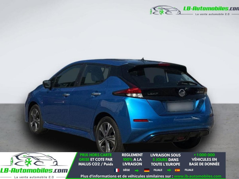 Référence : 1149518 Vos Avantages chez LB-AUTOMOBILES.com / Prix affiché TTC Livré hors carte grise / Livraison sous 10 jours dans toute la France hors 31 / Pas d?avance de frais paiement du véhicule 100% à la livraison par virement. Nissan Leaf Neuf remisée, Nissan Leaf Occasion Toulouse Beaupuy 31850, Nissan Leaf Véhicule sorti de réseau collaborateur, Nissan Leaf import, Nissan Leaf importateur, Nissan Leaf Livraison possible dans toute la France sous 5 jours, Nissan Leaf, Nissan Leaf Location Option Achat, Nissan Leaf LLD, Nissan Leaf Longue Durée, Nissan Leaf TVA récupérable. Possibilité d'extension de garantie 12, 24,36 mois, Pour tout autres voitures import neufs ou occasions collaborateur fortement remisée, Mandataire Audi, Mandataire BMW, Mandataire Volkswagen, Mandataire Mercedes, Mandataire Peugeot Espagne, Mandataire Renault Espagne, Porsche import, Mandataire Citroën Espagne, Mandataire Seat Espagne, n'hésitez pas à nous contacter. « Sous réserve de vente préalable et erreur de saisie » Principaux équipements : - ABS - Accoudoir - Android Auto - Antidémarrage - Apple CarPlay - Assistance au freinage d'urgence - Assistance de démarrage en côte - Assistant d'angle mort - Avertisseur de franchissement de ligne - Bluetooth - Capteur de lumière - Capteur de pluie - Carnet d'entretien - Commande vocale - Contrôle de la pression des pneus - Direction assistée - Écran tactile - ESP - Fermeture centralisée - Feux de jour LED - Garantie - GPS - Isofix - Jantes alliage - Kit de préparation pour système de navigation - Kit de réparation d'urgence des pneus - Kit mains libres - Ordinateur de bord - Package hiver - Phare antibrouillard - Pneus été - Port USB - Radio DAB - Régulateur de vitesse adaptatif - Rétroviseur extérieur électrique - Rétroviseur intérieur anti-éblouissement automatique - Sièges arrières chauffants électriques - Sièges chauffants - Streaming musical intégré - Système antipatinage - Système d'avertissement de la distance - Système de détection de la fatigue - Système de limitation de la vitesse - Système de reconnaissance des panneaux de signalisation - Traction avant - Tuner/radio - Véhicule non-fumeur - Verrouillage centralisé sans clé - Vitres électriques - Volant chauffant - Volant en cuir - Volant multifonction