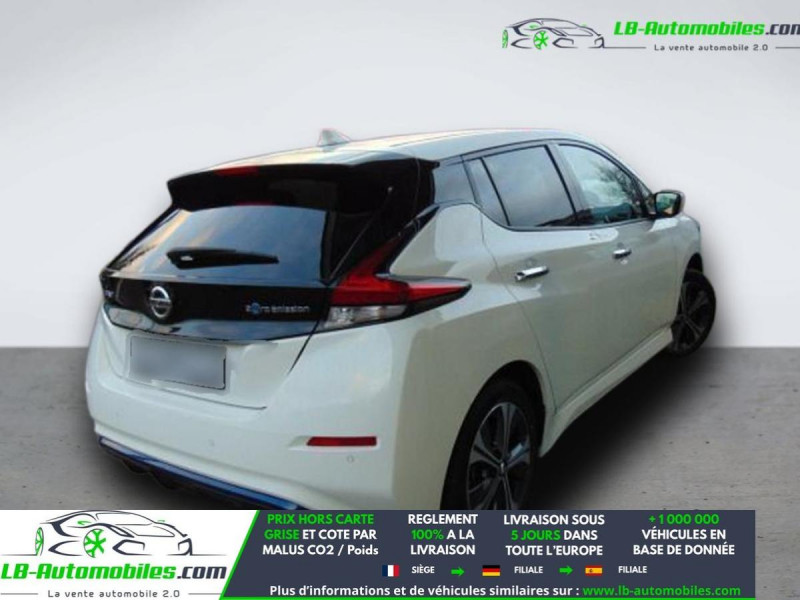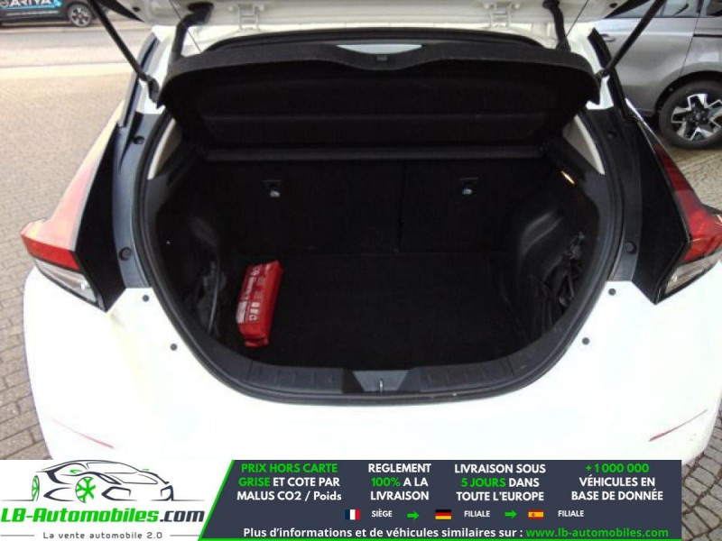 Référence : 1149524 Vos Avantages chez LB-AUTOMOBILES.com / Prix affiché TTC Livré hors carte grise / Livraison sous 10 jours dans toute la France hors 31 / Pas d?avance de frais paiement du véhicule 100% à la livraison par virement. Nissan Leaf Neuf remisée, Nissan Leaf Occasion Toulouse Beaupuy 31850, Nissan Leaf Véhicule sorti de réseau collaborateur, Nissan Leaf import, Nissan Leaf importateur, Nissan Leaf Livraison possible dans toute la France sous 5 jours, Nissan Leaf, Nissan Leaf Location Option Achat, Nissan Leaf LLD, Nissan Leaf Longue Durée, Nissan Leaf TVA récupérable. Possibilité d'extension de garantie 12, 24,36 mois, Pour tout autres voitures import neufs ou occasions collaborateur fortement remisée, Mandataire Audi, Mandataire BMW, Mandataire Volkswagen, Mandataire Mercedes, Mandataire Peugeot Espagne, Mandataire Renault Espagne, Porsche import, Mandataire Citroën Espagne, Mandataire Seat Espagne, n'hésitez pas à nous contacter. « Sous réserve de vente préalable et erreur de saisie » Principaux équipements : - ABS - Android Auto - Antidémarrage - Apple CarPlay - Assistance au freinage d'urgence - Assistance de démarrage en côte - Assistant d'angle mort - Assistant feux de route - Avertisseur de franchissement de ligne - Bluetooth - Capteur de lumière - Capteur de pluie - Carnet d'entretien - Contrôle de la pression des pneus - Direction assistée - Éclairage d'ambiance - Éclairage route non éblouissant - Écran tactile - ESP - Fermeture centralisée - Feux de jour LED - Garantie - GPS - Isofix - Jantes alliage - Kit mains libres - Ordinateur de bord - Package hiver - Phare antibrouillard - Pneus été - Pompe à chaleur - Port USB - Radio DAB - Régulateur de vitesse adaptatif - Rétroviseur extérieur électrique - Rétroviseur intérieur anti-éblouissement automatique - Sièges chauffants - Streaming musical intégré - Système antipatinage - Système d'avertissement de la distance - Système de détection de la fatigue - Système de limitation de la vitesse - Système de reconnaissance des panneaux de signalisation - Traction avant - Tuner/radio - Véhicule non-fumeur - Verrouillage centralisé sans clé - Vitres électriques - Vitres teintées - Volant chauffant - Volant en cuir - Volant multifonction