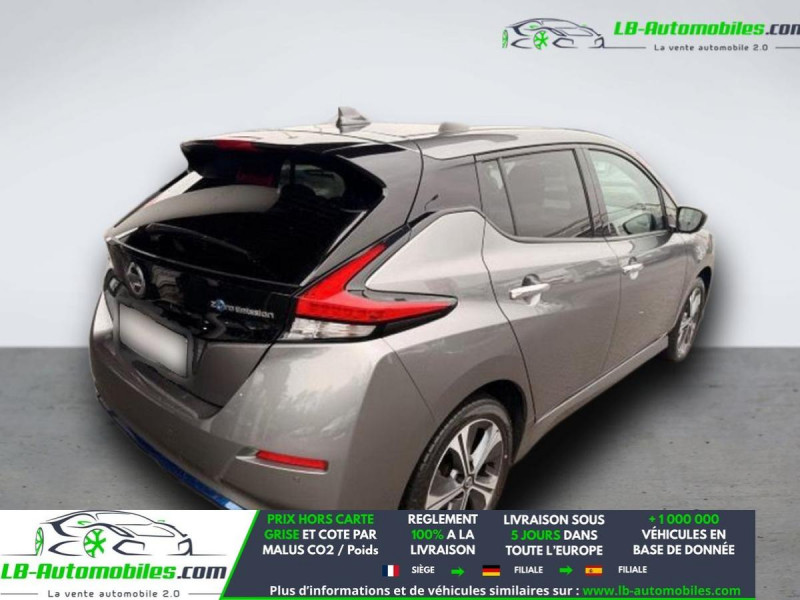 Référence : 1149527 Vos Avantages chez LB-AUTOMOBILES.com / Prix affiché TTC Livré hors carte grise / Livraison sous 10 jours dans toute la France hors 31 / Pas d?avance de frais paiement du véhicule 100% à la livraison par virement. Nissan Leaf Neuf remisée, Nissan Leaf Occasion Toulouse Beaupuy 31850, Nissan Leaf Véhicule sorti de réseau collaborateur, Nissan Leaf import, Nissan Leaf importateur, Nissan Leaf Livraison possible dans toute la France sous 5 jours, Nissan Leaf, Nissan Leaf Location Option Achat, Nissan Leaf LLD, Nissan Leaf Longue Durée, Nissan Leaf TVA récupérable. Possibilité d'extension de garantie 12, 24,36 mois, Pour tout autres voitures import neufs ou occasions collaborateur fortement remisée, Mandataire Audi, Mandataire BMW, Mandataire Volkswagen, Mandataire Mercedes, Mandataire Peugeot Espagne, Mandataire Renault Espagne, Porsche import, Mandataire Citroën Espagne, Mandataire Seat Espagne, n'hésitez pas à nous contacter. « Sous réserve de vente préalable et erreur de saisie » Principaux équipements : - ABS - Android Auto - Antidémarrage - Apple CarPlay - Assistance au freinage d'urgence - Assistance de démarrage en côte - Assistant d'angle mort - Assistant feux de route - Avertisseur de franchissement de ligne - Bluetooth - Capteur de lumière - Capteur de pluie - Chauffage auxiliaire - Contrôle de la pression des pneus - Direction assistée - Éclairage d'ambiance - Éclairage route non éblouissant - Écran tactile - ESP - Fermeture centralisée - Feux de jour LED - Garantie - GPS - Isofix - Jantes alliage - Kit mains libres - Ordinateur de bord - Package hiver - Phare antibrouillard - Phares LED - Pneus été - Pompe à chaleur - Port USB - Radio DAB - Régulateur de vitesse adaptatif - Rétroviseur extérieur électrique - Rétroviseur intérieur anti-éblouissement automatique - Sièges arrières chauffants électriques - Sièges chauffants - Streaming musical intégré - Système antipatinage - Système d'avertissement de la distance - Système de détection de la fatigue - Système de limitation de la vitesse - Système de reconnaissance des panneaux de signalisation - Traction avant - Tuner/radio - Verrouillage centralisé sans clé - Vitres électriques - Vitres teintées - Volant chauffant - Volant en cuir - Volant multifonction - WLAN / point d'accès Wi-Fi
