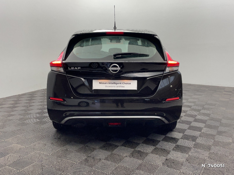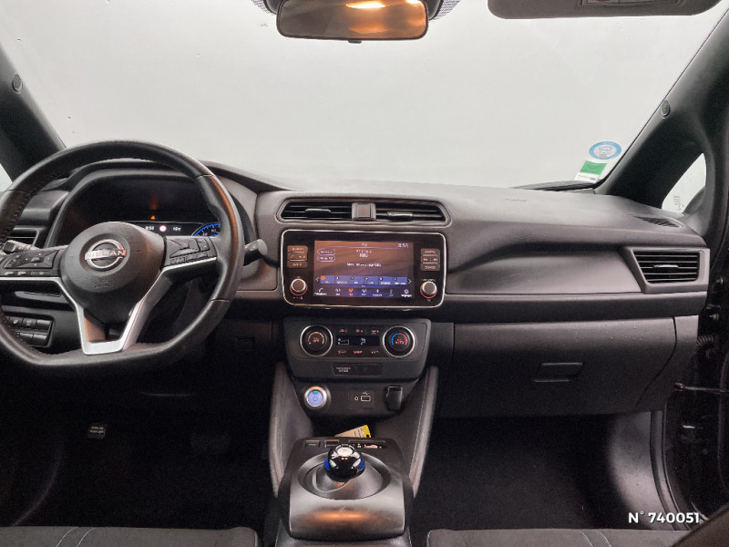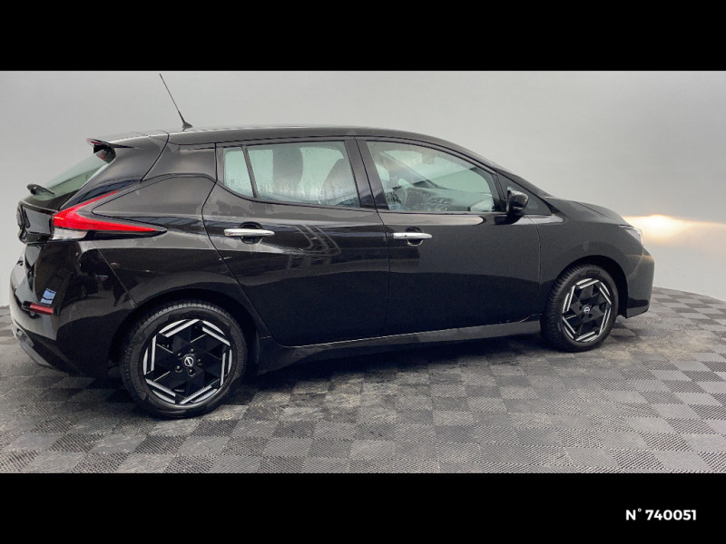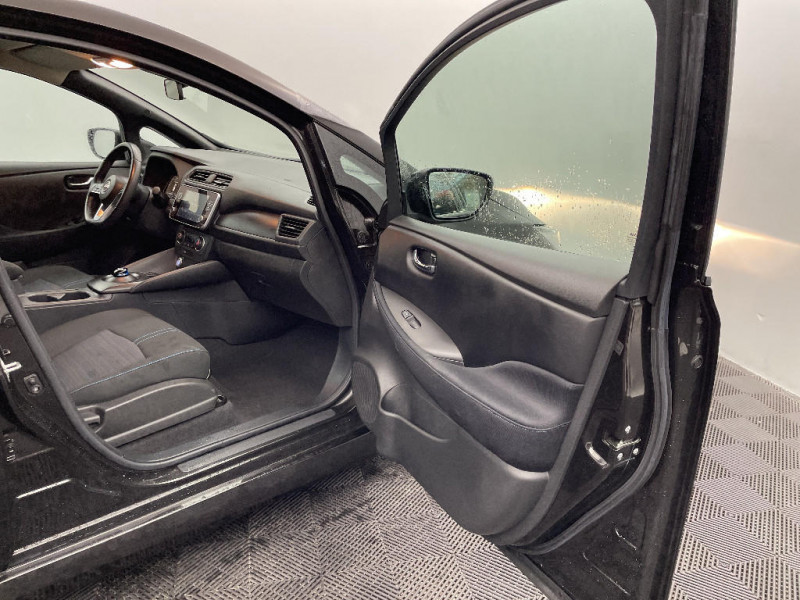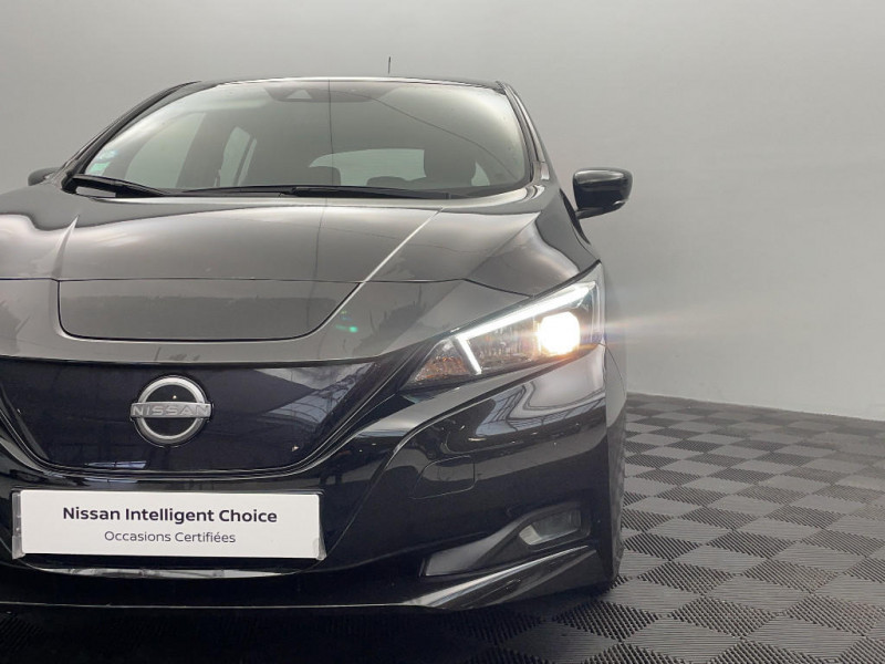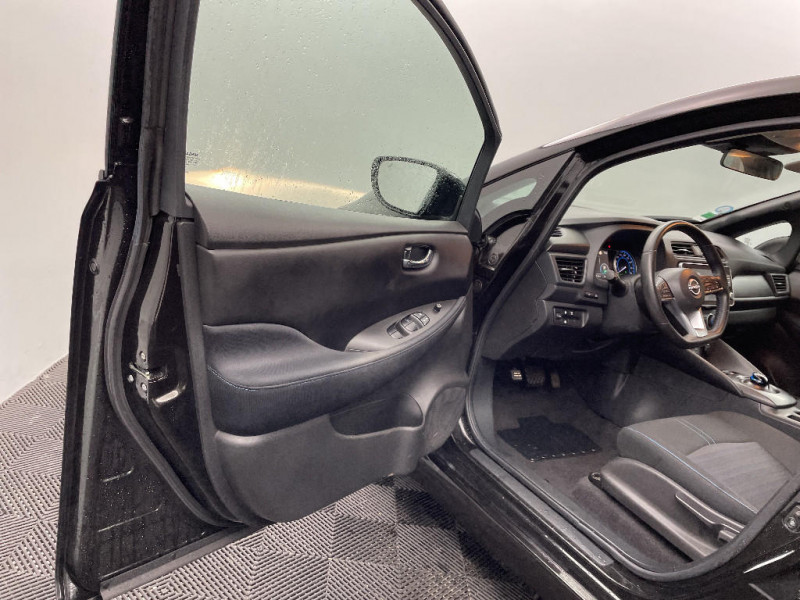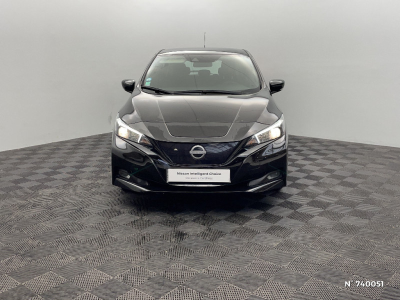 Allumage automatique des feux de détresse en cas d'accident / Câble de 6 m (recharge sur prise domestique 230V en 21h sur batterie 40 kWh ou 32h sur batterie 62 kWh) / 6 HP / Câble 32A de 6 m (recharge sur borne publique ou Wallbox 7 kW T2 en 7h30 sur 40 kWh ou 11h30 sur 62 kWh) / Chargeur embarqué de 6,6kW (pour recharge en 7h sur une wallbox de 32A) / Combiné d'instrumentation avec écran HD TFT 7" couleur / Commandes au volant (audio, Bluetooth, régulateur et limiteur de vitesses et contrôle de l'ordinate ur de bord) / Contrôle vocal Nissan / Eclairage de la trappe de recharge / Extinction temporisé des phares "Follow me home" / ABS et EBD / Feux AV halogènes avec signature lumineuse à LED / Feux de route intelligents / Feux diurne LED avec signature lumineuse / Freinage d'urgence intelligent (AEB) avec détection piéton / Indicateur de température extérieure / Kit de réparation pneumatique / Nissan Connect Services / Nissan Connect 8.0 / Ouverture de la trappe de recharge depuis la clé / Pack 100% Mobilité / Pare-soleil côté conducteur et passager avec miroir de courtoisie / Poches aumonières au dos des sièges AV / Poignées de portes chromées / Points d'ancrage de siège enfant ISOFIX à l'AV et 2 à l'AR / Port CHAdeMO pour chargeur rapide 50 kW (recharge de 20% à 80% en 60 min sur 40 kWh ou 90 min sur 62 kWh) / Port USB à l'AV (x1) et l'AR (x2) / Prise auxiliaire Jack 3,5 mm / Prise 12V sur console centrale AV / Programmation de la recharge / Rétroviseurs extérieurs couleur carrosserie avec clignotant à LED intégré / Sécurité enfants sur les portes AR / Sellerie tissu Noir ou Gris Clair / Son d'alerte pour piétons désactivable / Surveillance des angles morts incluant voyant lumineux sur rétroviseurs extérieurs / Système audio Bluetooth, AM/FM, RDS, DAB, MP3, USB (sans CD) / Système "Chassis Control" (contrôle actif de trajectoire et de l'assiette) / Système d'alerte anticollision AR intelligent / Système de climatisation avec pompe à chaleur / Système d'ouverture et de démarrage sans clé "Intelligent key" / Technologie E-pedal / Trois appuis-tête aux places AR