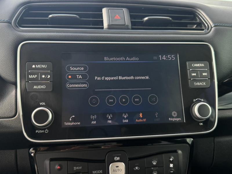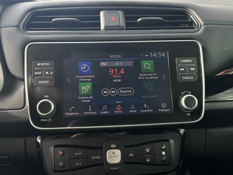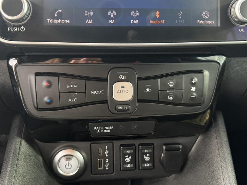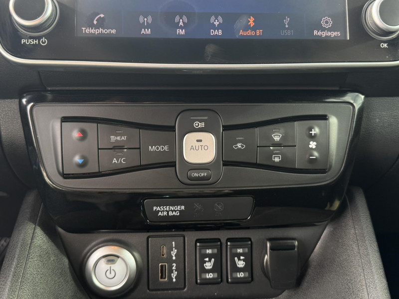 Allumage automatique des feux de détresse en cas d'accident / Allumage automatique des feux de détresse en cas d'accident / Feux AV halogènes avec signature lumineuse à LED / Feux AV halogènes avec signature lumineuse à LED / Feux AV à LED avec signature lumineuse à LED / Feux diurne LED avec signature lumineuse / Feux diurne LED avec signature lumineuse / Pack 100% Mobilité / Pack 100% Mobilité + avec un service additionnel exclusif : 12 000 points Hertz Gold Plus Rewards / Pack Look / Rétroviseurs extérieurs couleur carrosserie avec clignotant à LED intégré / Rétroviseurs extérieurs couleur carrosserie avec clignotant à LED intégré / Système de climatisation avec pompe à chaleur / Système de climatisation avec pompe à chaleur / 6 HP / 6 HP / ABS et EBD / ABS et EBD / Antenne aileron de requin / Chargeur embarqué de 6,6kW (pour recharge en 7h sur une wallbox de 32A) / Chargeur embarqué de 6,6kW (pour recharge en 7h sur une wallbox de 32A) / Combiné d'instrumentation avec écran HD TFT 7" couleur / Combiné d'instrumentation avec écran HD TFT 7" couleur / Commandes au volant (audio, Bluetooth, régulateur et limiteur de vitesses et contrôle de l'ordinate ur de bord) / Commandes au volant (audio, Bluetooth, régulateur et limiteur de vitesses et contrôle de l'ordinate ur de bord) / Contrôle vocal Nissan / Contrôle vocal Nissan / Câble 32A de 6 m (recharge sur borne publique ou Wallbox 7 kW T2 en 7h30 sur 40 kWh ou 11h30 sur 62 kWh) / Câble 32A de 6 m (recharge sur borne publique ou Wallbox 7 kW T2 en 7h30 sur 40 kWh ou 11h30 sur 62 kWh) / Câble de 6 m (recharge sur prise domestique 230V en 21h sur batterie 40 kWh ou 32h sur batterie 62 kWh) / Câble de 6 m (recharge sur prise domestique 230V en 21h sur batterie 40 kWh ou 32h sur batterie 62 kWh) / Eclairage de la trappe de recharge / Eclairage de la trappe de recharge / Extinction temporisé des phares "Follow me home" / Extinction temporisé des phares "Follow me home" / Feux de route intelligents / Feux de route intelligents / Freinage d'urgence intelligent (AEB) avec détection piéton / Freinage d'urgence intelligent (AEB) avec détection piéton / Indicateur de température extérieure / Indicateur de température extérieure / Kit de réparation pneumatique / Kit de réparation pneumatique / Montant central de porte noir laqué / Montant central de porte noir laqué / Nissan AVM - Vision Intelligente à 360° / Nissan AVM - Vision Intelligente à 360° / Nissan Connect 8.0 / Nissan Connect 8.0 / Nissan Connect Services / Nissan Connect Services / Ouverture de la trappe de recharge depuis la clé / Ouverture de la trappe de recharge depuis la clé / Pare-soleil côté conducteur et passager avec miroir de courtoisie éclairé / Pare-soleil côté conducteur et passager avec miroir de courtoisie éclairé / Poches aumonières au dos des sièges AV / Poches aumonières au dos des sièges AV / Poignées de portes chromées / Poignées de portes chromées / Points d'ancrage de siège enfant ISOFIX à l'AV et 2 à l'AR / Points d'ancrage de siège enfant ISOFIX à l'AV et 2 à l'AR / Port CHAdeMO pour chargeur rapide 50 kW (recharge de 20% à 80% en 60 min sur 40 kWh ou 90 min sur 62 kWh) / Port CHAdeMO pour chargeur rapide 50 kW (recharge de 20% à 80% en 60 min sur 40 kWh ou 90 min sur 62 kWh) / Port USB à l'AV (x1) et l'AR (x2) / Port USB à l'AV (x1) et l'AR (x2) / Prise 12V sur console centrale AV / Prise 12V sur console centrale AV / Prise auxiliaire Jack 3,5 mm / Prise auxiliaire Jack 3,5 mm / Programmation de la recharge / Programmation de la recharge / Rétroviseur intérieur électrochromatique / Rétroviseur intérieur électrochromatique / Son d'alerte pour piétons désactivable / Son d'alerte pour piétons désactivable / Surveillance des angles morts incluant voyant lumineux sur rétroviseurs extérieurs / Surveillance des angles morts incluant voyant lumineux sur rétroviseurs extérieurs / Système "Chassis Control" (contrôle actif de trajectoire et de l'assiette) / Système "Chassis Control" (contrôle actif de trajectoire et de l'assiette) / Système audio Bluetooth, AM/FM, RDS, DAB, MP3, USB (sans CD) / Système audio Bluetooth, AM/FM, RDS, DAB, MP3, USB (sans CD) / Système d'alerte anticollision AR intelligent / Système d'alerte anticollision AR intelligent / Système d'ouverture et de démarrage sans clé "Intelligent key" / Système d'ouverture et de démarrage sans clé "Intelligent key" / Sécurité enfants sur les portes AR / Sécurité enfants sur les portes AR / Technologie E-pedal / Technologie E-pedal / Trois appuis-tête aux places AR / Trois appuis-tête aux places AR / Vitres latérales AR et vitre de hayon teintées / Vitres latérales AR et vitre de hayon teintées / Volant chauffant / Volant chauffant